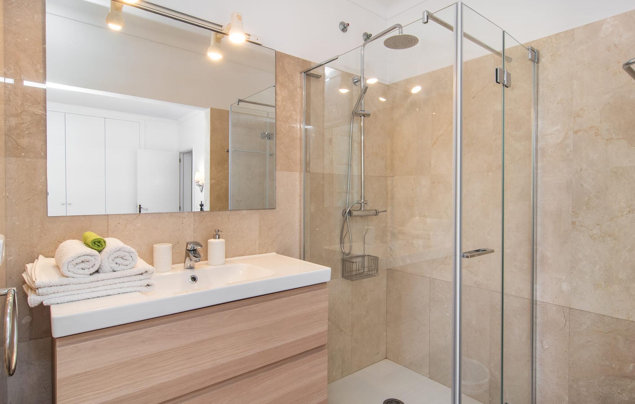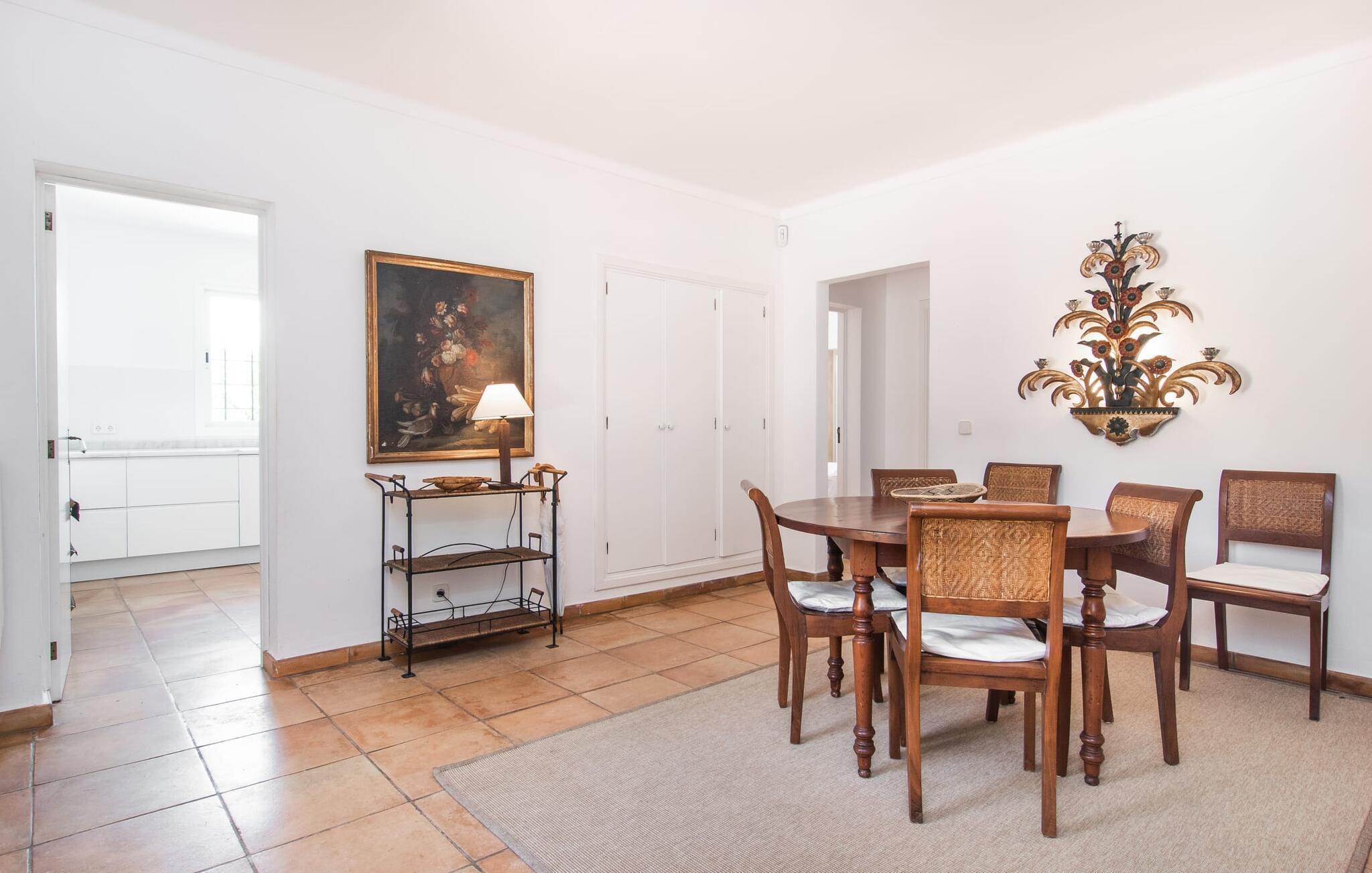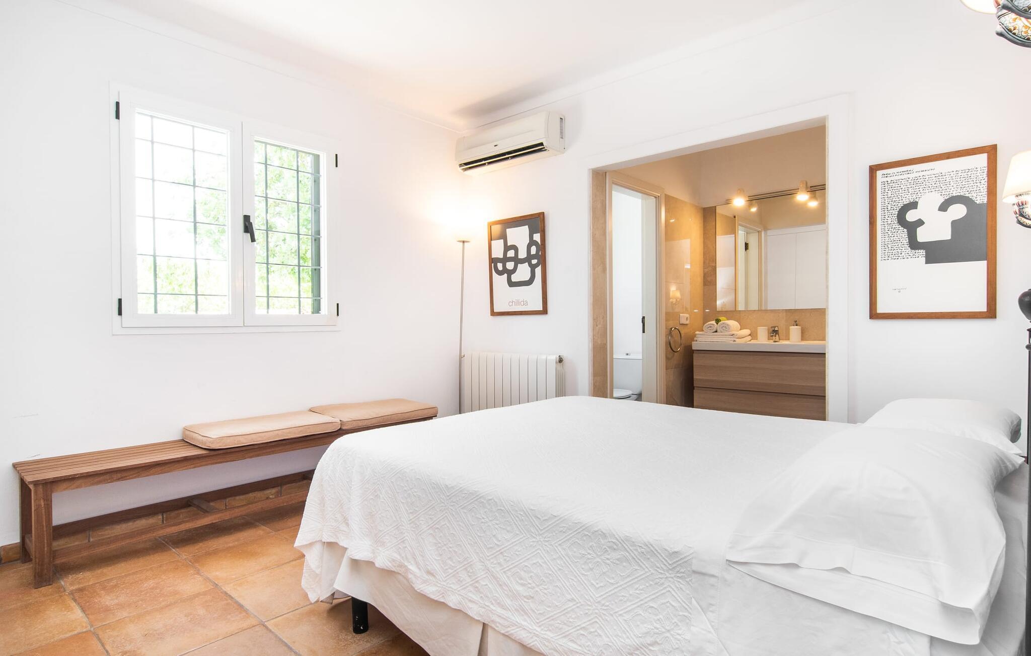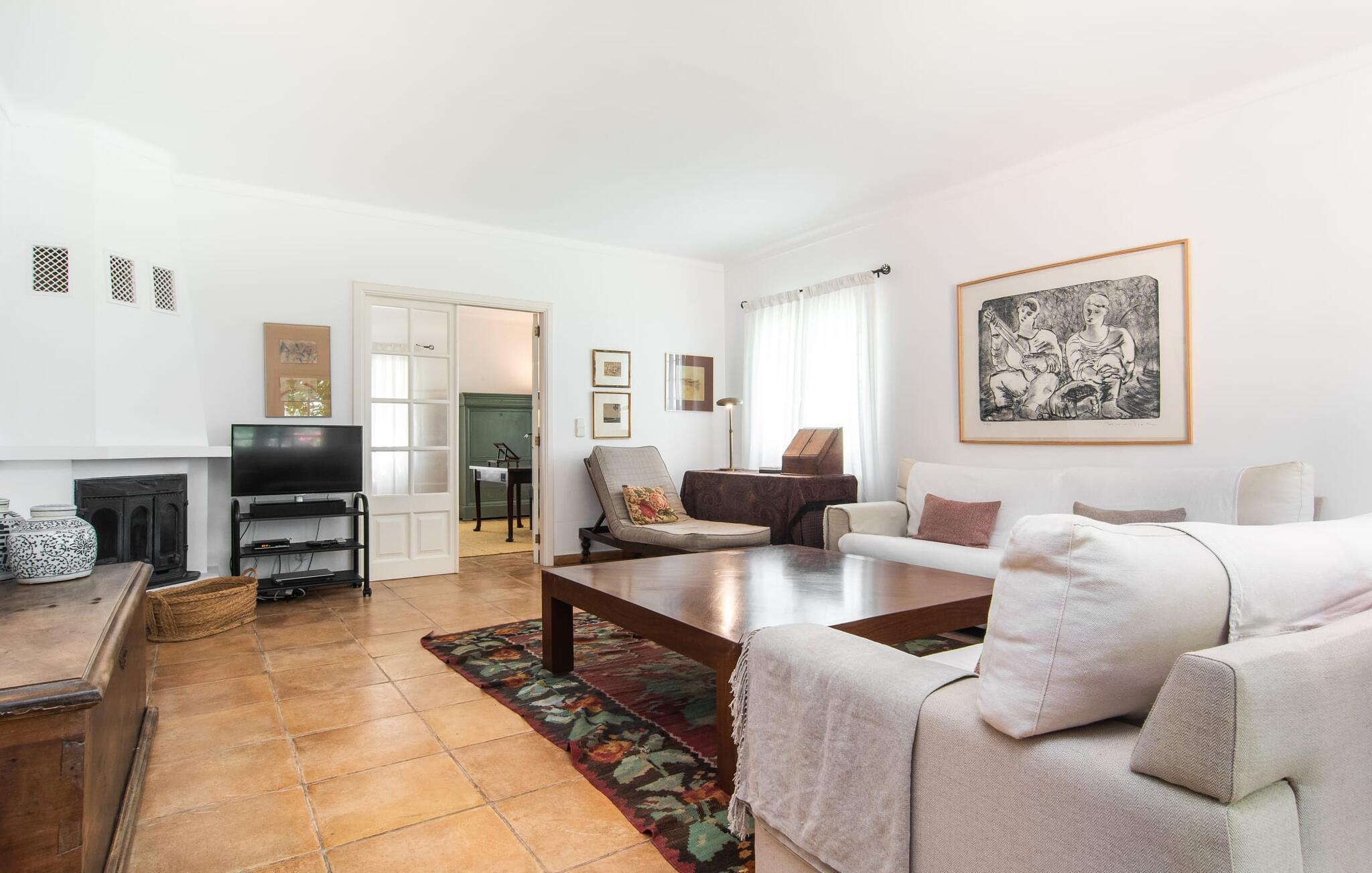 Im Inneren finden Sie großzügige, klassisch gestaltete Räume mit hochwertigen Möbeln. Der Hauptwohnbereich befindet sich im Erdgeschoss. Es beherbergt ein großes, lichtdurchflutetes Wohnzimmer mit Kamin, eine moderne, voll ausgestattete Küche, ein Esszimmer und zwei Doppelschlafzimmer mit eigenem Bad. Durch eine Fenstertür vom Wohnzimmer getrennt, gibt es außerdem eine gemütliche Bibliothek, in der Sie bei Bedarf bequem im Homeoffice arbeiten können. Neben dem Haupthaus gibt es einen weiteren schönen Wohnbereich. Dank breiter Glastüren lässt es sich problemlos mit dem Außenbereich verbinden. Eine Außentreppe führt zum dritten Doppelzimmer, das ebenfalls über ein eigenes Bad en Suite verfügt. Übrigens: Alle drei Schlafbereiche verfügen über eine Klimaanlage. Die Heizung im gesamten Haus sorgt auch außerhalb der Saison für angenehme Ferien.