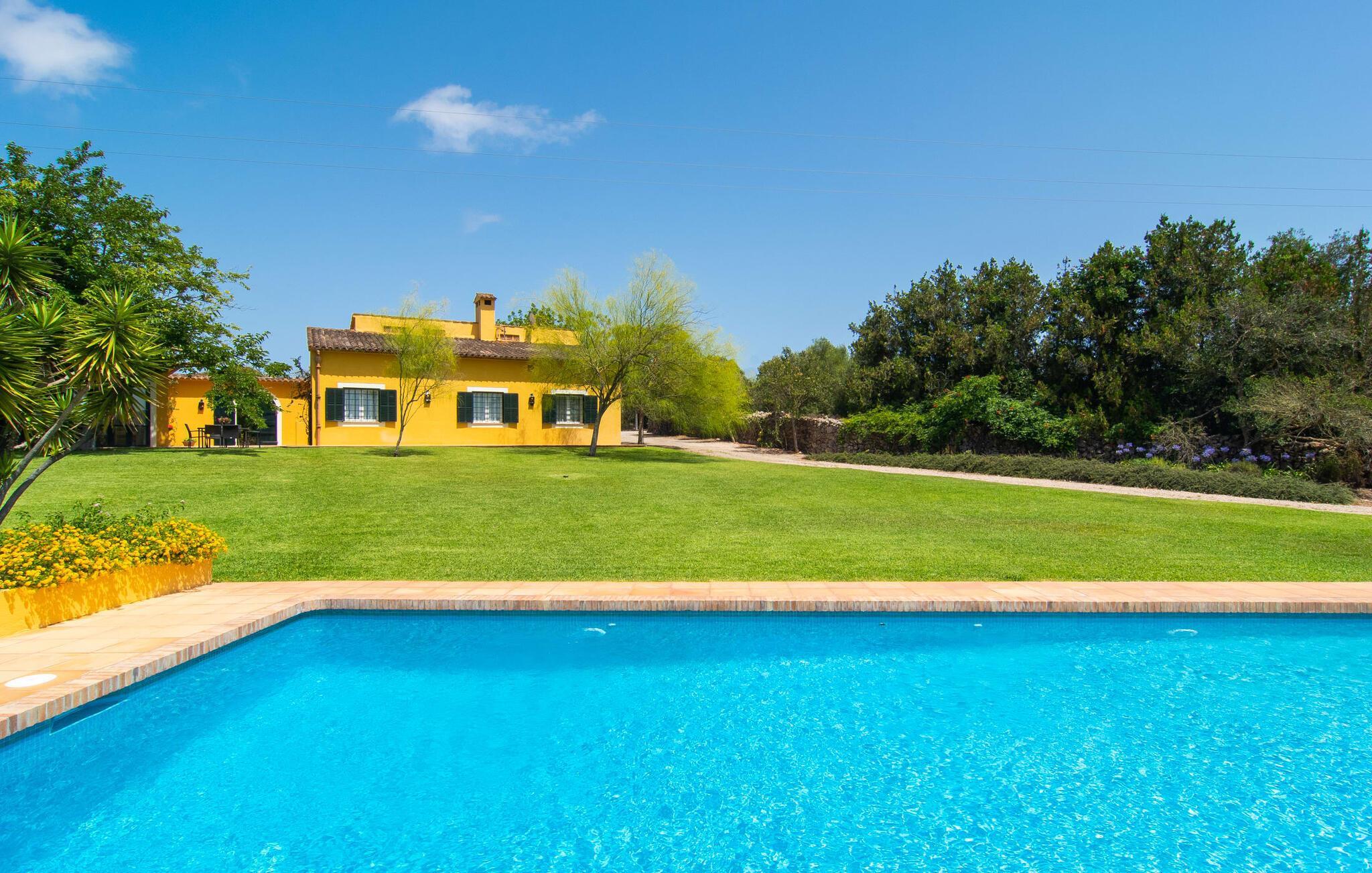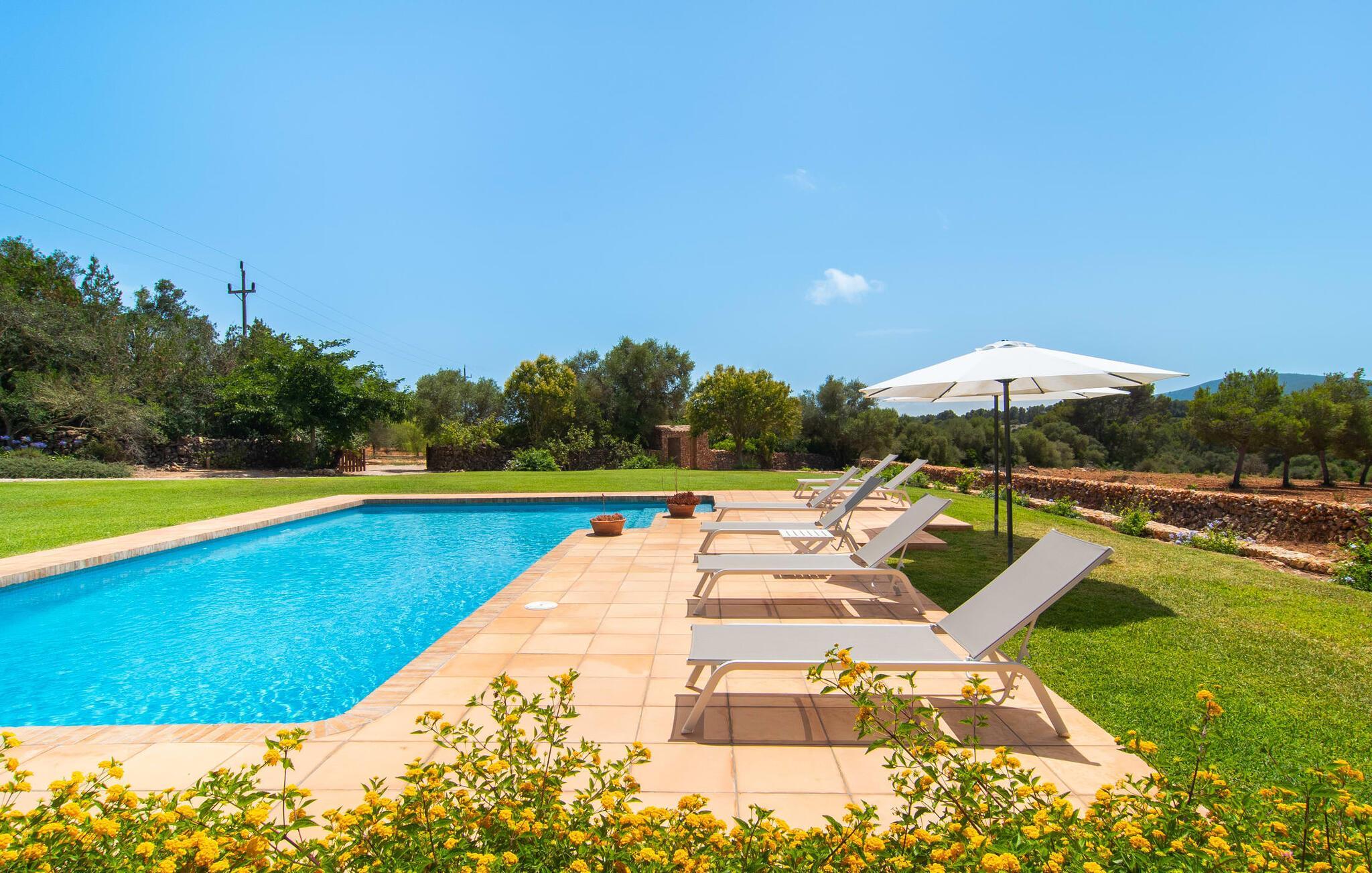 Die Ferienfinca „Cuaquis“ liegt umgeben von einem gepflegten Garten mit viel gepflegter Rasenfläche nahe der Ostküste Mallorcas. Vom Pool und seiner Sonnenterrasse genießen Sie einen befreienden Blick über die sanften Hügel der Serra de Llevant. Der flache Pool ist bequem über eine breite Treppe erreichbar. Für Mahlzeiten im Freien stehen mehrere Sitzbereiche mit natürlichem Schatten zur Verfügung. Bereiten Sie Ihre Mahlzeiten gerne am mobilen Grill zu und vergnügen Sie sich beim Tischtennis. Auf dem 15.000 m2 großen Grundstück wohnt auch der freundliche und diskrete Eigentümer. Privatsphäre wird hier großgeschrieben, und dennoch: Einen Ansprechpartner im Urlaub auf Mallorca zu haben, ist immer ein echter Vorteil. Selbstverständlich ist auch unser Team von Fincallorca für Sie da.