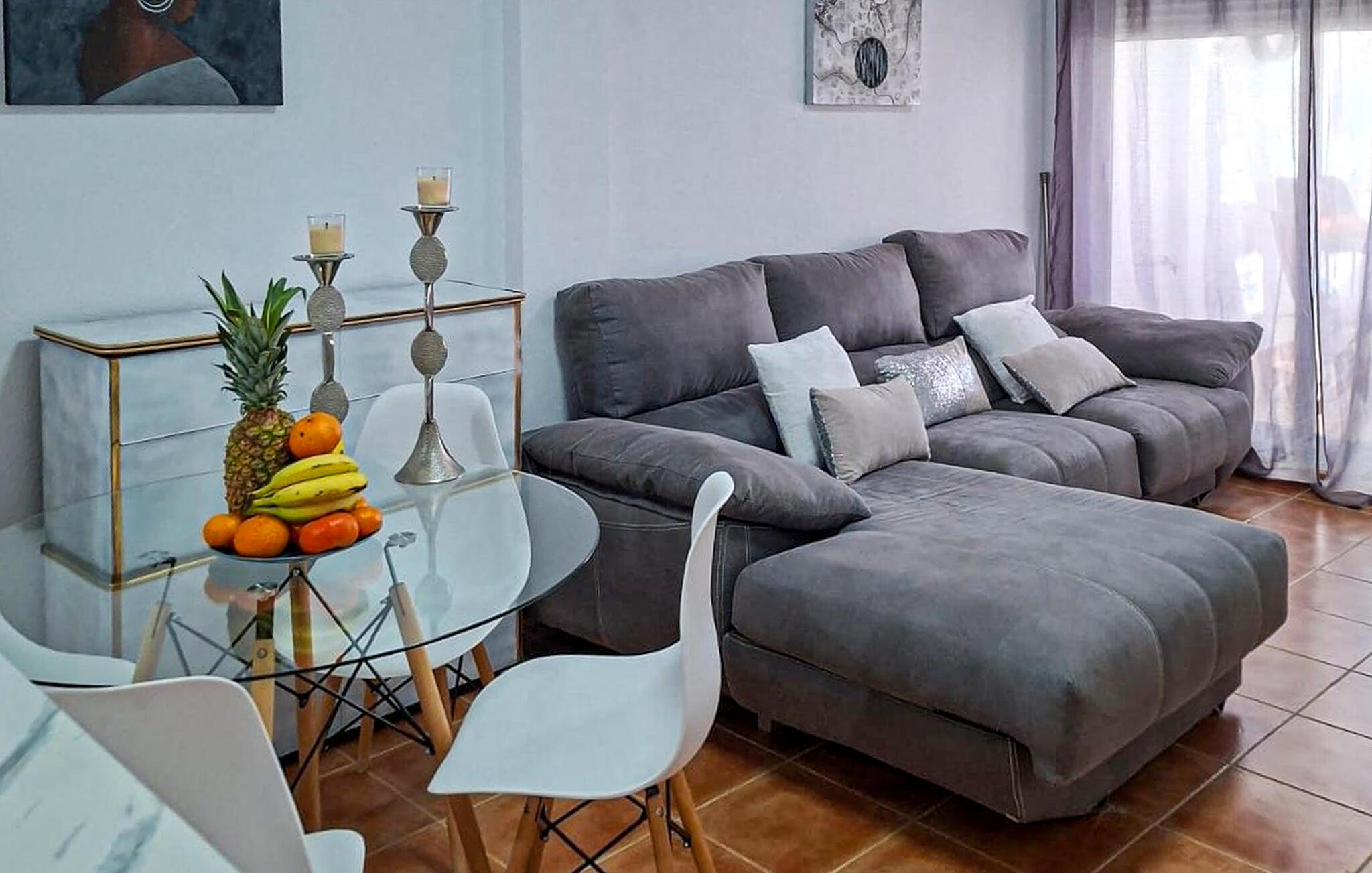 Diese praktisch eingerichtete Ferienwohnung bietet Ihnen ein angenehmes Refugium, während Sie zu zweit oder als kleine Familie unweit der Küste eine sonnige Auszeit genießen. Bereiten Sie kleine mediterrane Gerichte zu, planen Sie in aller Ruhe Ihre Unternehmungen und machen Sie es sich nach einem langen Tag unter dem blauen Himmel mit einem spannenden Film auf dem Sofa gemütlich.