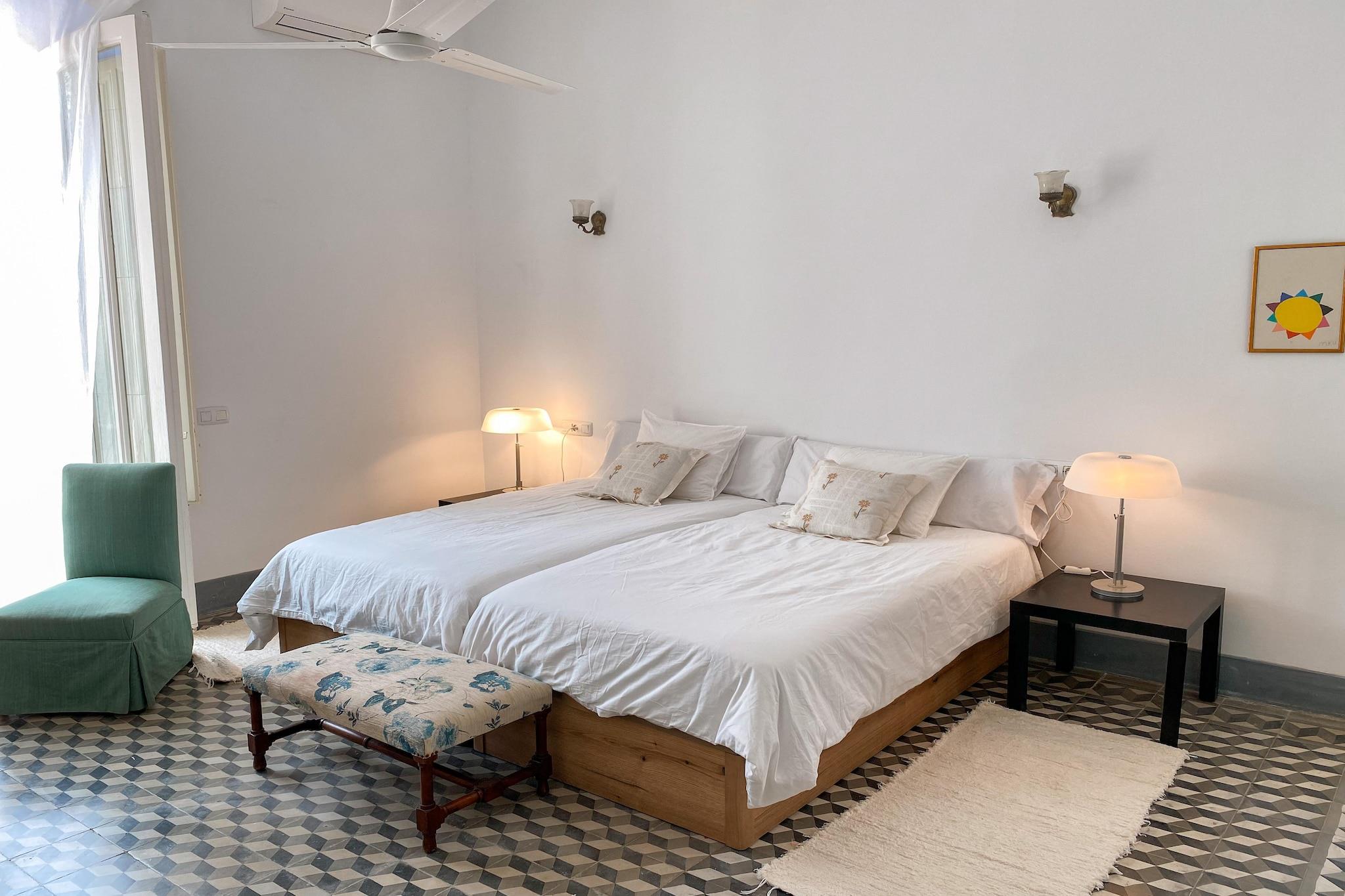 Welcome to this exquisite two-story retreat, perfect for families or groups seeking a luxurious getaway. The first floor features a welcoming hall leading to a cozy living room with a TV and a fully equipped kitchen with modern appliances, including espresso and coffee machines, toaster, oven, microwave, dishwasher, and fridge-freezer. The air-conditioned dining area is ideal for casual meals or elegant dinners. Three beautifully designed bedrooms on this floor each include a private bathroom. The master suite offers a double bed with bathtub and shower, while the other two bedrooms feature two single beds each with ensuite facilities. A study and library provide peaceful spaces for reading or work. The veranda, with a dining table, is perfect for alfresco meals. The second floor hosts another charming bedroom suite with a double bed and private shower. Outside, enjoy a private pool, garden, and barbecue area for relaxation and entertainment. Ample parking ensures convenience. This elegant property combines comfort, luxury, and style for an unforgettable holiday experience.