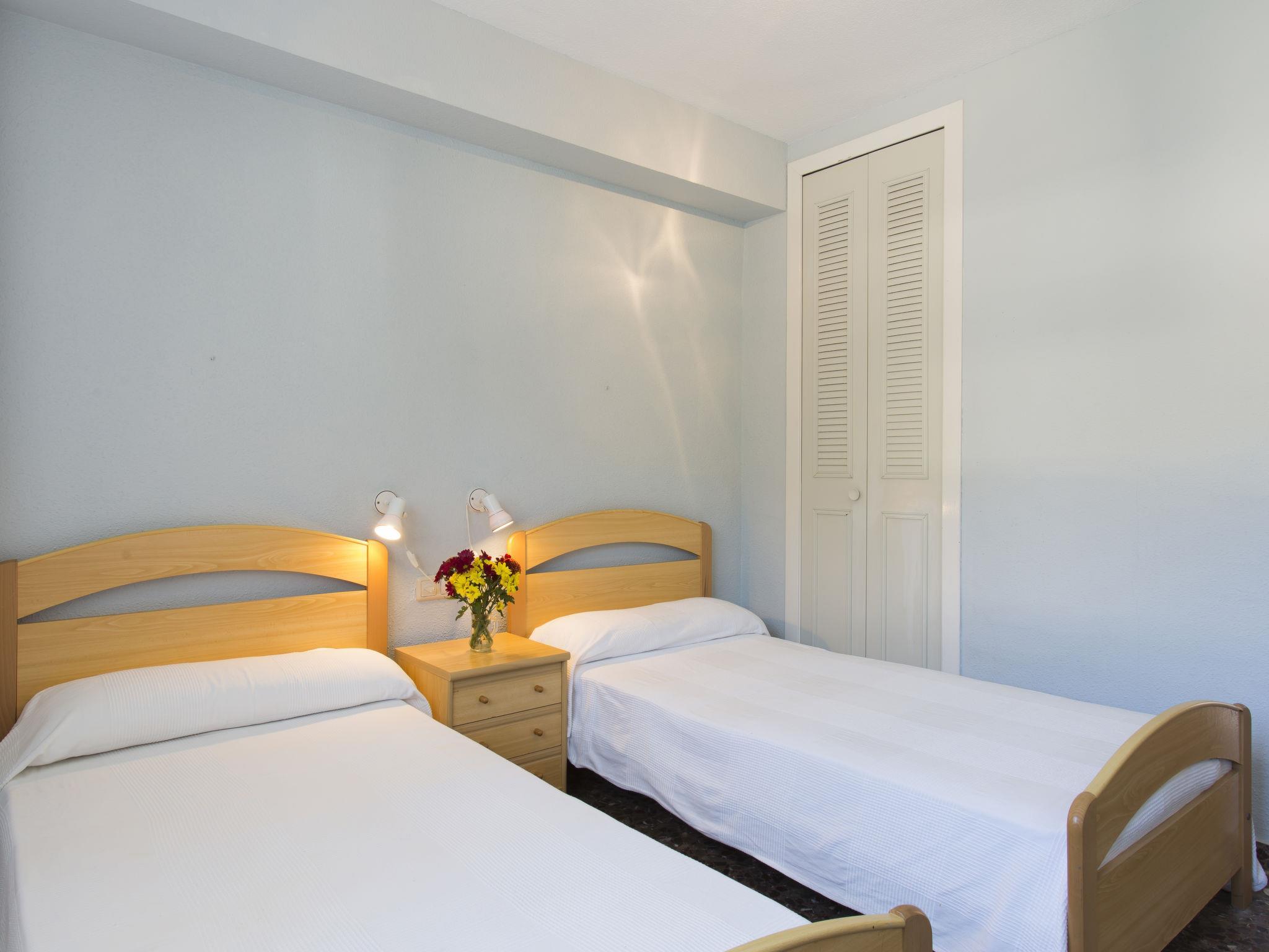 4-room apartment 100 m2 on 4th floor. Spacious and bright, comfortable furnishings: living/dining room with dining table, digital TV and flat screen. Exit to the terrace. 1 room with 1 french bed (135 cm, length 190 cm), bath/bidet/WC and fan. Exit to the terrace. 1 room with 2 beds (90 cm, length 190 cm). 1 room with 1 french bed (135 cm, length 190 cm). Kitchen (oven, 4 ceramic glass hob hotplates, toaster, kettle, microwave, freezer, electric coffee machine). Exit to the balcony. Shower/bidet/WC. Electric heating. Heating not available in all rooms. Small balcony, large terrace. Terrace furniture. View of the sea, the swimming pool and the resort. Facilities: washing machine, iron, children's high chair, baby cot for up to 2 year olds, hair dryer. Parking at the house. Please note: suitable for families. Non-smokers only. VT-49962-V // Reg. Nr.: ESFCTU000046037000424415000000000000000000VT-49962-V8