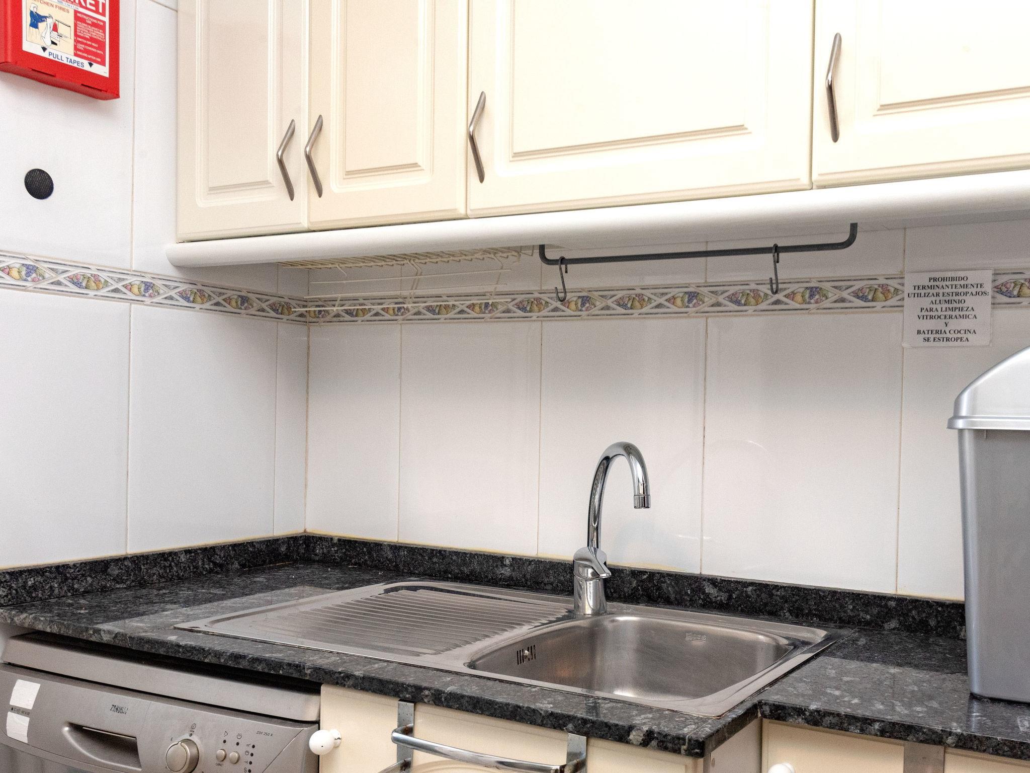 Apartment block "Aires de mar", 3 storeys, built in 1998. In the resort, 30 m from the sea, 30 m from the beach. For shared use: swimming pool (seasonal availability: 01.Jun. - 30.Sep.). Children's pool, outdoor shower. Grocery 100 m, restaurant 100 m, bus stop, railway station "Cunit" 850 m, sandy beach 30 m. Riding stable 500 m. The owner does not accept any youth groups. Please note: railway line closeby 10 m from the property. Neighbourhood highly sensitive to noise. Quietness and good behaviour expected. No trains between 22.54 and 05,29 hrs. The shared area measures 300 m2 and is fenced and terraced.