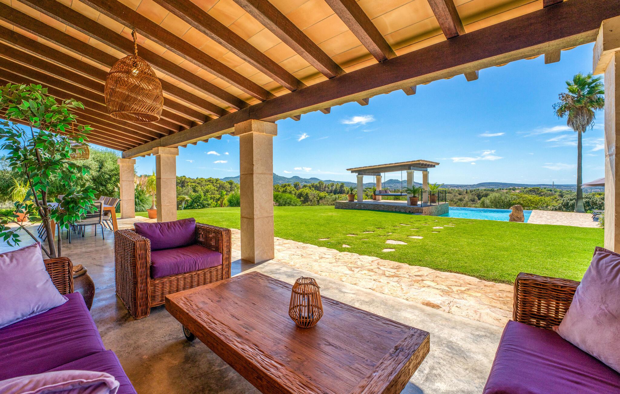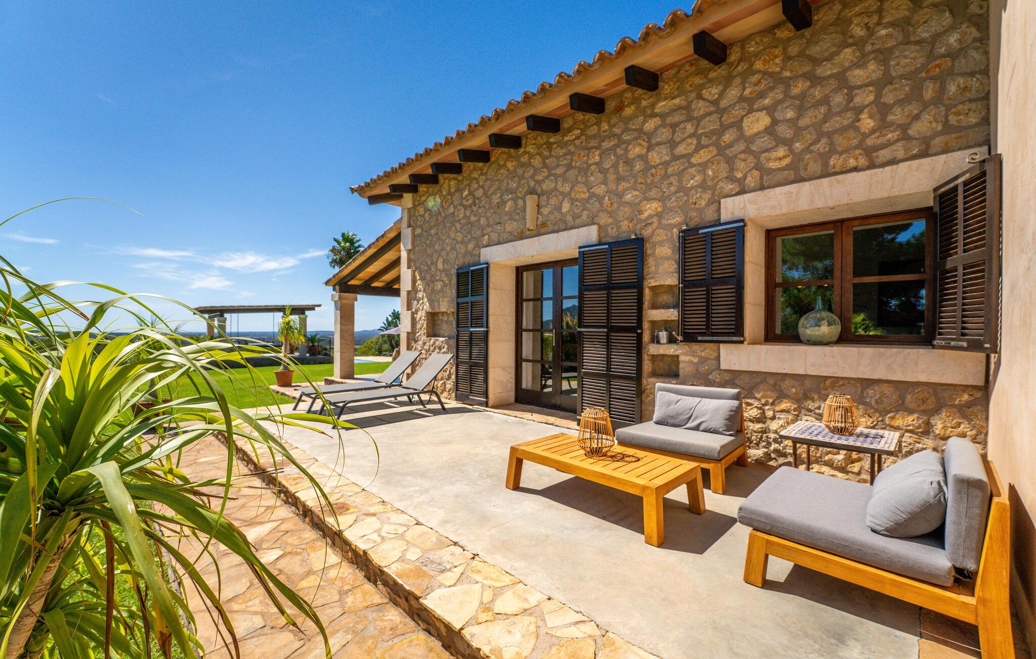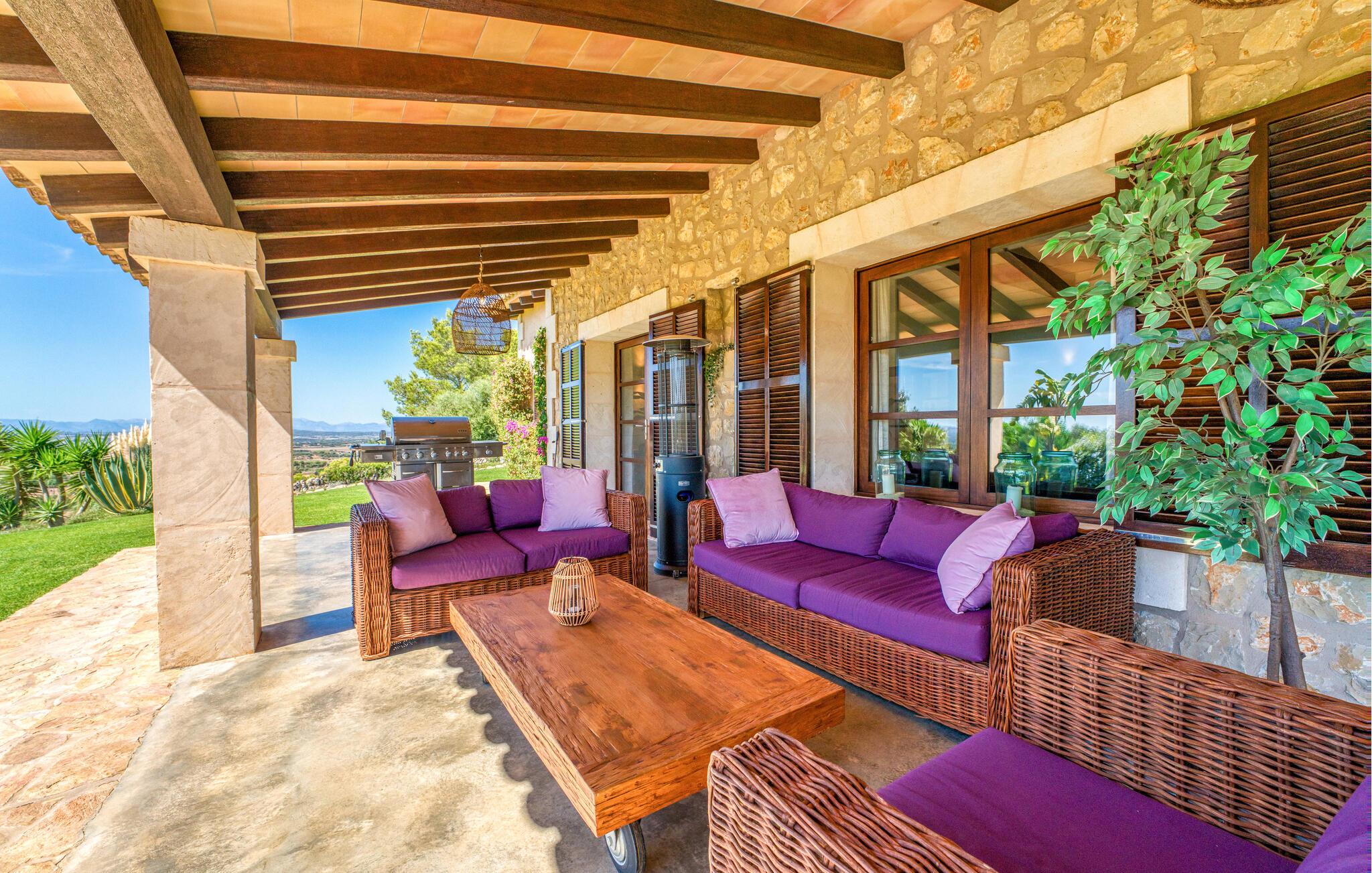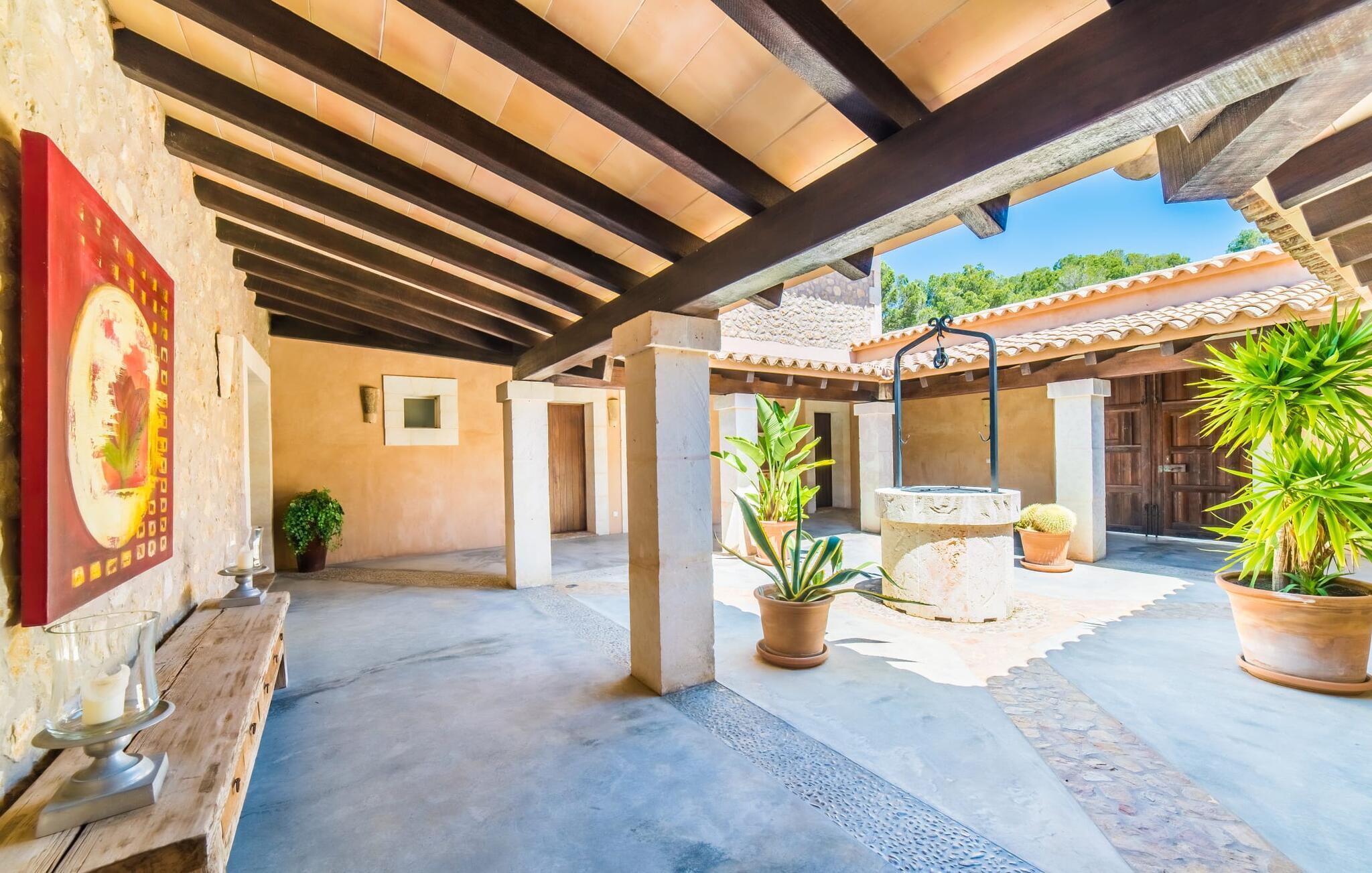 In einer wunderbar ruhigen, waldreichen Gegend zwischen dem geschäftigen Manacor und den engen Gassen von Felanitx bietet die elegante Villa „Da Na Bibiana“ genau das Richtige für einen Urlaub mit gehobenen Ansprüchen, mit allen Zimmern mit eigenem Bad. Das ruhige Dorf Son Macià – bequem 20 Autominuten entfernt – bietet einen Supermarkt, eine Bank und Cafés, um alle Ihre Grundbedürfnisse zu decken; Für mehr fahren Sie einfach etwa 10 km in beide Richtungen. Die Küste zwischen Porto Cristo und Portopetro lädt zum Spazierengehen und Entdecken der traumhaften Strände von Cala d'Or, Cala Bota und Cala Pilota ein.