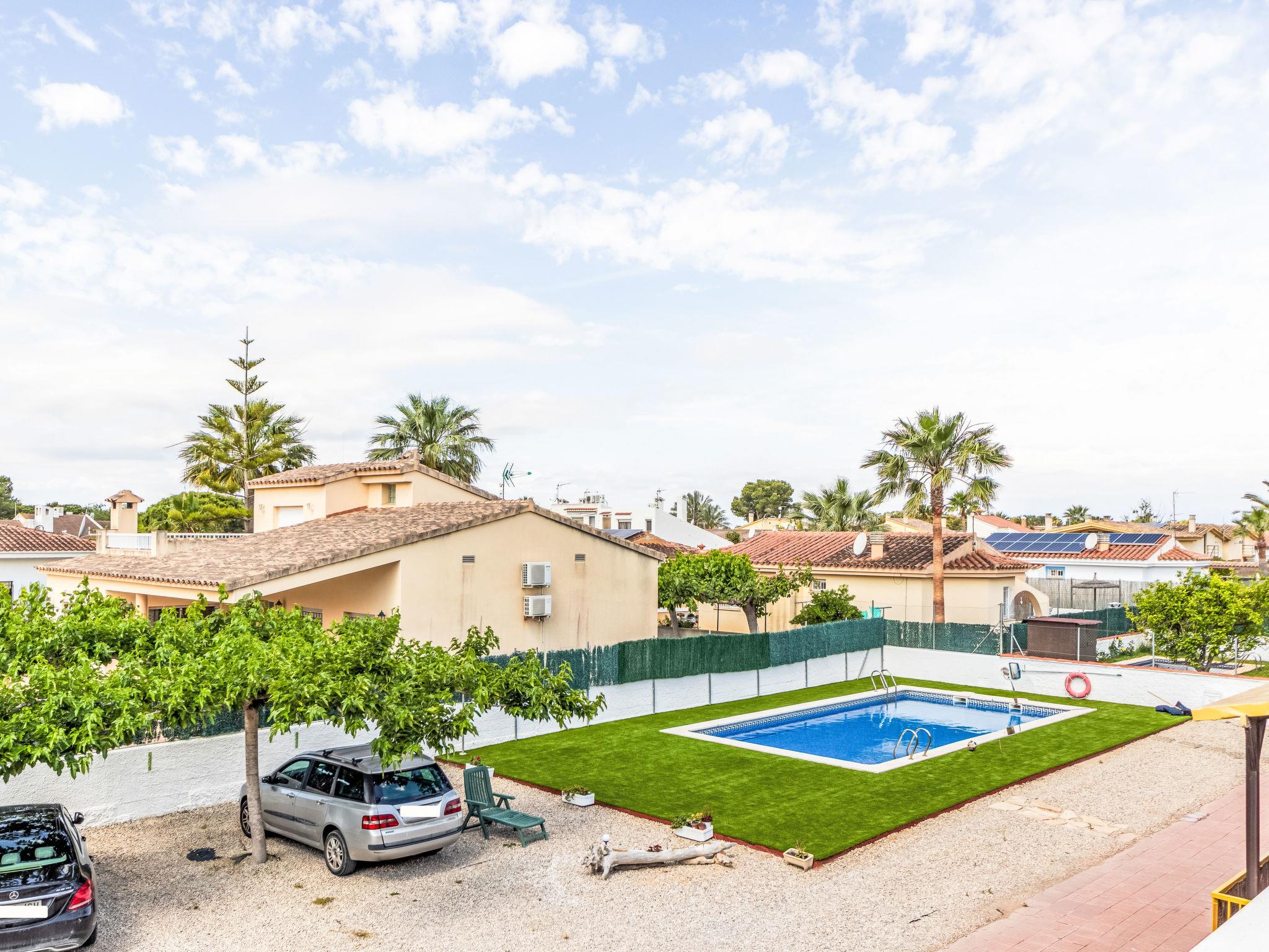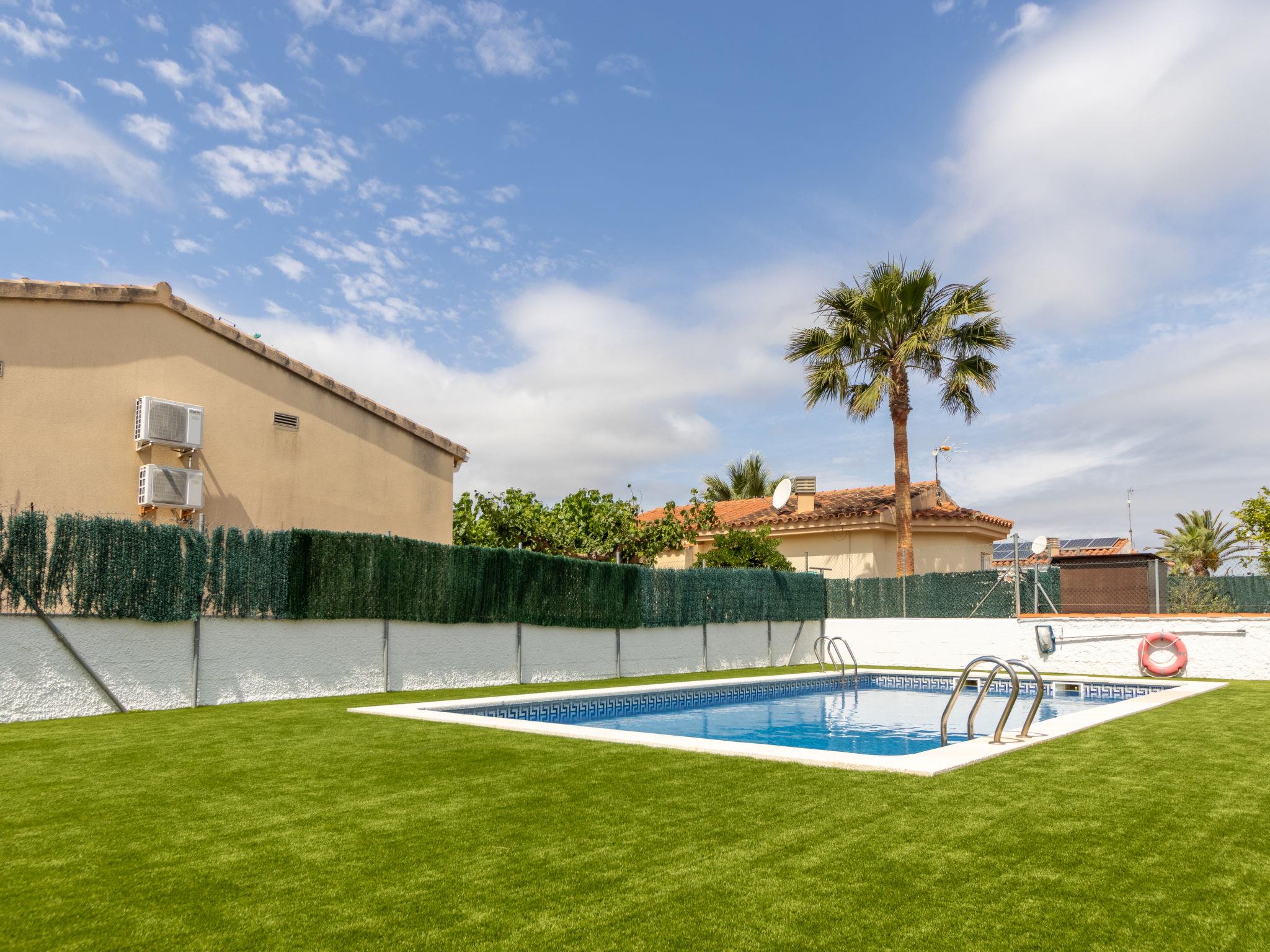 Riumar 8 km from Deltebre: Cosy, comfortable single-family house "Mila", 2 storeys, semi-detached. In a quiet, sunny position, excellent location: right in the centre but still quiet, 200 m from the sea, 200 m from the beach, 3 km from the river. For shared use: property 400 m2 (fenced), swimming pool angular (15 x 4 m, depth 180 cm, seasonal availability: 01.Jun. - 30.Sep.). Outdoor shower. Private: terrace, garden furniture, barbecue. In the house: WiFi, air conditioning, washing machine. Parking on the premises. Grocery, supermarket 200 m, restaurant, bar, bakery, café 400 m, bus stop "Riumar" 100 m, railway station "Aldea- Amposta" 25 km, sandy beach "Riumar" 200 m. Sports harbour 1 km, golf course (15 hole) 45 km. Nearby attractions: Port Aventura 78 km, Parque natural Ports Tortosa Beseit 63 km, GR 92 30 km, Barcelona 195 km, Parque aquatico 70 km. Please note: car recommended, no lift. Suitable for families. Groups of teenagers on request only.