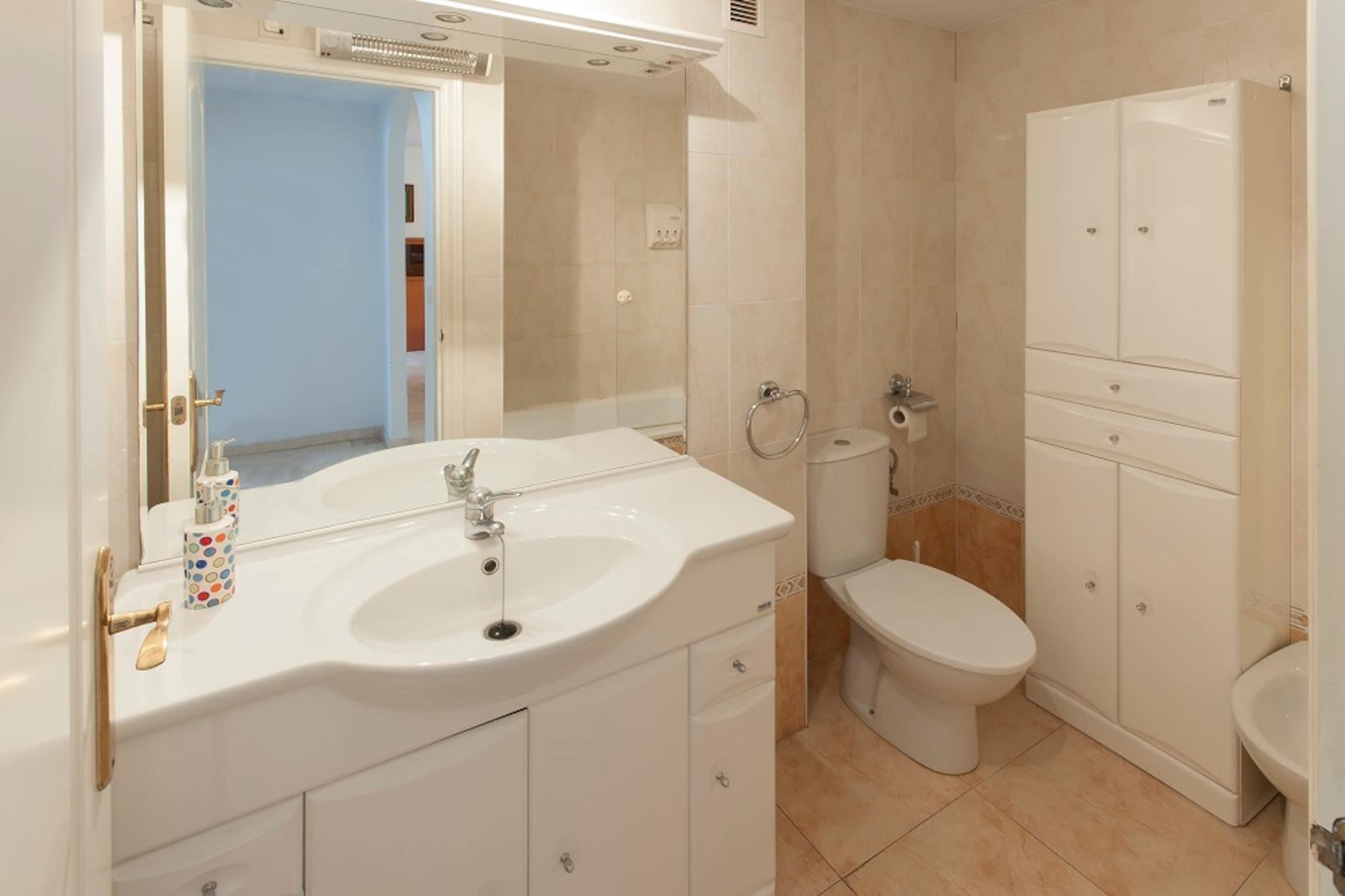 The terrace of the apartment is furnished with table and chairs so you can have breakfast enjoying the sunshine. In this fenced complex there are around 2000 m2 of communal areas: there is a lawn area where your kids will love to play and have fun while you swim in the pool or sunbathe. There are two pools and two children pools. Inside the apartment, in the bright living-dining room you will be able to organize a meal with your family, relax on the comfy sofas or watch TV. The open kitchen is equipped with blender, coffee machine, toaster, juice maker, microwave, dishwasher, vitro, electric oven, fridge, cutlery and a lot more. There are also washing machine, iron and ironing board. There are two bedrooms: one with a double bed and one with two single beds. The two extra guests are accommodated on the sofa bed. There in one bathroom. In the living room there is an AC device that refreshes the whole apartment. For those who prefer the sea, the beach of Leas Marines is only 350 meters away! It is a spacious and quiet beach ideal for the whole family. Nearby you will find many bars and restaurants, so you can spend the whole day at the beach with no worries. Nearby there are some places that are worth to visit: the rocky beaches of “las Rotas”, the marine reserve of Cabo San Antonio or the castle of Denia. You can find diving activities, trekking and cycling paths. The pool is open from 1. June till 30. September. Consult the advertiser for possible charges. Pets are not allowed. The holding of events is forbidden. There are parking space for 1 cars in the garage. Please note that the opening and closing dates of the communal pool are subject to community regulations and may vary depending on the season, without prior notice. Updated information will be available upon your arrival. Distances Beach: 0.45 km - Les Marines Airport: 115 km - Valencia, Manises Golf course: 17 km - Oliva Nova Town: 1 km - Denia Train station: 2 km - Denia Bus stop: 0.15 km - Carretera Les Marines Ferry: 1 km - Denia Hospital: 5 km - Hospital Marina Salud de Denia Tourist license: CV-VUT05117002-ASingle Rental Registry: ESFCTU0000030450005554230000000000000CV-VUT0517002-A8