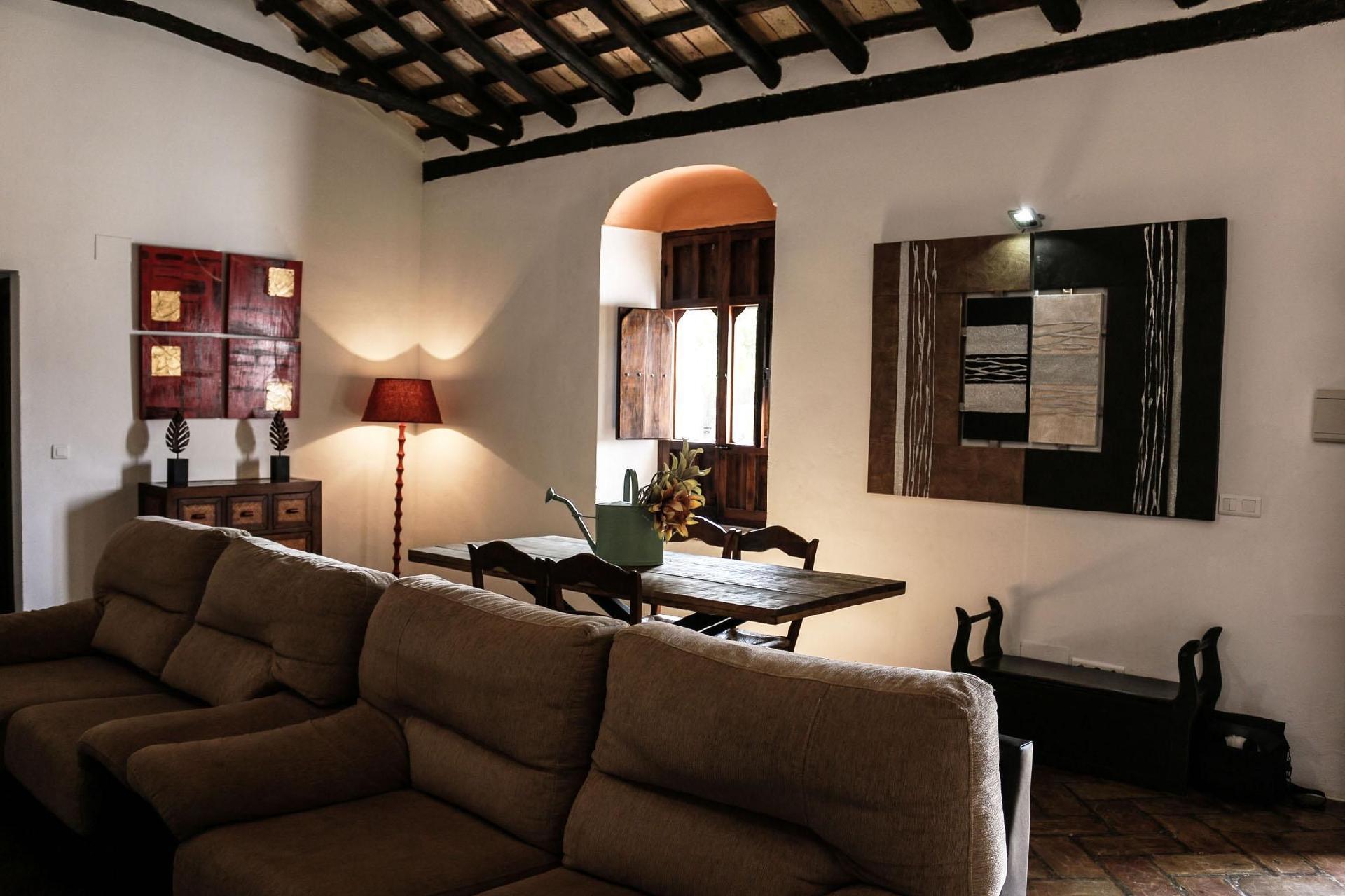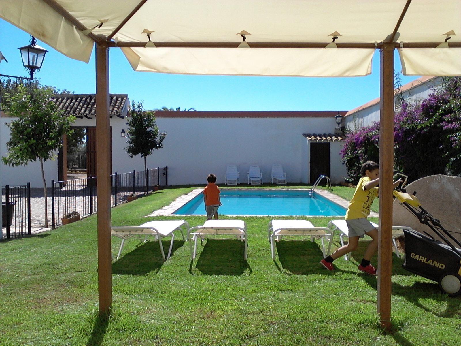 Casa Rural Hacienda de la Palma is a restored old country house, consisting of three fully equipped units, with a large central courtyard and a shared swimming pool. The well house (4 people) of about 60 mt, has a living room with kitchenette of 30 mt. Two double bedrooms with two single beds each. And a small bathroom with washbasin, wc and shower. The kitchen has all the necessary utensils for cooking, electric cooker with 4 burners and small refrigerator. The pleasant decoration of the house mixes typical furniture of the area with traditional architecture. All the rooms have air conditioning for the summer and hot air for the winter. Bed linen and towels are provided. The surroundings of the house are olive groves and countryside. The house has a terrace area for exclusive use with terrace furniture, parasol and barbecue. Near the house you can organize horse riding activities, sightseeing tours, hiking, and because of its location you can visit the cities of Ecija, Cordoba and Seville. The owner who lives nearby, will be attentive to any incident during the stay. The land of the house is fenced. The house has wifi internet connection, washing machine and ironing room, as well as satellite TV with some French and English channels.