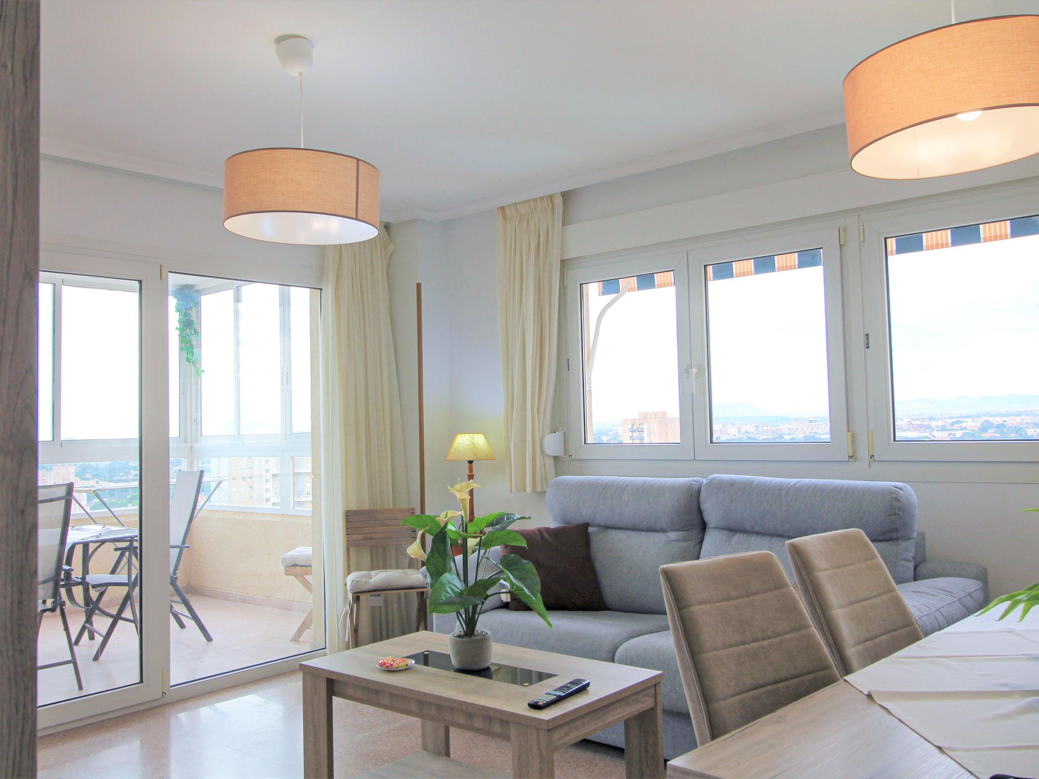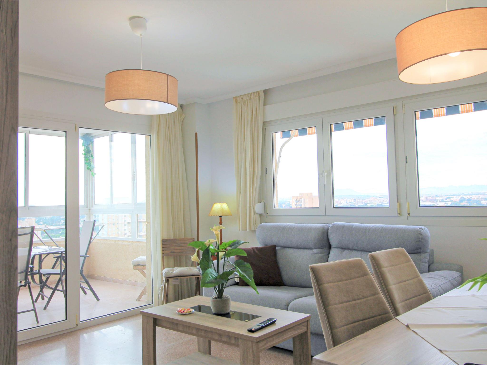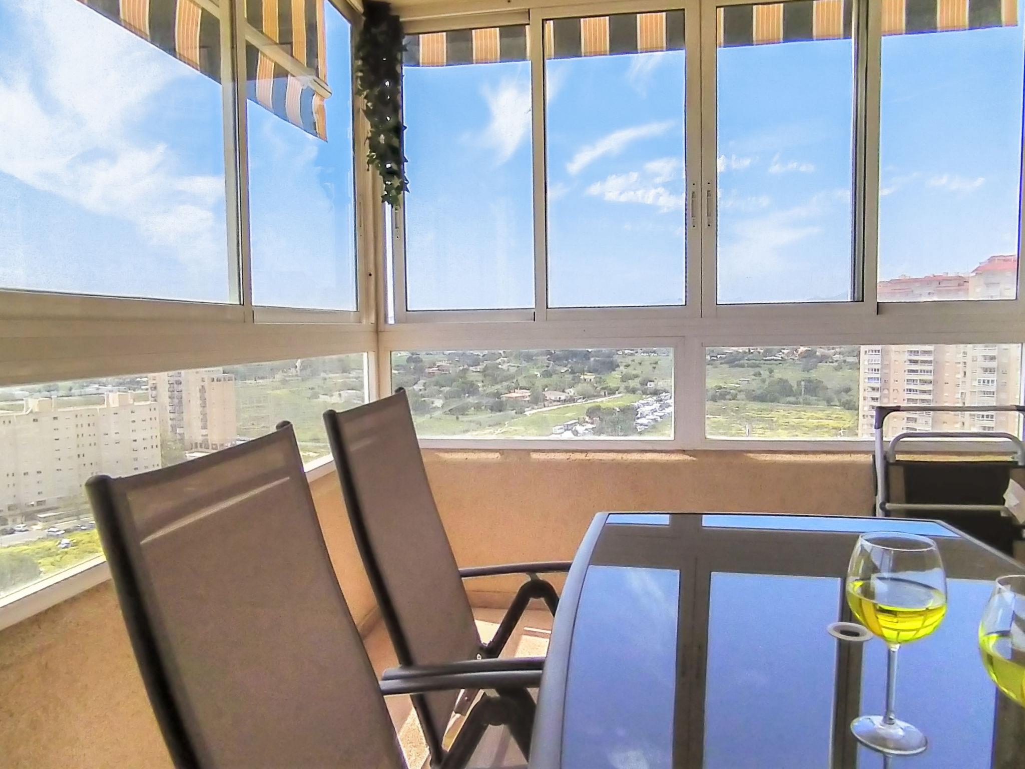 Playa Muchavista: It has an open pool and a heated pool. Very large, child friendly apartment block "Bitacoras", 18 storeys. In the resort, 150 m from the sea, 150 m from the beach. For shared use: property (fenced) with lawn, swimming pool, indoor pool heated (seasonal availability: 15.Jun. - 15.Sep. and 01.Jan. - 31.Dec.). Shower/WC in the pool area, outdoor shower, patio, children's playground. In the complex: bar, fitness room, lift. Parking on the premises. Supermarket 100 m, restaurant 50 m, bar 100 m, tram "Benidorm-Campello-ALicante" 150 m, bus stop "Mongomit – Fabraquer" 200 m, sandy beach "Muchavista" 150 m. Nearby attractions: Terra Mitica Benidorm 31 km, Acualandia Benidorm 33 km, Alicante 12 km, Aeropuerto Alicante 25 km, Elche 42 km, Valencia 172 km. Please note: baby equipment on request. The owner does not accept any youth groups. Neighbourhood highly sensitive to noise. Quietness and good behaviour expected.