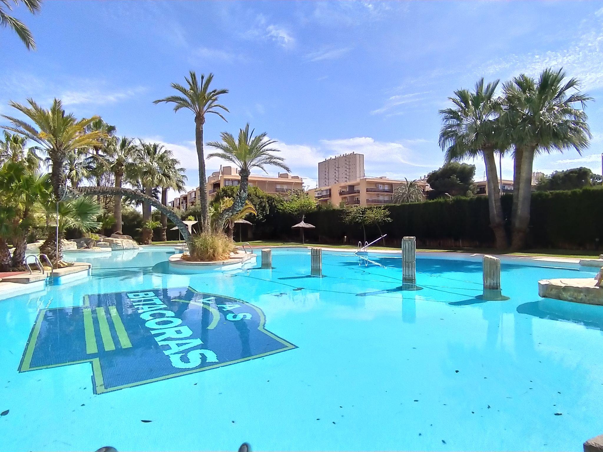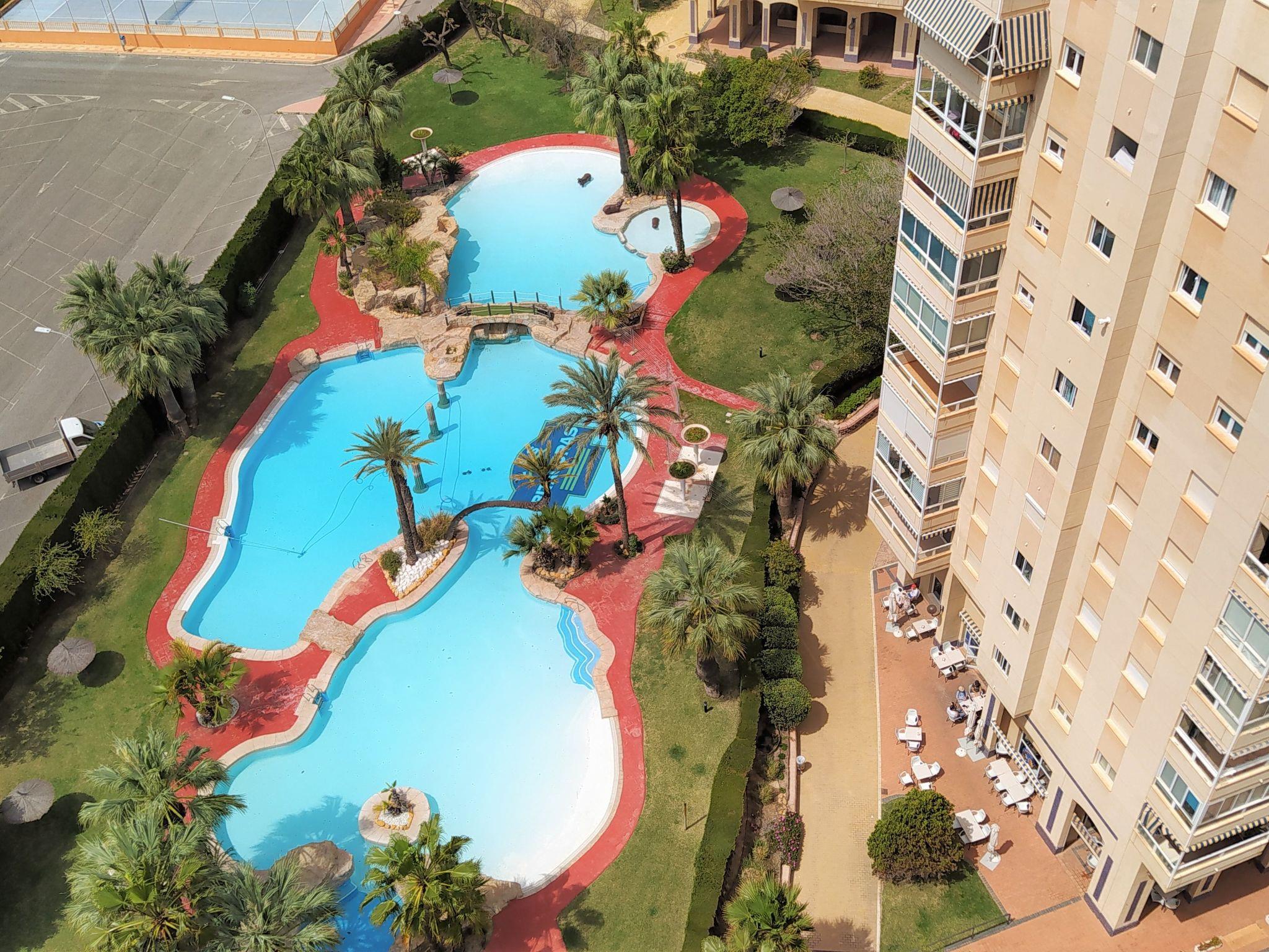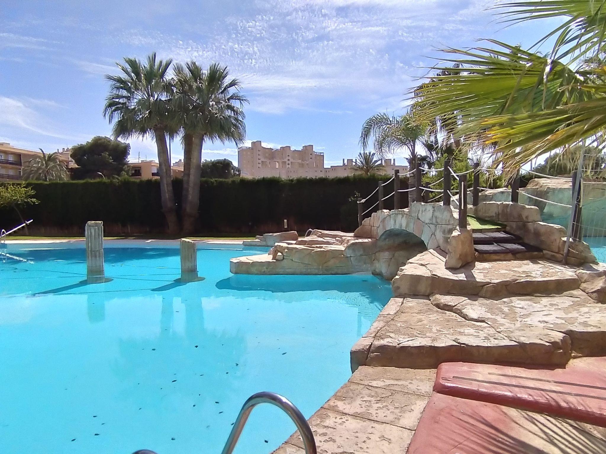 Playa Muchavista: It has an open pool and a heated pool. Very large, child friendly apartment block "Bitacoras", 18 storeys. In the resort, 150 m from the sea, 150 m from the beach. For shared use: property (fenced) with lawn, swimming pool, indoor pool heated (seasonal availability: 15.Jun. - 15.Sep. and 01.Jan. - 31.Dec.). Shower/WC in the pool area, outdoor shower, patio, children's playground. In the complex: bar, fitness room, lift. Parking on the premises. Supermarket 100 m, restaurant 50 m, bar 100 m, tram "Benidorm-Campello-ALicante" 150 m, bus stop "Mongomit – Fabraquer" 200 m, sandy beach "Muchavista" 150 m. Nearby attractions: Terra Mitica Benidorm 31 km, Acualandia Benidorm 33 km, Alicante 12 km, Aeropuerto Alicante 25 km, Elche 42 km, Valencia 172 km. Please note: baby equipment on request. The owner does not accept any youth groups. Neighbourhood highly sensitive to noise. Quietness and good behaviour expected.