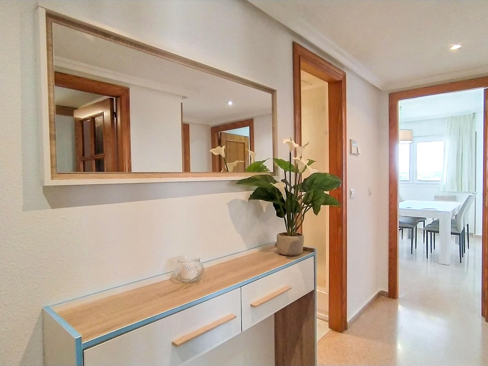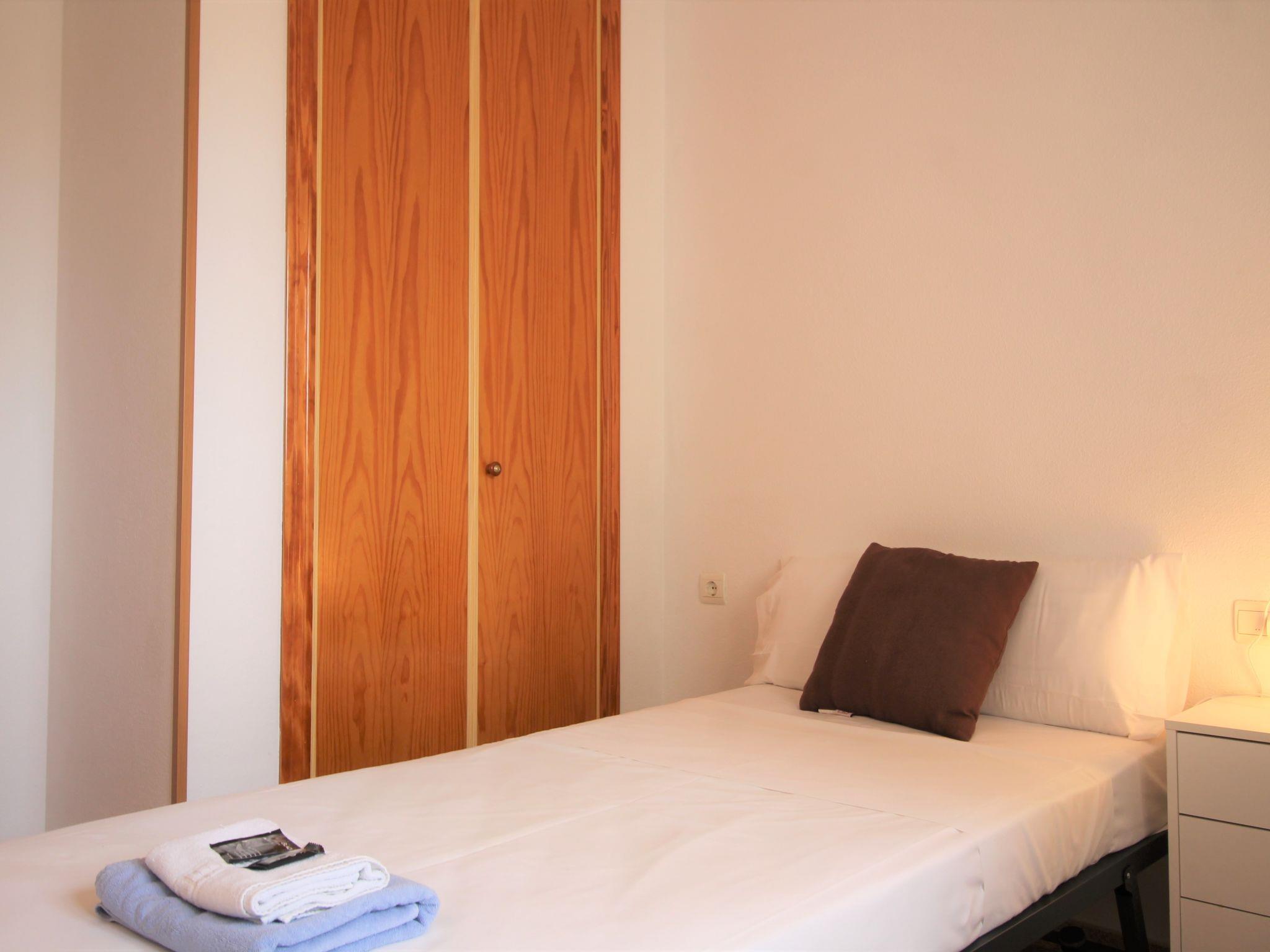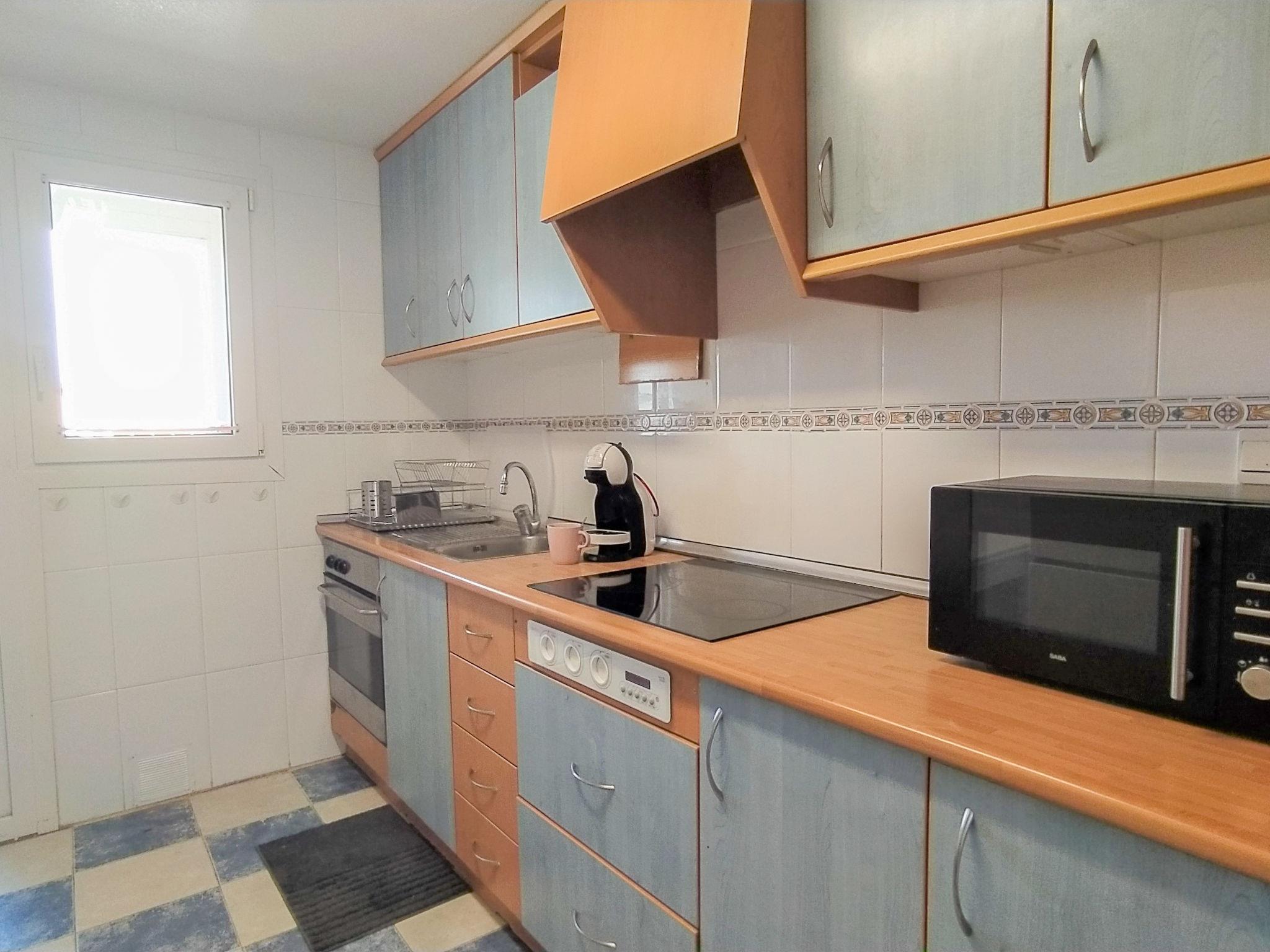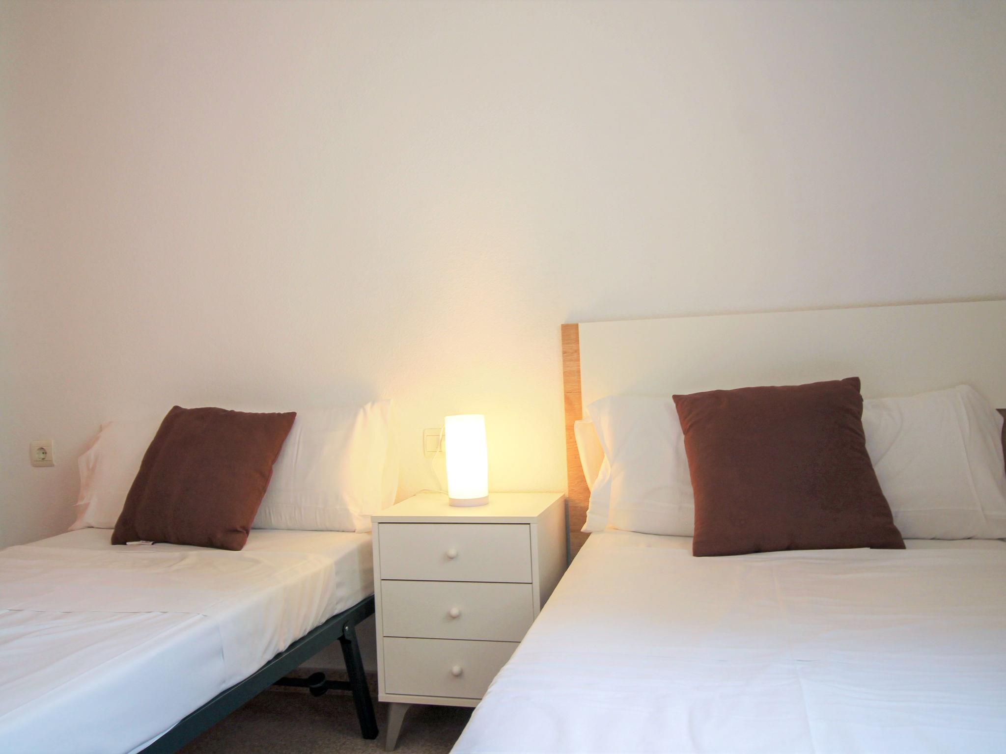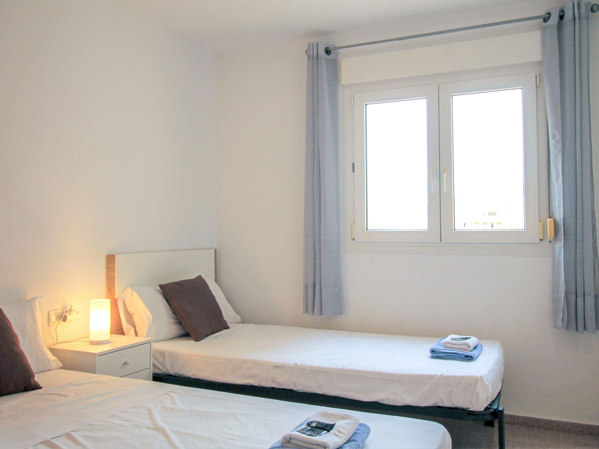 "Bitacoras", 3-room apartment 75 m2. Object suitable for 5 adults. Spacious and bright, simple and practical furnishings: living/dining room 21 m2 with air conditioning, fan and forced-air heating. Exit to the loggia. 1 room 9 m2 with 2 beds (90 cm, length 200 cm), air conditioning, fan and forced-air heating. 1 room 9 m2 with 1 french bed (150 cm, length 200 cm), shower/WC, air conditioning, fan and forced-air heating. Kitchen 8 m2 (4 ceramic glass hob hotplates, toaster, kettle, microwave, freezer, electric coffee machine, Capsules for coffee machine (Dolce Gusto) extra). Shower/WC. Terrace 11 m2. Terrace furniture. View of the sea, the garden and the countryside. Facilities: washing machine, iron. Internet (WiFi, free). Parking space n 58 (-2), height 230 cm. Suitable for families. CV-VUT0489279-A // Reg. Nr.: ESFCTU0000030560003328530000000000000CV-VUT0489279-A4
