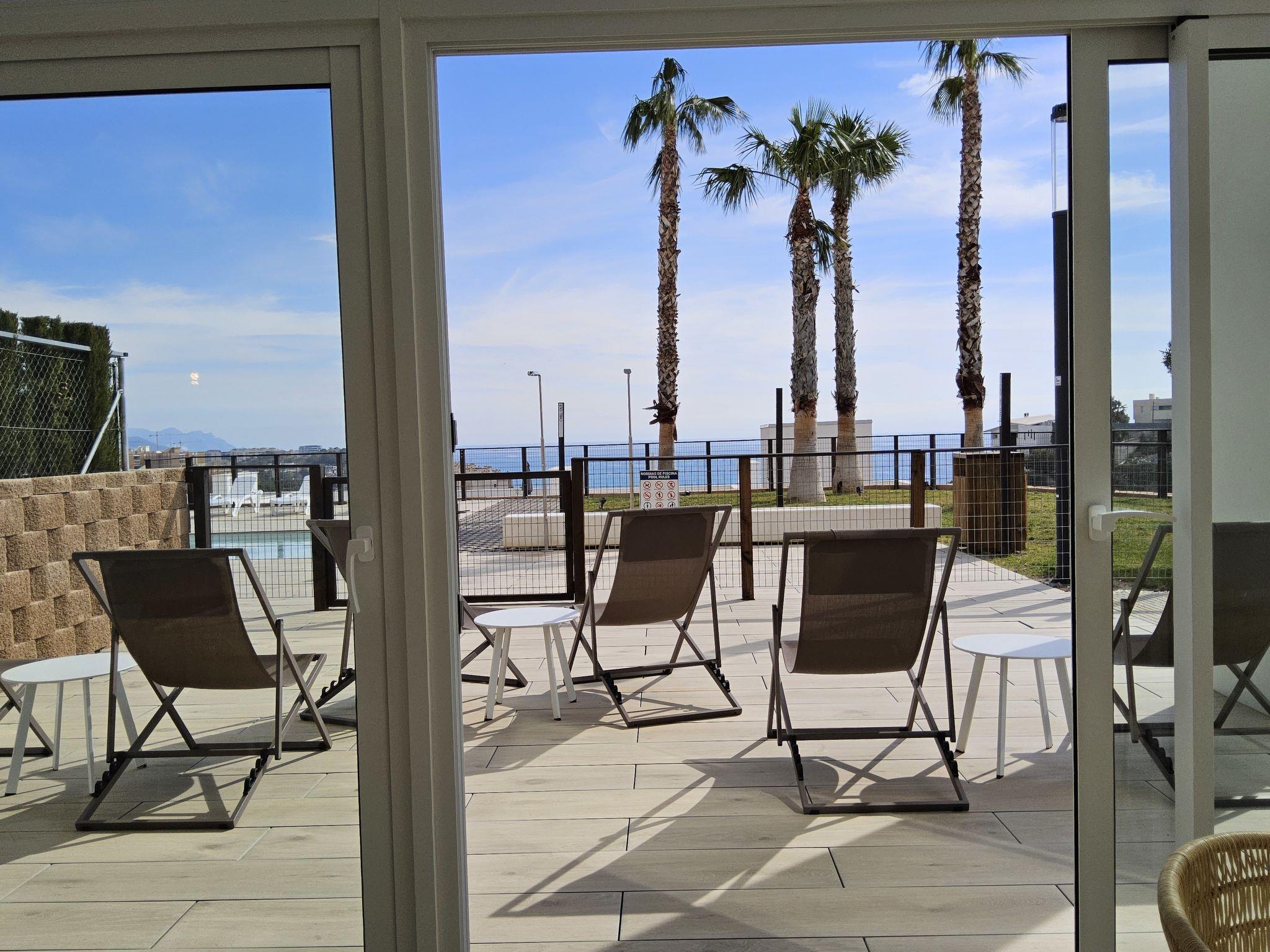 Zona Montiboli: Modern, comfortable holiday development "Bolnou Blue Sea", built in 2024. On the outskirts villajoyosa, in a sunny position on a slope, 400 m from the sea, 400 m from the beach. For shared use: property (fenced), swimming pool (21 x 4 m, depth 122 - 180 cm, seasonal availability: 01.Jan. - 31.Dec.). Outdoor shower. In the house: fitness room, lift. Parking space n 16. Supermarket 2 km, bar 900 m, bus stop "Villajoyosa numero 23" 50 m, railway station 900 m. Nearby attractions: Terra Natura Benidorm, Terra Mitica Benidorm, Aqualandia Benidorm, Mundomar Benidorm, Alicante, Aeropuerto. Please note: car recommended. Object suitable for 4 adults. The owner does not accept any youth groups. Neighbourhood highly sensitive to noise. Quietness and good behaviour expected.