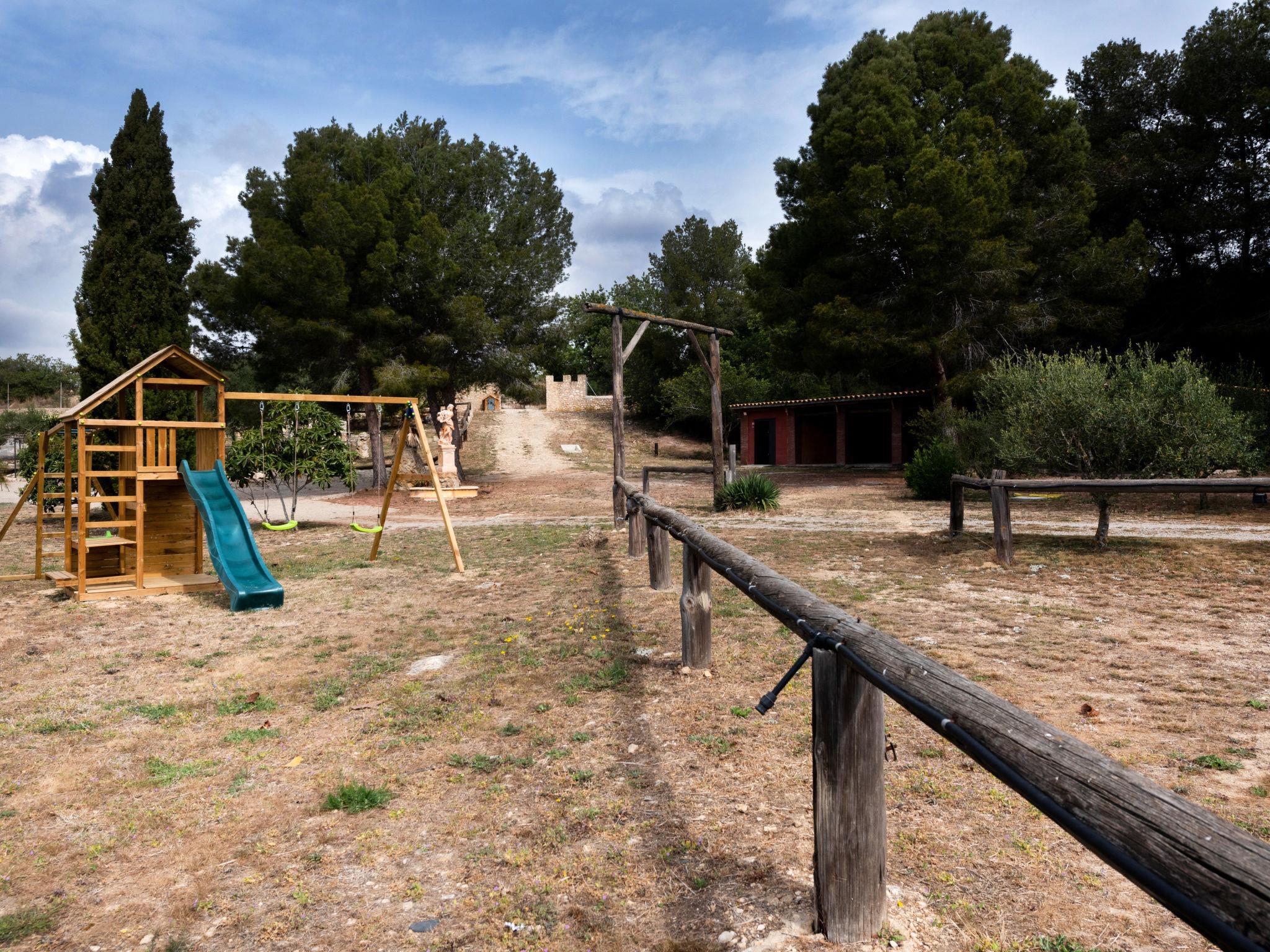 El Catllar: Old, rustic, historical farm estate "Mas d´en Tarres", 2 storeys, surrounded by fields. In a quiet position, 10 km from the sea, 10 km from the beach, in the countryside. Private: property 2 ha (fenced) with lawn and trees, natural garden, swimming pool (7 x 3 m, 21 m2, depth 120 - 150 cm, seasonal availability: 15.Jun. - 31.Sep.). Table tennis, barbecue, barbecue house, children's playground (slide, swing), parking (for 8 cars). Shop 3.5 km, grocery 3.5 km, supermarket 4.5 km, restaurant 3.5 km, bar 3.5 km, bus stop "El Catllar" 4 km, railway station "Torredembarra" 13 km. Please note: car recommended. Object suitable for 20 adults suitable for events.