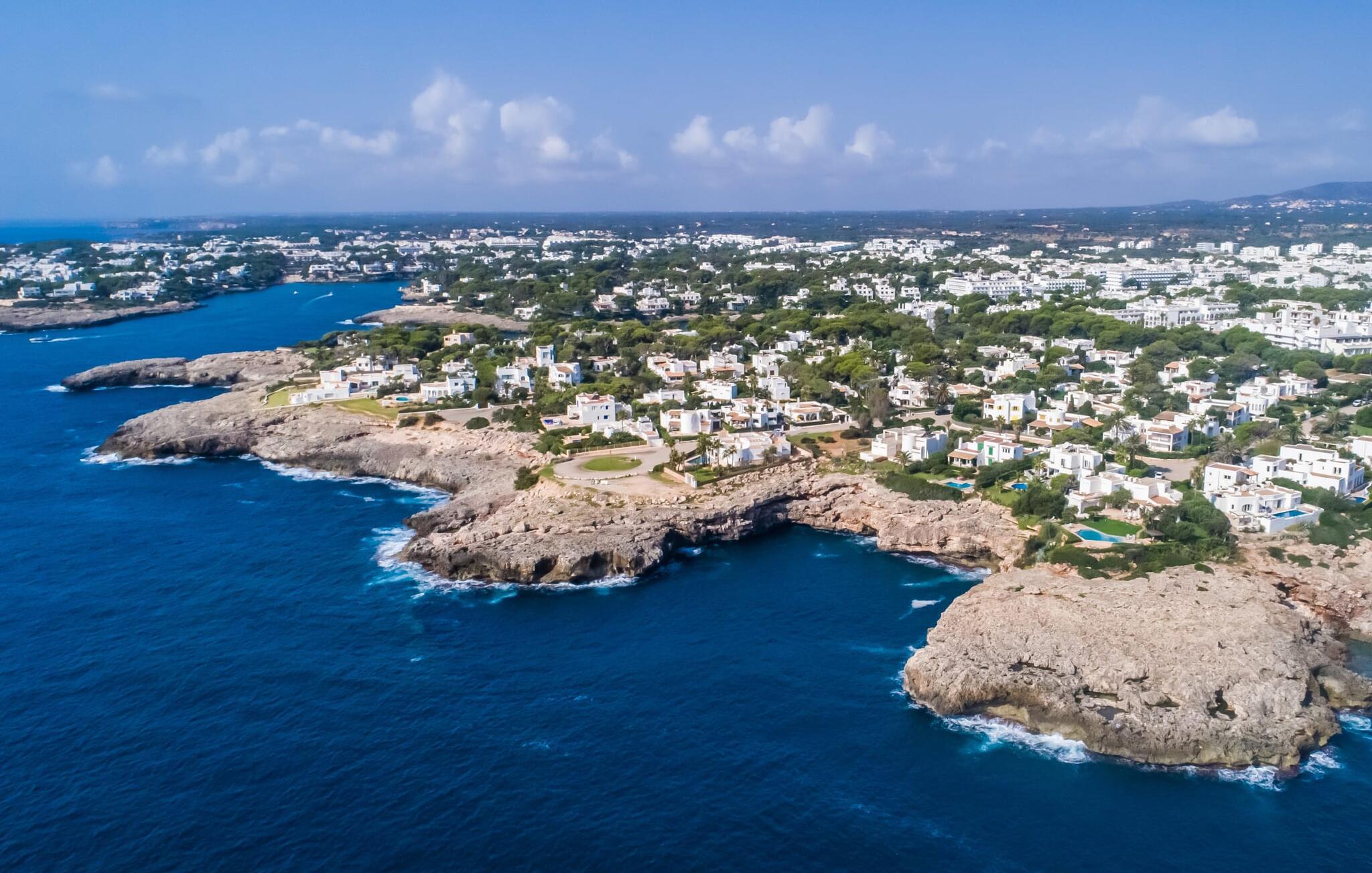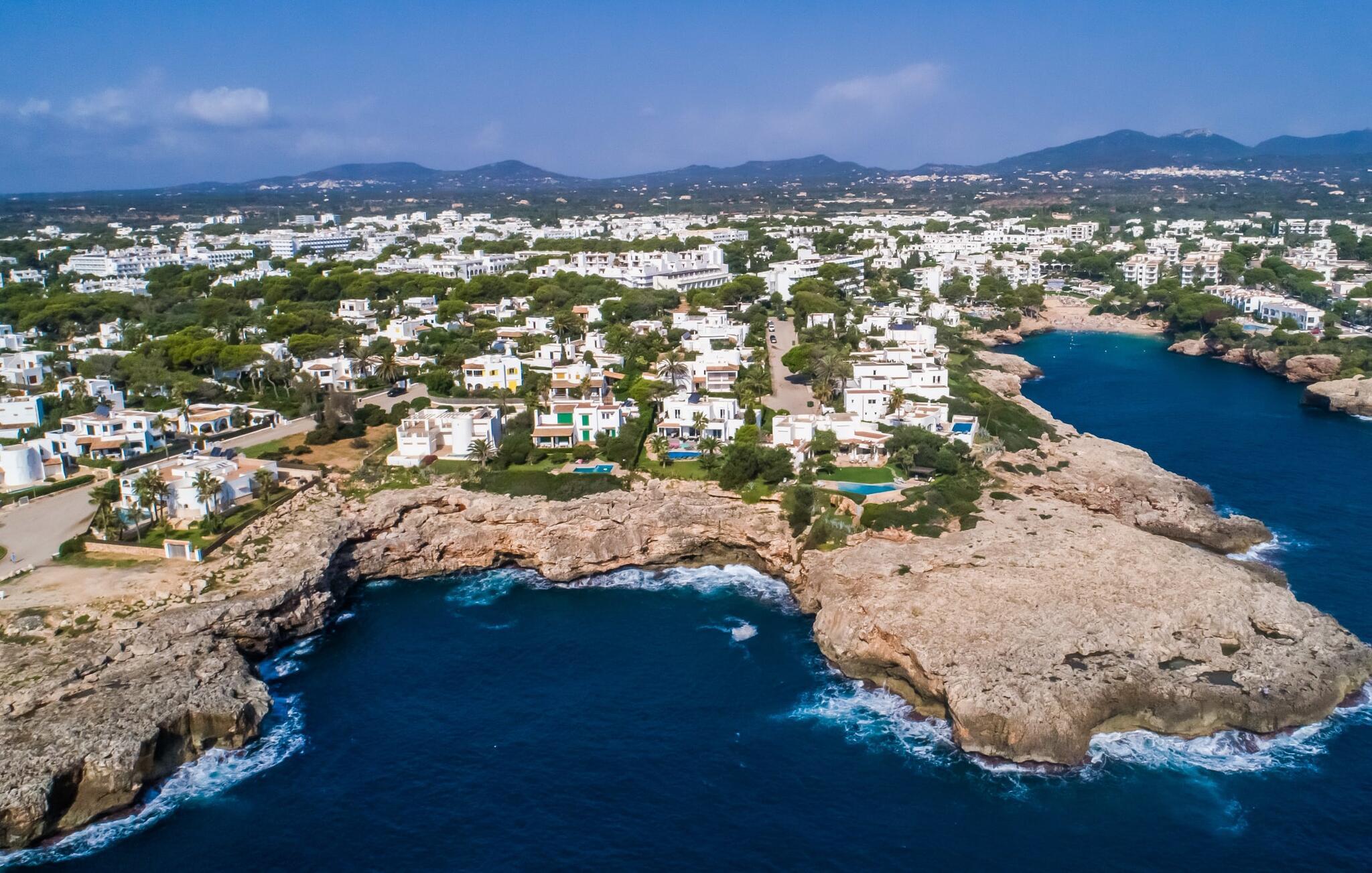 Der großzügige Wohnraum, verteilt auf zwei Ebenen, bietet Familien oder bis zu zehn Personen ausreichend Platz für gemeinsame Urlaubstage. Es erwartet Sie ein klassischer und zugleich zeitloser Einrichtungsstil. In den fünf geräumigen und klimatisierten Doppelzimmern kann man fast das Meeresrauschen hören. Damit Ihre Privatsphäre ungestört bleibt, gibt es neben jedem Schlafzimmer ein eigenes Vollbad mit Badewanne mit ausreichend Stauraum für Ihre Urlaubsgarderobe. Die Schlafzimmer verteilen sich auf das Erdgeschoss und das Obergeschoss. Der Ausgang zu den reizvollen Ausblicken, um das milde mediterrane Inselklima zu genießen, ist von allen Räumen aus gleichermaßen nah – über die Terrasse im Erdgeschoss oder die zahlreichen Balkone oder die Dachterrasse im Obergeschoss. Hier können Sie Ihren Blick über die urbane Umgebung der Villen im White-Style vor der Kulisse von Palmen und Meer schweifen lassen. In der voll ausgestatteten Küche erwartet Sie voller technischer Komfort für den Erfolg der bewusst gewählten Selbstversorgung mit Familie oder Freunden. Für kühlere Momente gibt es auf jeder Etage des hellen Ferienhauses ein Wohnzimmer. Genießen Sie Ihren Urlaub auf Mallorca und willkommen am Meer – „El Delfin“ überzeugt durch seine perfekte Lage in einem der schönsten Küstengebiete Mallorcas im trendigen Südosten. Die strahlend weiße Poolvilla „El Delfin“ mit zahlreichen Meerblickterrassen auf verschiedenen Ebenen und einer Außenküche befindet sich in absoluter Premiumlage und erster Küstenlinie im Küstenort Cala D'Or. Nur 1 km trennt die im Süden Mallorcas gelegene Urbanisation mit ausschließlich Wohnverkehr vom Ortszentrum. Ob Restaurants oder Einkaufsmöglichkeiten, alles ist schnell zu erreichen. Sie haben die Wahl zwischen zahlreichen Stränden wie Cala Esmeralda oder Cala Gran, die Sie auch zu Fuß erreichen können.