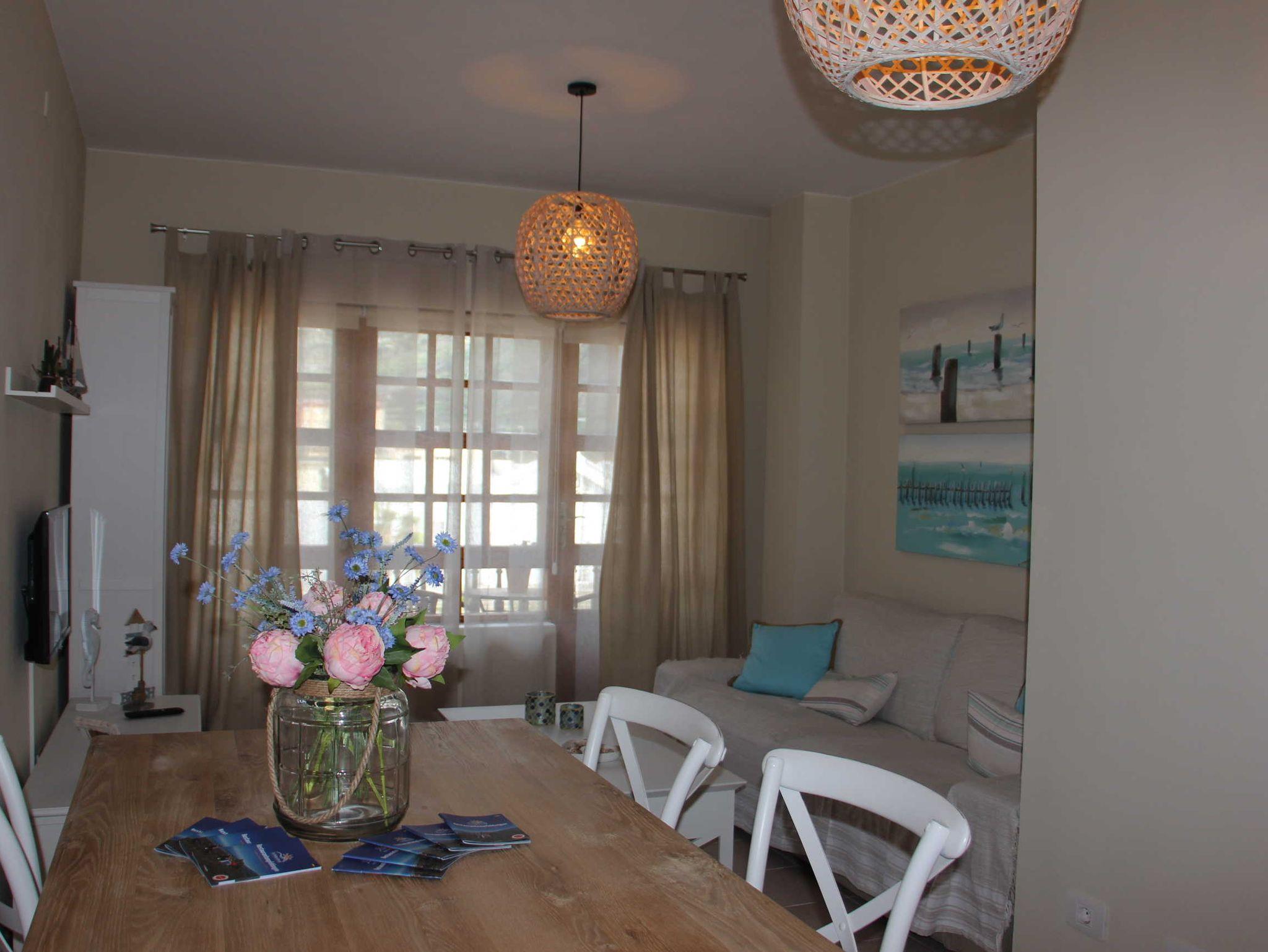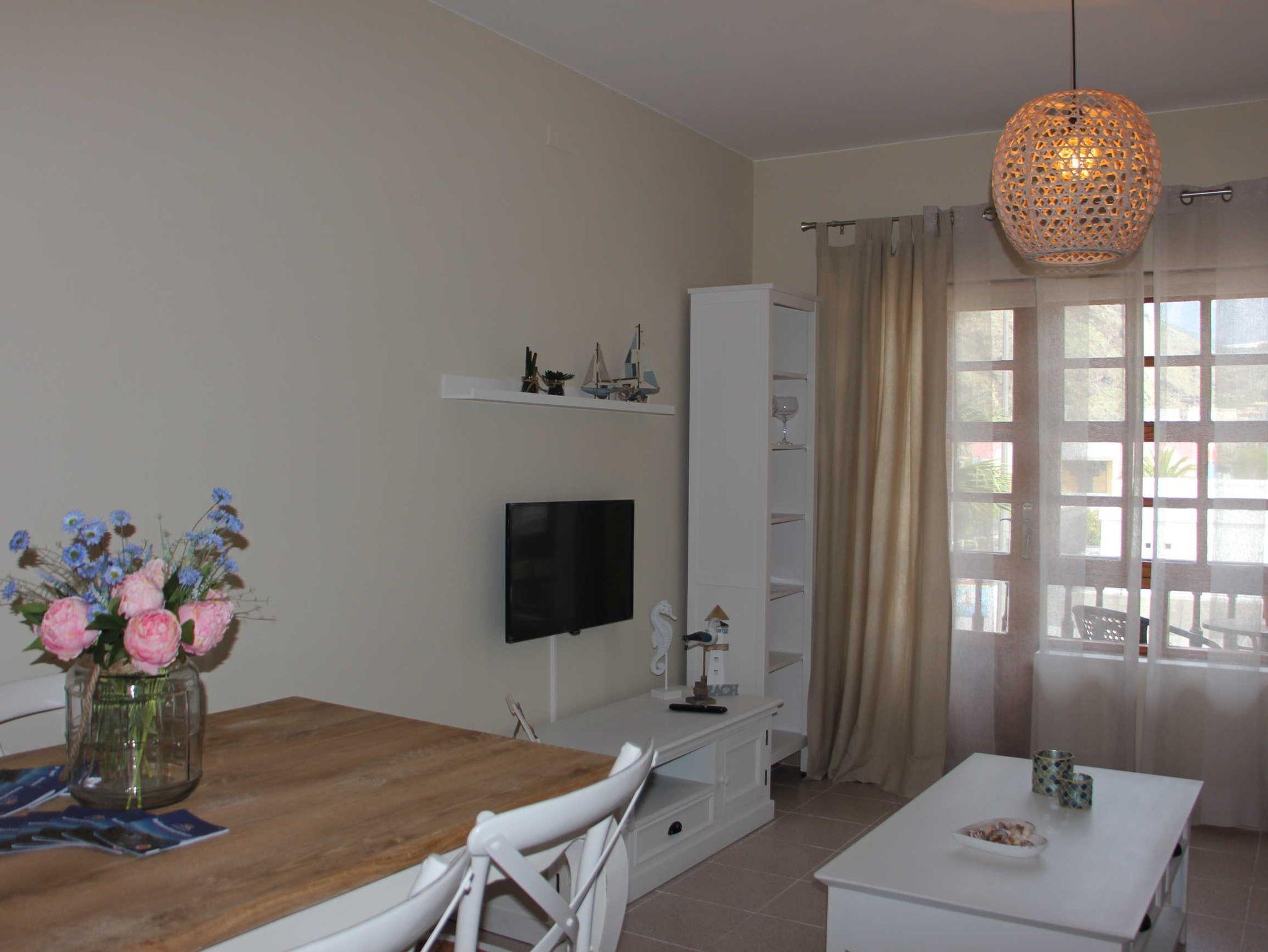 Die Ferienwohnung befindet sich im zweiten Stock des viergeschossigen Apartmenthauses Edificio Orion. Ein Aufzug ist vorhanden. Sie verfügt über zwei Schlafzimmer, eine separate Küche, ein Wohn-/Eßzimmer und Dusche/WC. Ein kleiner möblierter Balkon mit Bergblick ist vorhanden.