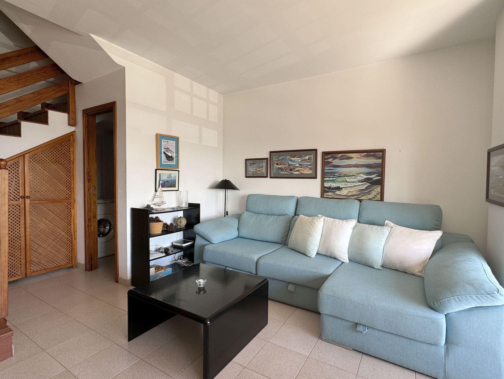 Das Maisonette-Apartment hat eine große Fensterfront mit Meerblick. Auch von den Schlafzimmern, die eine Etage höher liegen, hat man herrlichen Meerblick.