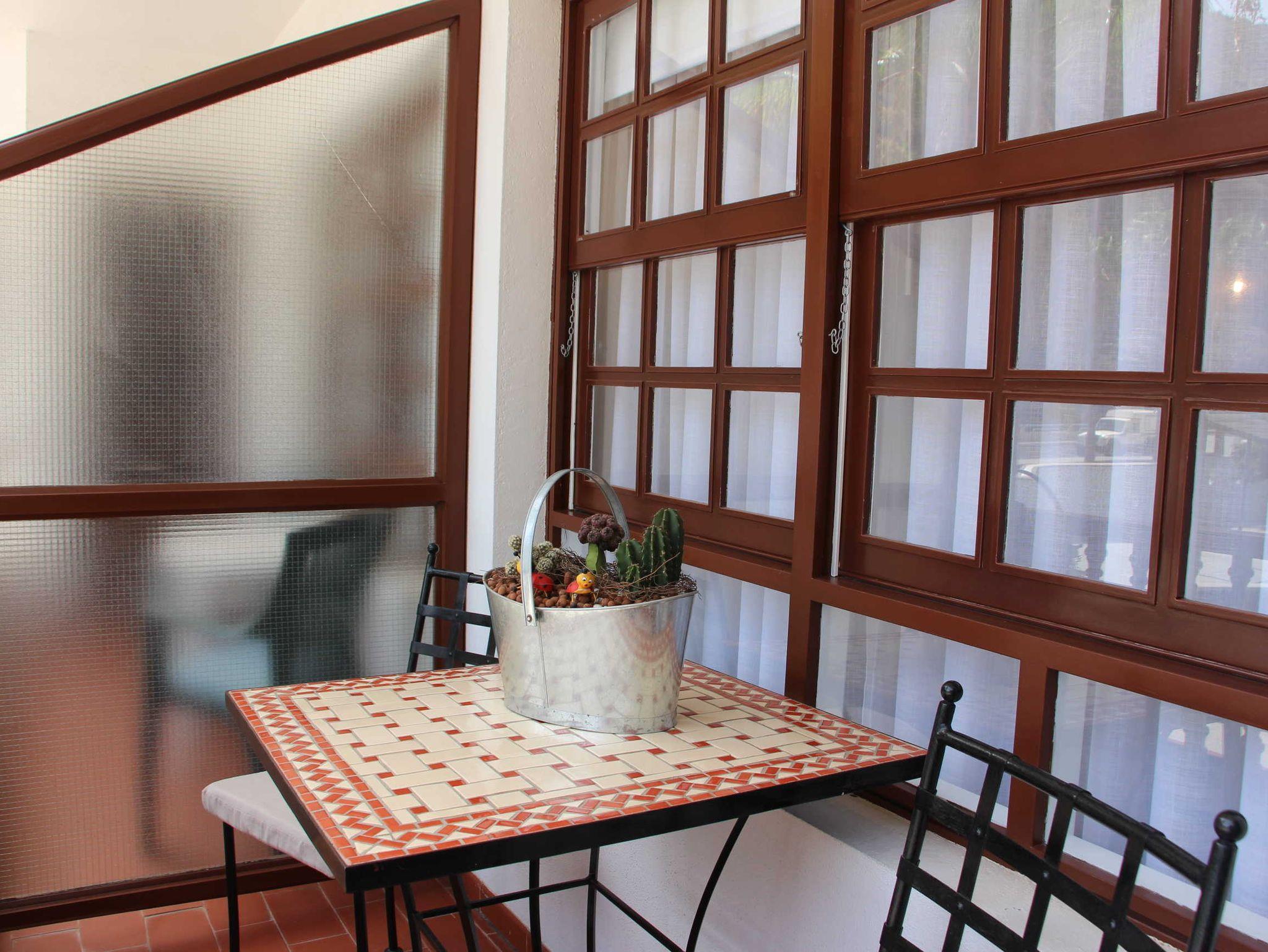 Die Ferienwohnung befindet sich im ersten Stock des viergeschossigen Apartmenthauses Edificio Orion. Ein Aufzug ist vorhanden. Sie verfügt über zwei Doppelschlafzimmer, eine separate Küche, ein Wohn-/Eßzimmer und Dusche/WC. Ein kleiner möblierter Balkon mit Bergblick ist vorhanden.