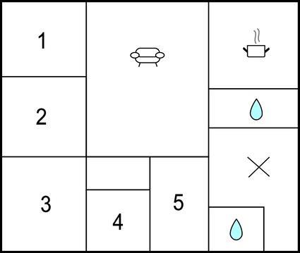 Badezimmer 8m2 (nr. 1) - WC. Warmes und kaltes Wasser. Dusche