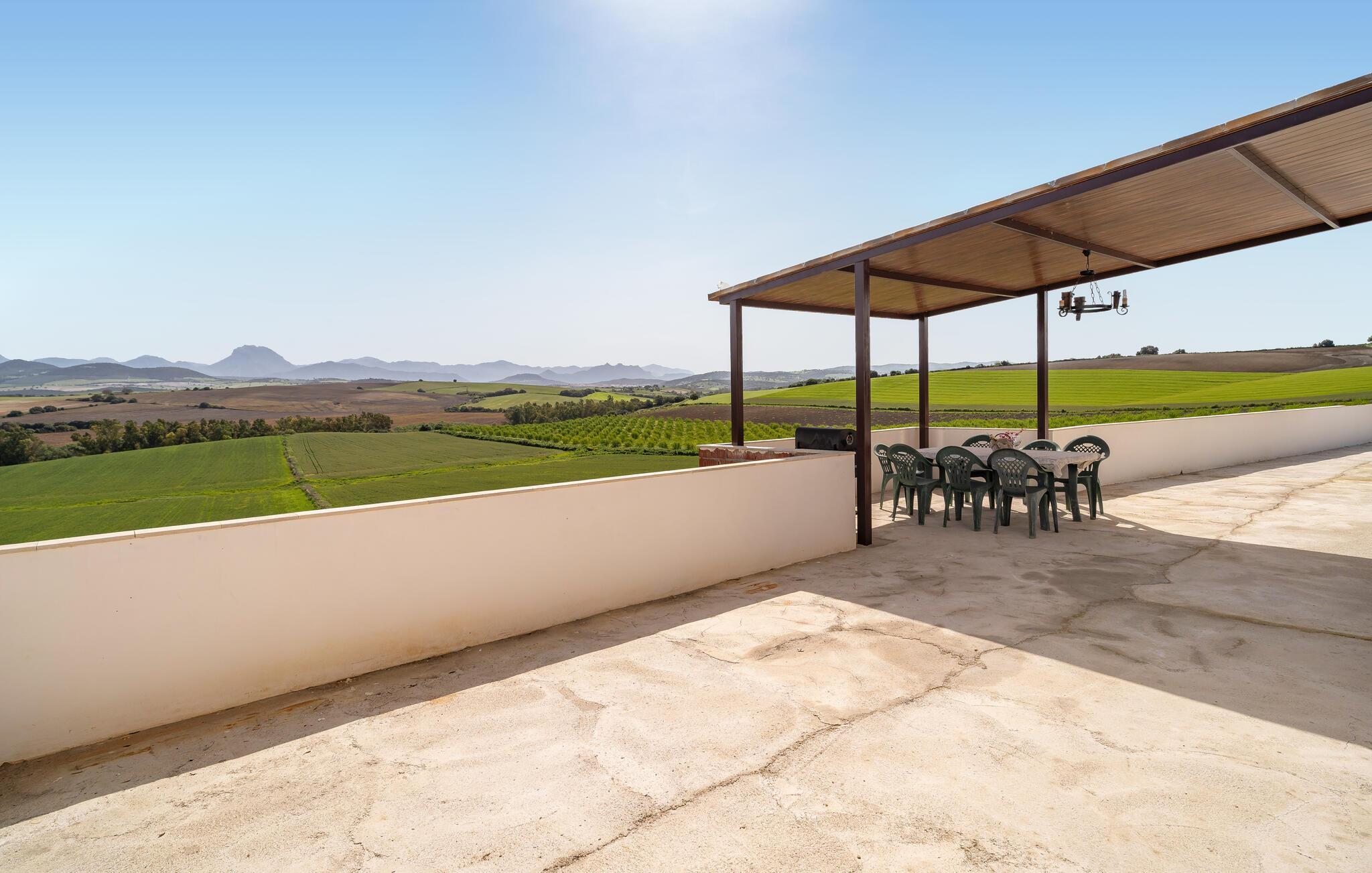 Das Haus bietet einen großzügigen Wohnbereich, der zum Verweilen einlädt. Machen Sie es sich auf den bequemen Sofas bequem und verbringen Sie hier gesellige Abende mit der ganzen Familie. Der Essbereich ist ideal, um gemeinsam die Mahlzeiten zu genießen, die Sie in der gut ausgestatteten Küche zubereiten können. Die Küche selbst bietet viel Platz und moderne Ausstattung, um Ihre Kochkünste voll auszuleben. Um Ihren Aufenthalt noch unvergesslicher zu machen, steht Ihnen eine große, authentische Paella-Pfanne zur Verfügung, die sich perfekt für die Zubereitung einer traditionellen spanischen Paella eignet. Nutzen Sie den Grillbereich für ein geselliges Barbecue im Freien und genießen Sie dabei den weiten Blick über die umliegenden Felder. Lassen Sie den Tag auf der Terrasse ausklingen, während die Sonne über der andalusischen Landschaft untergeht.