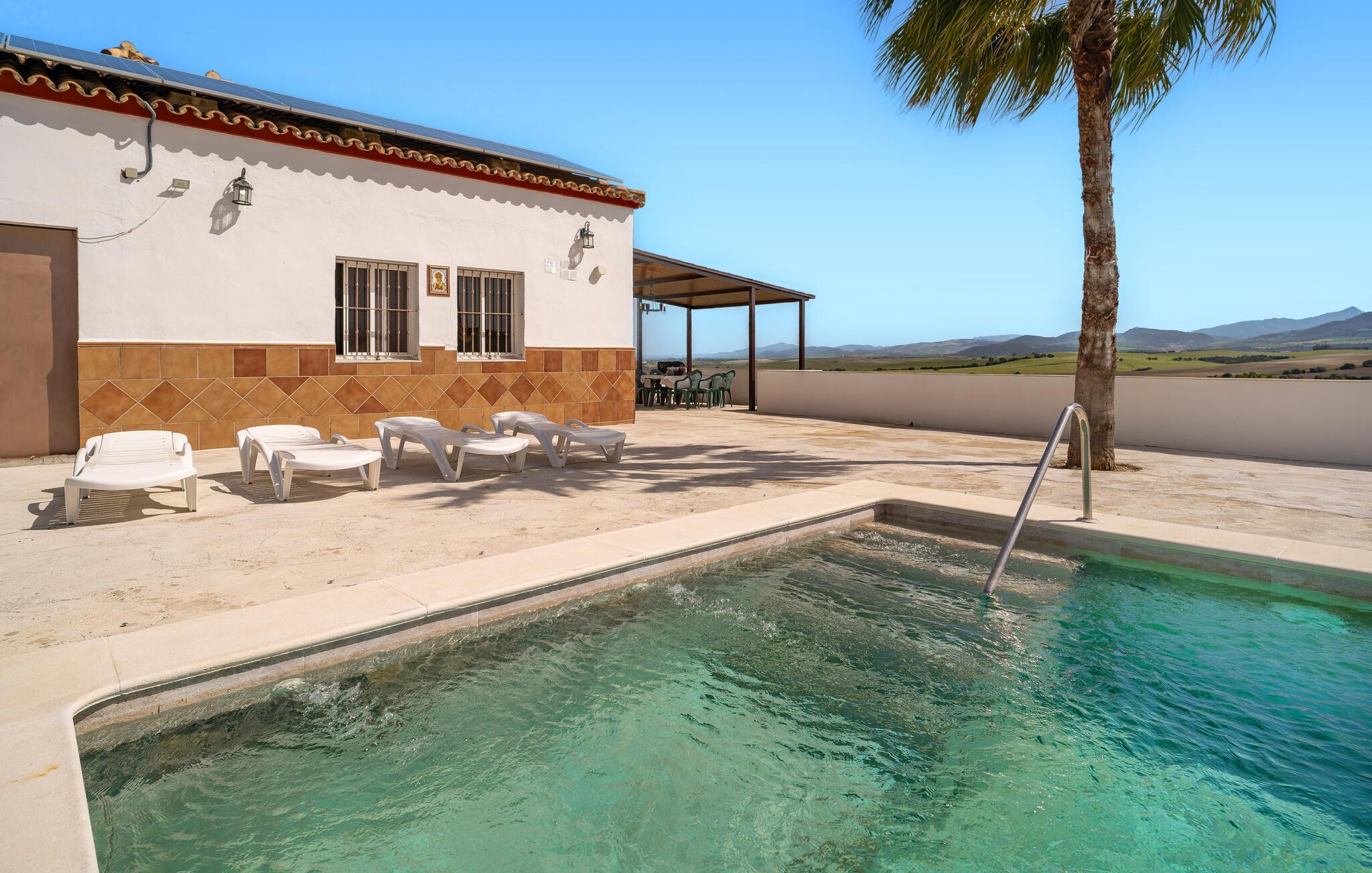 Verbringen Sie einen erholsamen Urlaub in diesem idyllischen Ferienhaus nahe Arcos de la Frontera, einem der schönsten weißen Dörfer Andalusiens. Genießen Sie die Ruhe und Abgeschiedenheit, während Sie auf den gemütlichen Sonnenliegen am Pool entspannen. Beginnen Sie Ihren Tag mit einem Sprung ins erfrischende Wasser oder genießen Sie den Blick auf die umliegende Landschaft von der Terrasse aus.