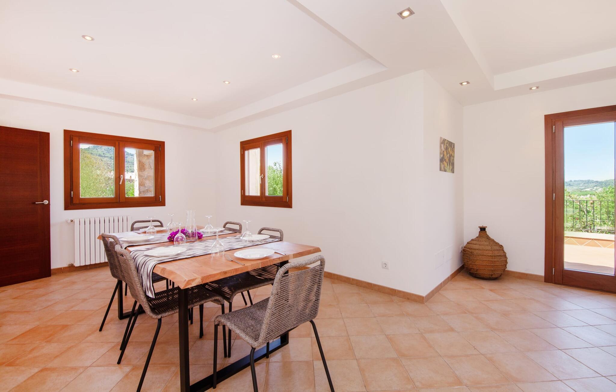 Auch wenn Sie bei all den zahlreichen Möglichkeiten lieber draußen sind, wird Sie das hübsche Ferienhaus mit seiner geschmackvollen Einrichtung ins Innere locken. Da das Haus dank der Zentralheizung das ganze Jahr über genutzt werden kann, wird man sich vor allem in den kühleren Monaten (in denen sich ein Besuch auf Mallorca gleichermaßen lohnt) auch häufiger drinnen aufhalten wollen. Das schöne Wohnzimmer mit gemütlichem Kamin sorgt in Kombination mit dem angrenzenden Essbereich für einen angenehmen Aufenthalt. Zudem erleichtert die schicke Landhausküche mit Vollausstattung die bewusst gewählte Selbstversorgung und bringt Freude am Kochen. In seiner Natürlichkeit weiß das geschmackvolle Interieur durch puristisches Design und Gemütlichkeit zu überzeugen. Das Haus ist ideal für zwei Paare oder zwei Familien mit Babys – Sie haben viel Platz mit einem geräumigen Doppelzimmer im Erdgeschoss und einem gleichwertigen Zimmer im Obergeschoss. Jedes Schlafzimmer dieses besonderen Ferienhauses verfügt außerdem über ein Badezimmer en Suite. Das dritte Badezimmer befindet sich im Erdgeschoss neben dem exklusiven Kinderspielzimmer. Nach der Erkundung dieser abwechslungsreichen Region kehren Sie auf die traumhafte Mietfinca „Fetget Can Bosco“ zurück, genießen die Freiheit dieses traumhaften Domizils und werden möglicherweise zum Wiederholungstäter. Warum nicht?