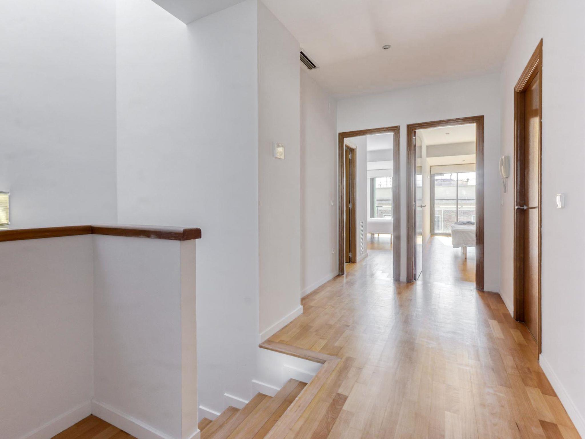 5-room penthouse 160 m2 on 2 levels on 3rd floor. Spacious and bright, modern and cosy furnishings: living/dining room with dining table, digital TV, air conditioning and forced-air heating. Exit to the terrace, east facing position and south facing position. Large kitchen (oven, dishwasher, 3 ceramic glass hob hotplates, toaster, kettle, microwave, freezer, electric coffee machine). Shower/WC. Upper floor: 1 large room with 1 french bed (160 cm, length 200 cm), bath/bidet/WC, air conditioning and forced-air heating. Exit to the balcony. 1 room with 2 beds (90 cm, length 200 cm), air conditioning and forced-air heating. 1 large room with 1 french bed (160 cm, length 20 cm), air conditioning and forced-air heating. Exit to the balcony. 1 small room with 1 bed (90 cm, length 190 cm), air conditioning and forced-air heating. Exit to the terrace, west facing position and north facing position. Bath/WC. Large terrace 20 m2. Terrace furniture. View of the city. Facilities: washing machine, iron, children's high chair, baby cot, hair dryer. Internet (WiFi, free). Please note: non-smokers only. HUTG-076840 // Reg. Nr.: ESFCTU00001700800118595500000000000000000HUTG-0768402