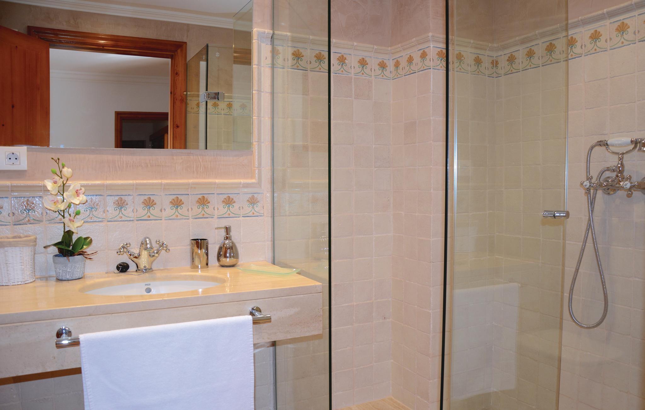 Sie wohnen auf 3 eleganten, mit einem Lift verbundenen Wohnebenen. In der untersten Etage finden Sie ein SZ, das Hallenbad und den Garten mit einer gepflegten Rasenfläche. Die großen Schiebetüren des Pools können geöffnet werden. Das Hallenbad wird ganzjährig auf 28 Grad Celsius beheizt und die Kosten sind inklusive. Alle 4 weiträumigen Schlafzimmer sind en Suite. Ein weiteres, praktisches Bad mit separater Dusche und WC befindet sich im EG beim Schwimmbad. Kamin nur dekorativ. Strom inklusive. Gruppen (ausgenommen Familien und Pärchen ü30) auf Anfrage und mit Spezialkaution. Lizenznummer: 16760/2015