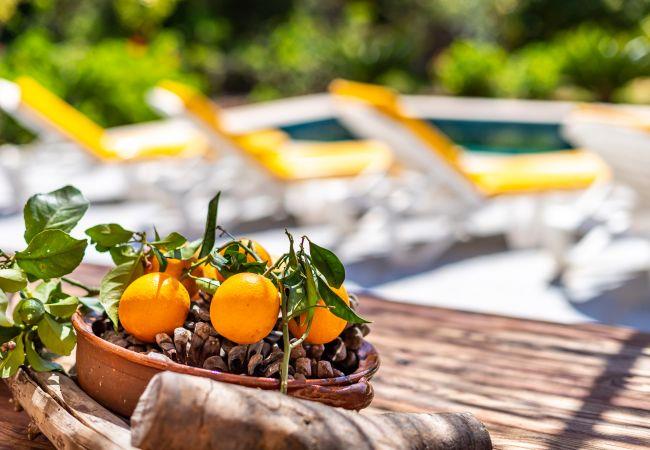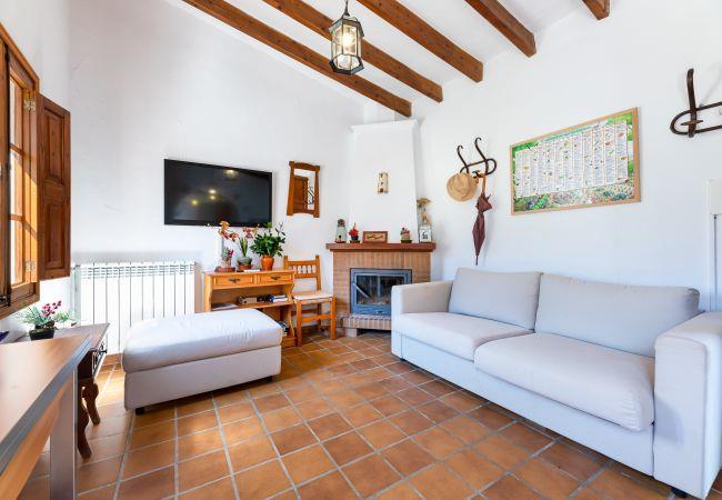 The accommodation is equipped with the following items: garden, garden furniture, fenced garden, terrace, barbecue, fireplace, iron, internet (Wi-Fi), hair dryer, balcony, air conditioning (hot/cold), air conditioning in the living room, private swimming pool, open-air parking in the same building, TV, satellite (Languages: Spanish, English, German).