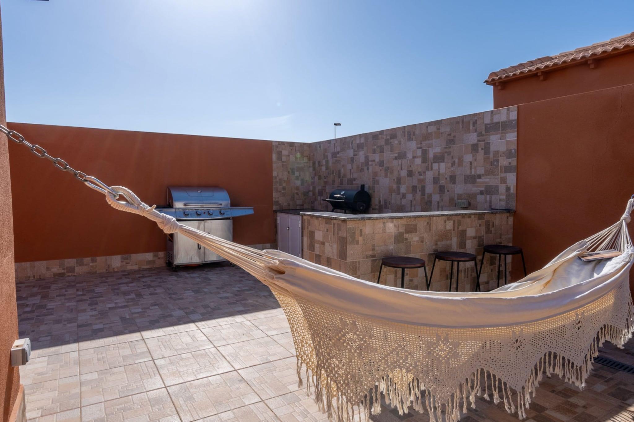 Welcome to your dream villa in the most beautiful part of Fortuna. Nestled in a peaceful and secure neighborhood, this elegant property offers the perfect combination of comfort, convenience, and stunning views. Enjoy a refreshing dip in the private outdoor pool or unwind on the covered terrace. The fenced and beautifully landscaped garden is perfect for dining al fresco, sunbathing, or simply enjoying the peaceful surroundings. The town center is just 1.9 km away, offering shops, restaurants, and entertainment venues, while the nearest supermarket is 3.7 km away for your daily needs. Inside, the villa welcomes you with a spacious living and dining area. After a day of exploring, unwind in the cozy sitting area with a flat-screen TV and air conditioning, or open the French doors to the furnished garden for an evening outdoors. The fully equipped kitchen provides everything you need to prepare meals, and the air-conditioned bedrooms ensure restful nights during the summer months. To ensure a smooth arrival, please inform the manager of your expected arrival time a few hours in advance. Guests must shower with soap before using the pool, and the use of oil or sunscreen in the water is prohibited. Charging electric cars is not allowed due to fire risk, and there is one private parking space available. The villa cannot accommodate groups under 18 years old, student gatherings, or party events.