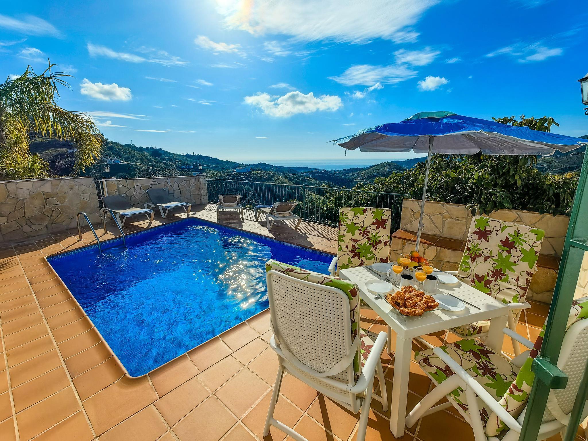 Cosy, rustic, comfortable country house "La Era", surrounded by trees and fields. Above Frigiliana 3 km from the centre of Frigiliana, in an elevated position on a slope, 11 km from the sea, 11 km from the beach, in a cul-de-sac. Private: natural state property 300 m2, swimming pool (6 x 3 m, depth 160 - 170 cm, seasonal availability: 01.Jan. - 31.Dec.). Outdoor shower. 600 m long steep, narrow motor access. Public parking on the road. Shop 3 km, supermarket 3 km, restaurant 3 km, bar 500 m, bus stop "Frigiliana" 3 km, railway station "Maria Zambranos" 60 km, sandy beach 11 km. Nearby attractions: Frigiliana 3 km, Nerja 7 km, cuevas de Nerja 9 km, La Herradura 17 km, Málaga 61 km, Granada 103 km. Well-known ski regions can easily be reached: Sierra Nevada 131 km. Hiking paths: Sierra Tejeda 20 km, Sierra Almijara 3 km, El Fuerte 5 km. Please note: car recommended. The owner does not accept any groups. The owner does not accept any youth groups.