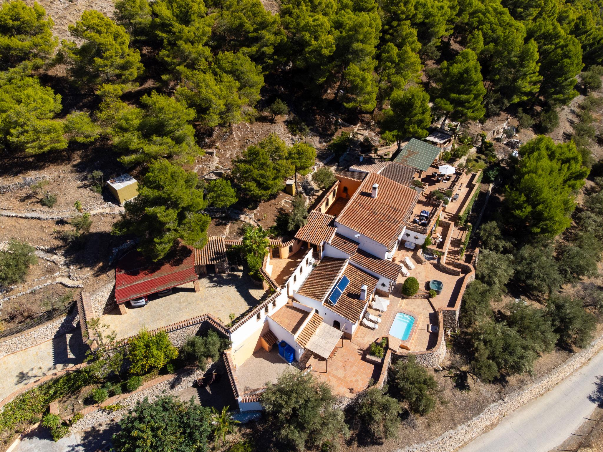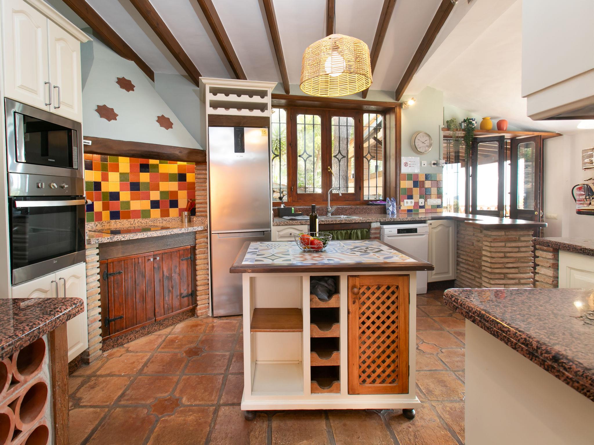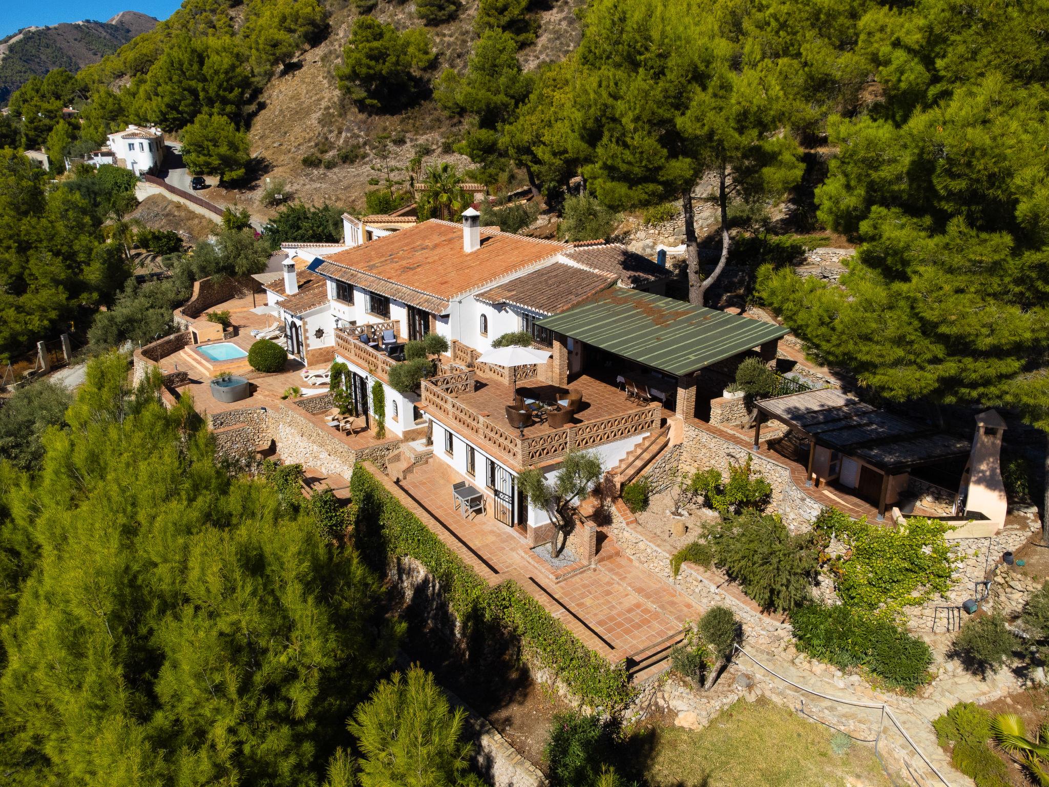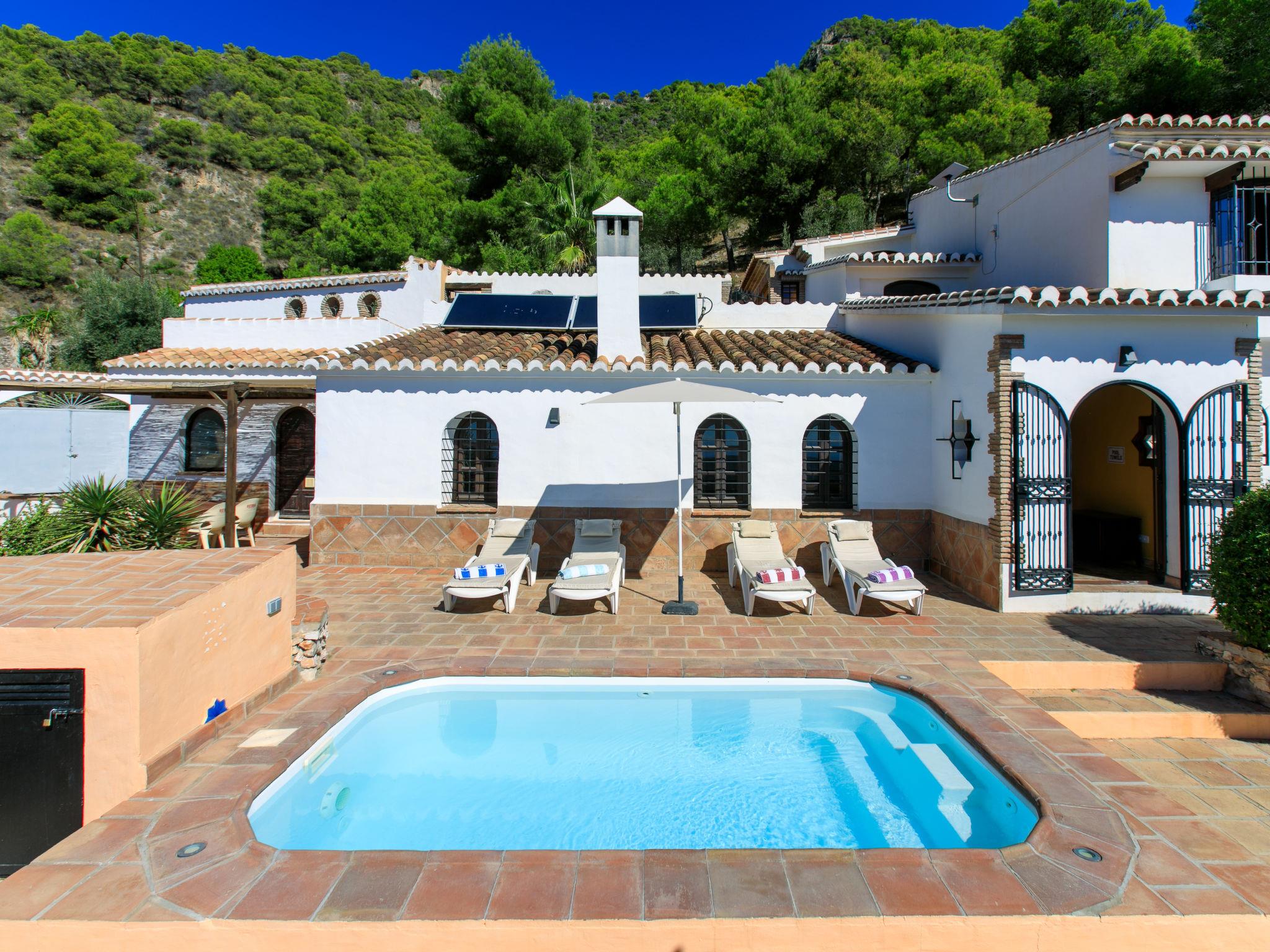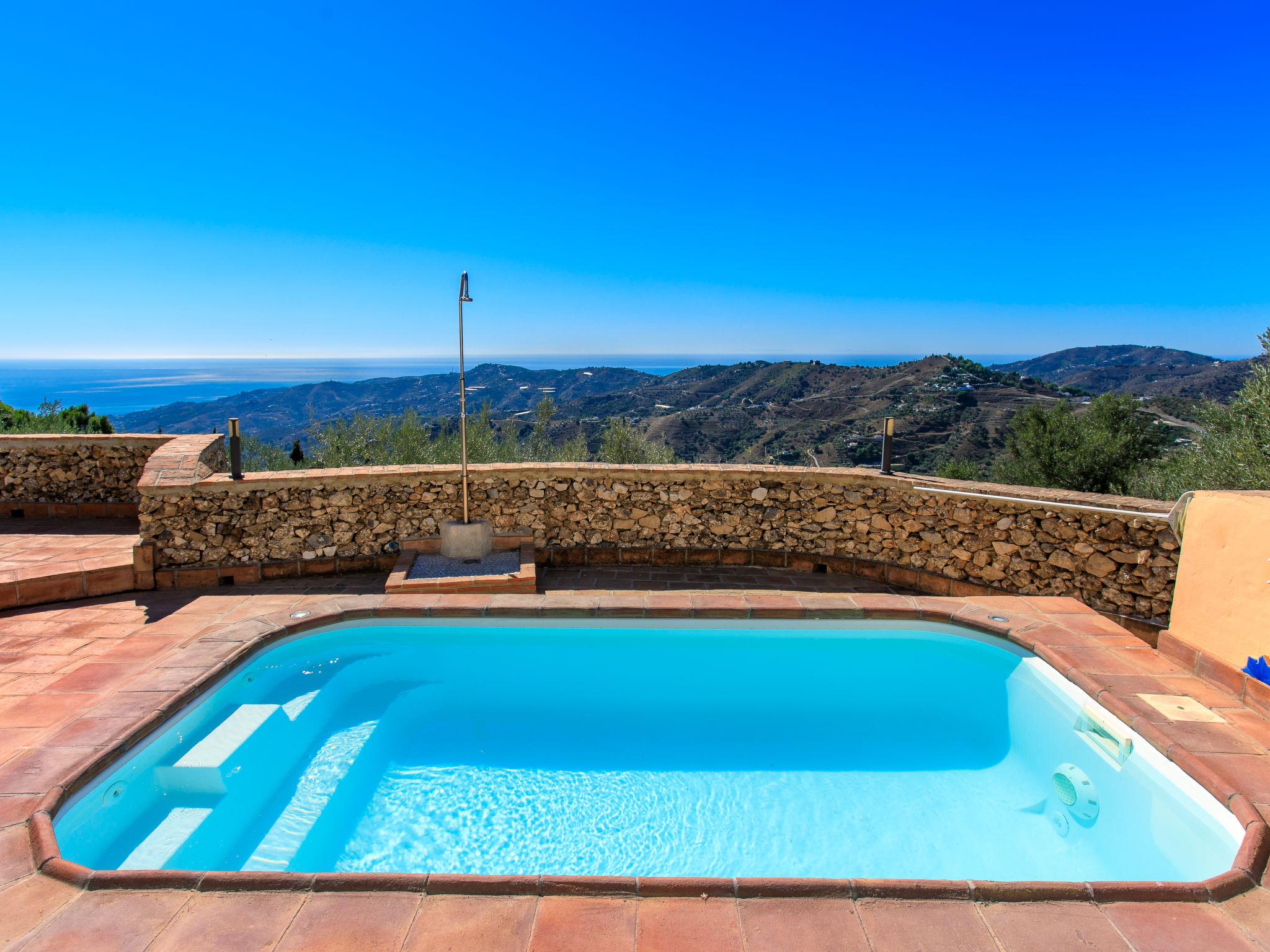 Frigiliana 10 km from Nerja: Fantastic, very comfortable and private house, right next to the Sierra Almijara natural area. Just steps away from numerous hiking and mountain-biking routes. Only a 10-minute drive from the charming village of Frigiliana and 25 minutes from Nerja. Large, rustic, comfortable hillside complex "Cielo". Outside the resort, 5 km from the centre of Frigiliana, in a sunny position on top of a hill, 15 km from the sea, 15 km from the beach, south facing position. Private: property, natural garden 150 m2, swimming pool angular (5 x 3 m, depth 100 - 100 cm, seasonal availability: 01.Jan. - 31.Dec.). Outdoor shower, terrace, garden furniture, barbecue. In the house: hot tub. Parking (for 4 cars) on the premises. Shop 5 km, supermarket 5 km, shopping centre 25 km, restaurant 5 km, bakery 5 km, pedestrian zone 5 km, bus stop "Frigiliana" 5 km, sandy beach "Burriana" 15 km, diving center 15 km. Sports harbour 17 km, golf course (18 hole) 30 km, tennis 15 km, walking paths from the house 4 km, cycle lane 1 m. Nearby attractions: Museo de Nerja, Cuevas de Nerja, Acantilados de Maro, Museo de la miel de Caña, Loro Park Almuñecar, Aquavelis Torre del Mar. Well-known ski regions can easily be reached: Sierra Nevada. Hiking paths: Sierra Tejeda, Sierra Almijara, Las Alpujarras. Please note: car recommended. The owner does not accept any youth groups. Loading and unloading of baggage is possible at the holiday house.
