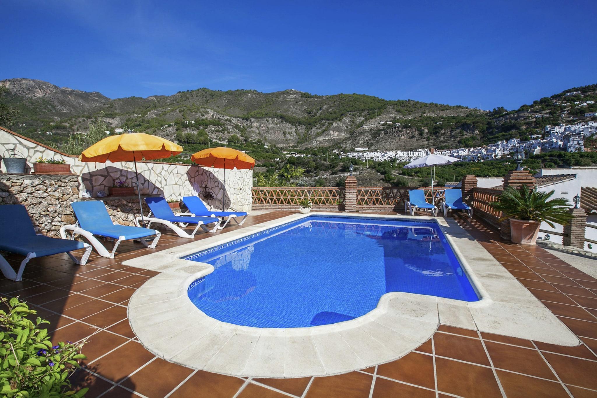 Ground floor: (open kitchen(bar, cooker, coffee machine, microwave, dishwasher, fridge-freezer), Living/diningroom(TV(flatscreen), fireplace, seating area, DVD player), bedroom(double bed(140 x 200 cm), air conditioning), bedroom(2x single bed(90 x 190 cm), air conditioning), bedroom(2x single bed(90 x 190 cm), air conditioning), bathroom(bathtub with shower, washbasin, toilet), bathroom(shower, washbasin, toilet), terrace(roofed)) washing machine, terrace(roofed), terrace, garden furniture, sun loungers, BBQ, parking, parasol, swimming pool(private, 6 x 4 m.), children's bed, high chair