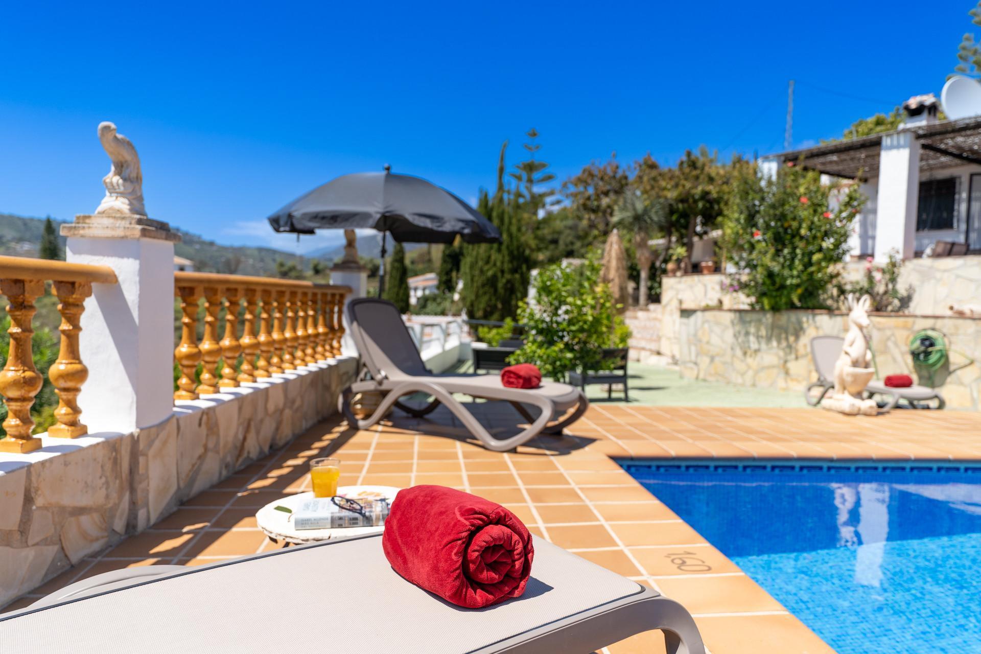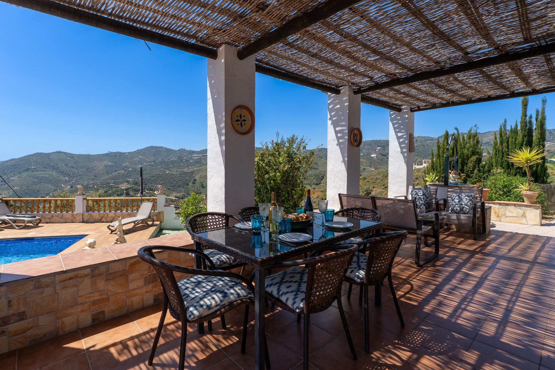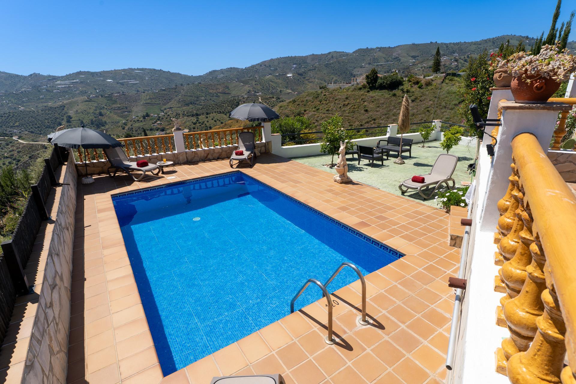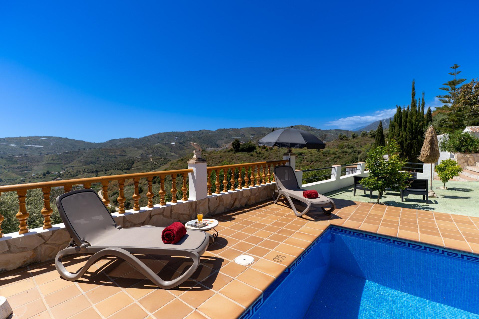 The town of Frigiliana, with numerous restaurants, bars and craft shops, is within a short 5-minute drive, yet you also have all the joys of living in tranquility with your own pool (7x3,5 m) available all year round and a splendid sunny terrace with sun loungers. The cottage is surrounded by terraces offering magnificent views in all directions, the most impressive out to the sea from the front veranda overlooking the pool. Next to the house is a barbecue area including a natural stone-made oven, the type used by the locals to prepare the typical cochenillo segoviano (sucking pig). Of course you can also use it to make your own favourite pizzas, and you can enjoy them alfresco in the dining corner next to the barbecue area. If you so desire to dip into the ocean, the beaches of Nerja are only 7.5 km away. You can also enjoy the excellent paellas at Burriana beach.