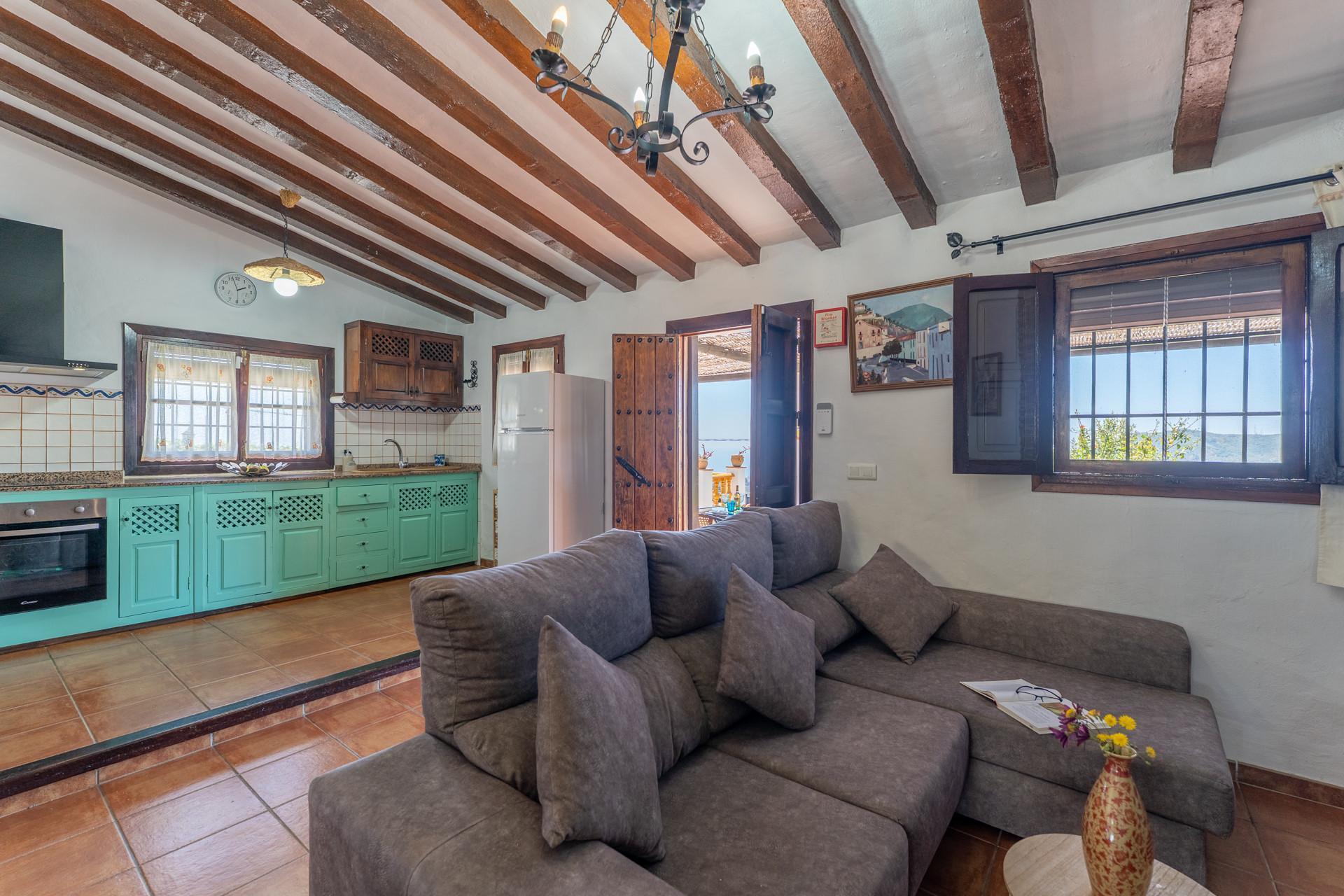 This lovely cottage is perched on a hillside, northwest of Frigiliana (3.5 km). From the veranda, you will enjoy superb views across the surrounding landscape out to the Mediterranean. An authentic hideaway for those who are looking for a peaceful location with the beaches of Nerja at a 15 minutes’ drive. Inside, comfortable furnishing awaits with all rooms on one floor.