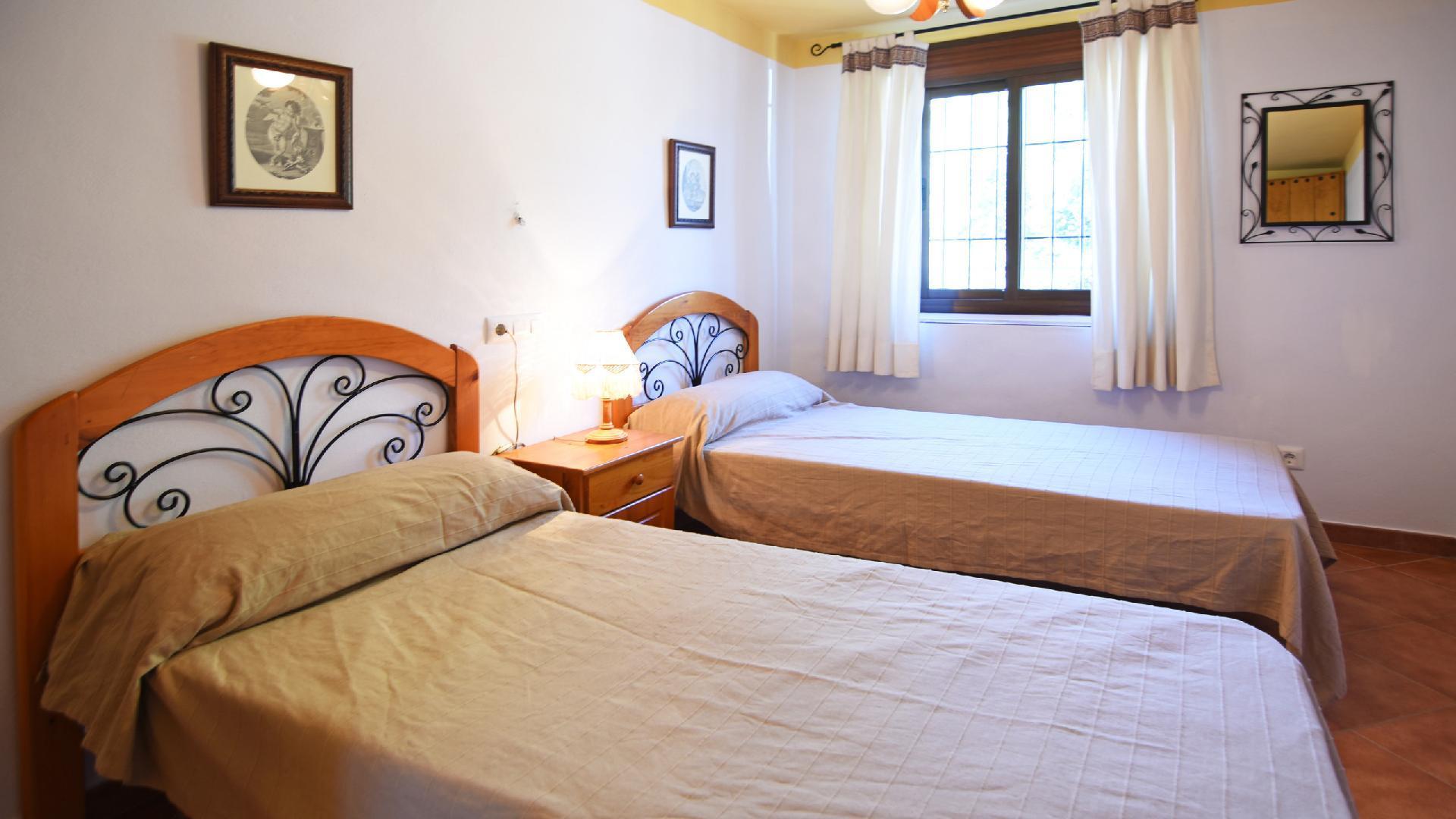 The front terrace gives access to the cosy dining / living room, provided with a wood burning stove, dining table for 4, sofa, 2 armchairs, and flat screen TV with satellite reception. A few steps lead down to the kitchen that comes with a 4 rings ceramic hob, oven, microwave, fridge/freezer, dishwasher and a washing machine. A twin bedroom is also accessed with a few steps down from the ground floor. On the first floor you’ll find a spacious double bedroom and a shower room with WC, bidet and single wash basin.