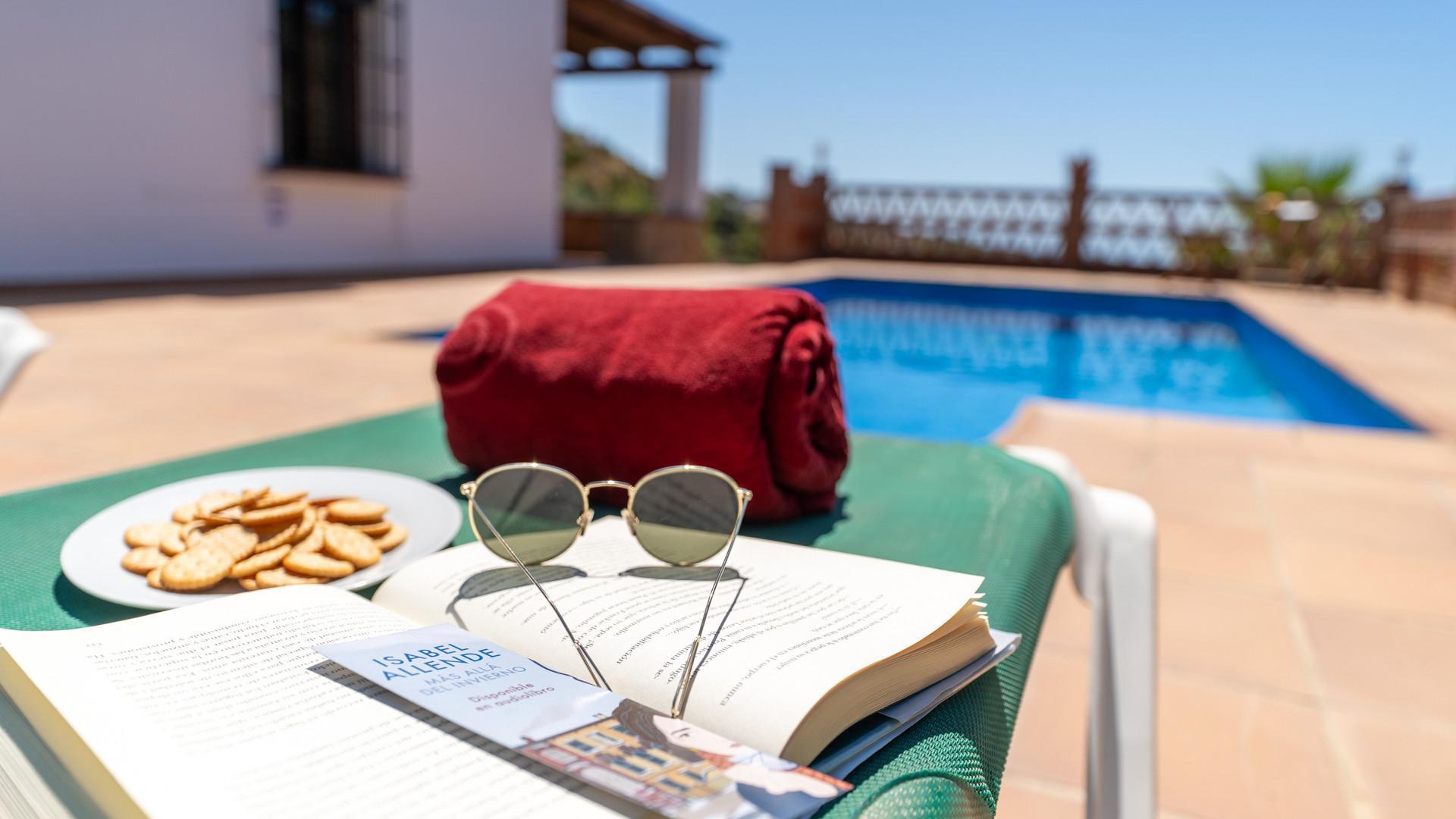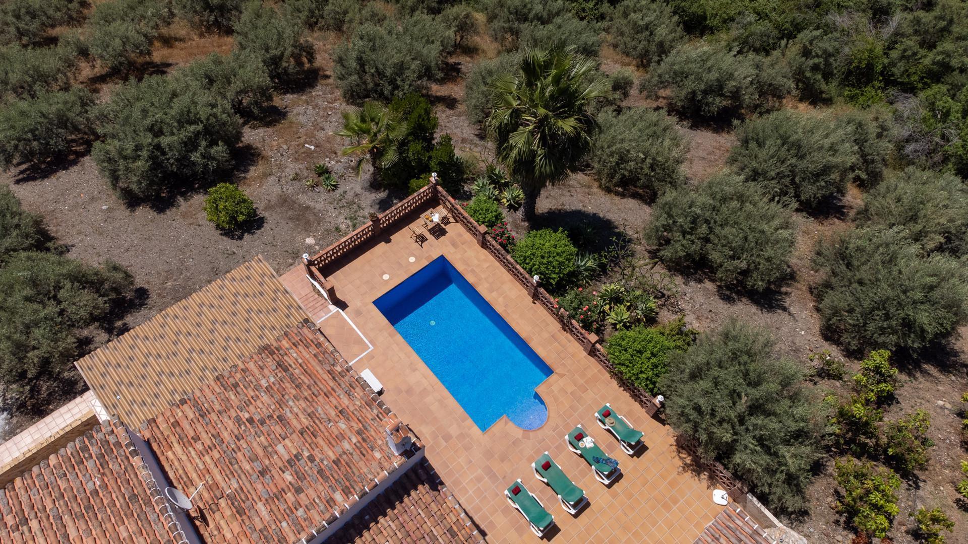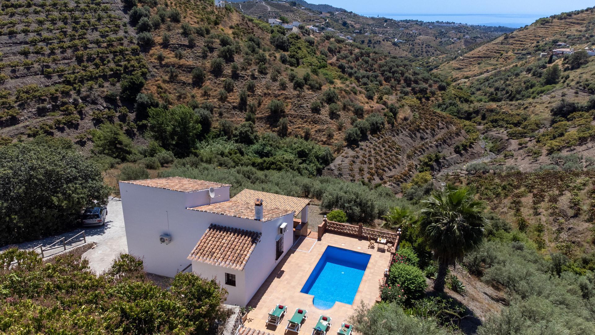 Situated in a unique, elevated position, at 5.2 kilometres from whitewashed Frigiliana, this villa offers unbeatable views. From the main road, a concreted mountain track of 2 km leads to the property, giving it a private and exclusive feel. The last 400m are unsurfaced but can be driven with a normal car without problems. For those who wish to take a dip in the ocean or try the excellent paellas at the Burriana playa, the beaches of Nerja (12 km) are just 20 minutes' drive. The house has a spacious and shaded front terrace with patio furniture and an inviting sun terrace with private pool of 7.0 m x 3.5 m long and 1.9 m – 1.5 m deep. Sun beds are provided. Adjacent to the sun terrace you will find a splendid built in barbecue area. The surrounding countryside offers excellent possibilities for a nice walks along the avocado, mango and olive yards or mountain climbing more to the north.