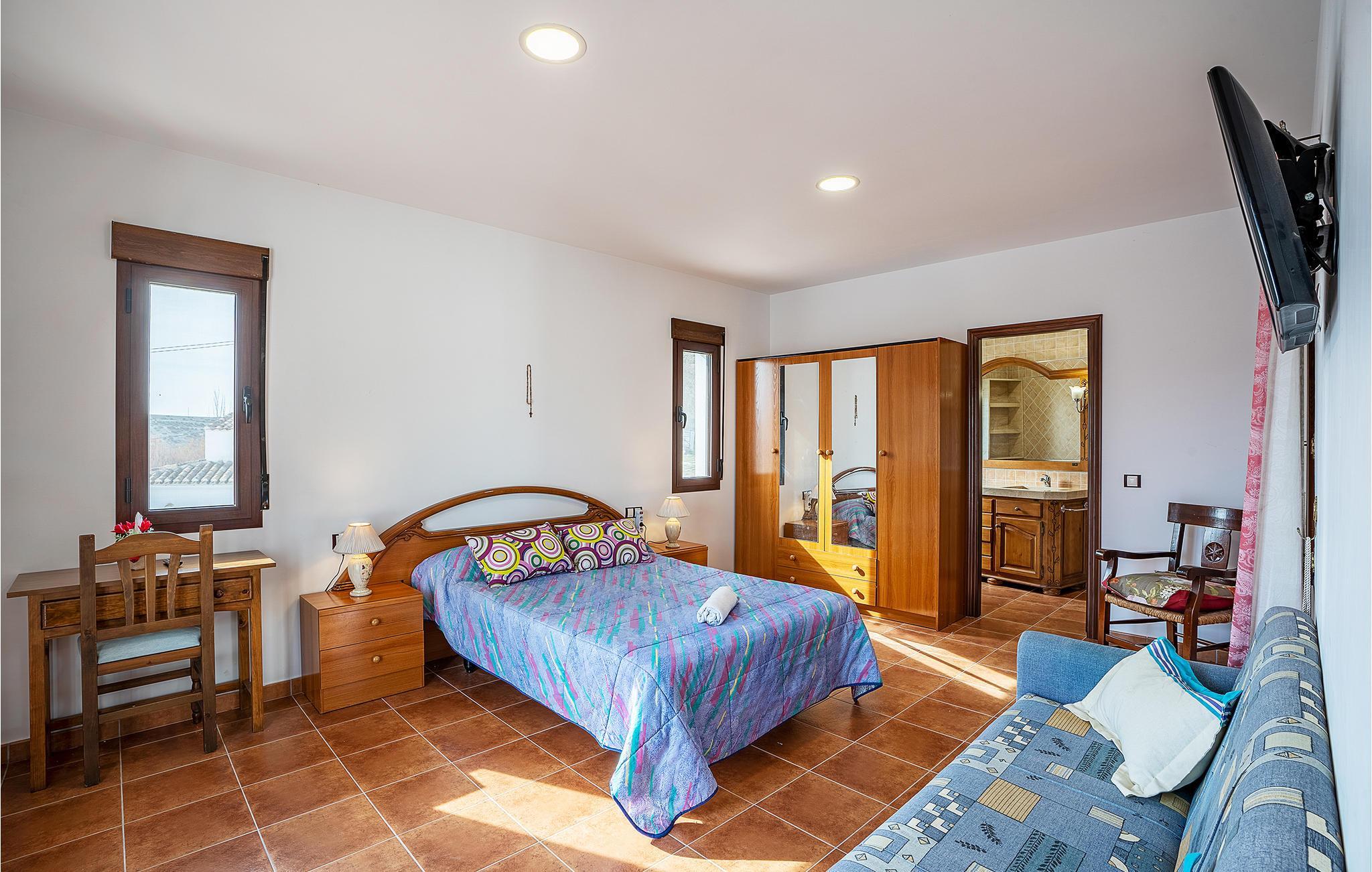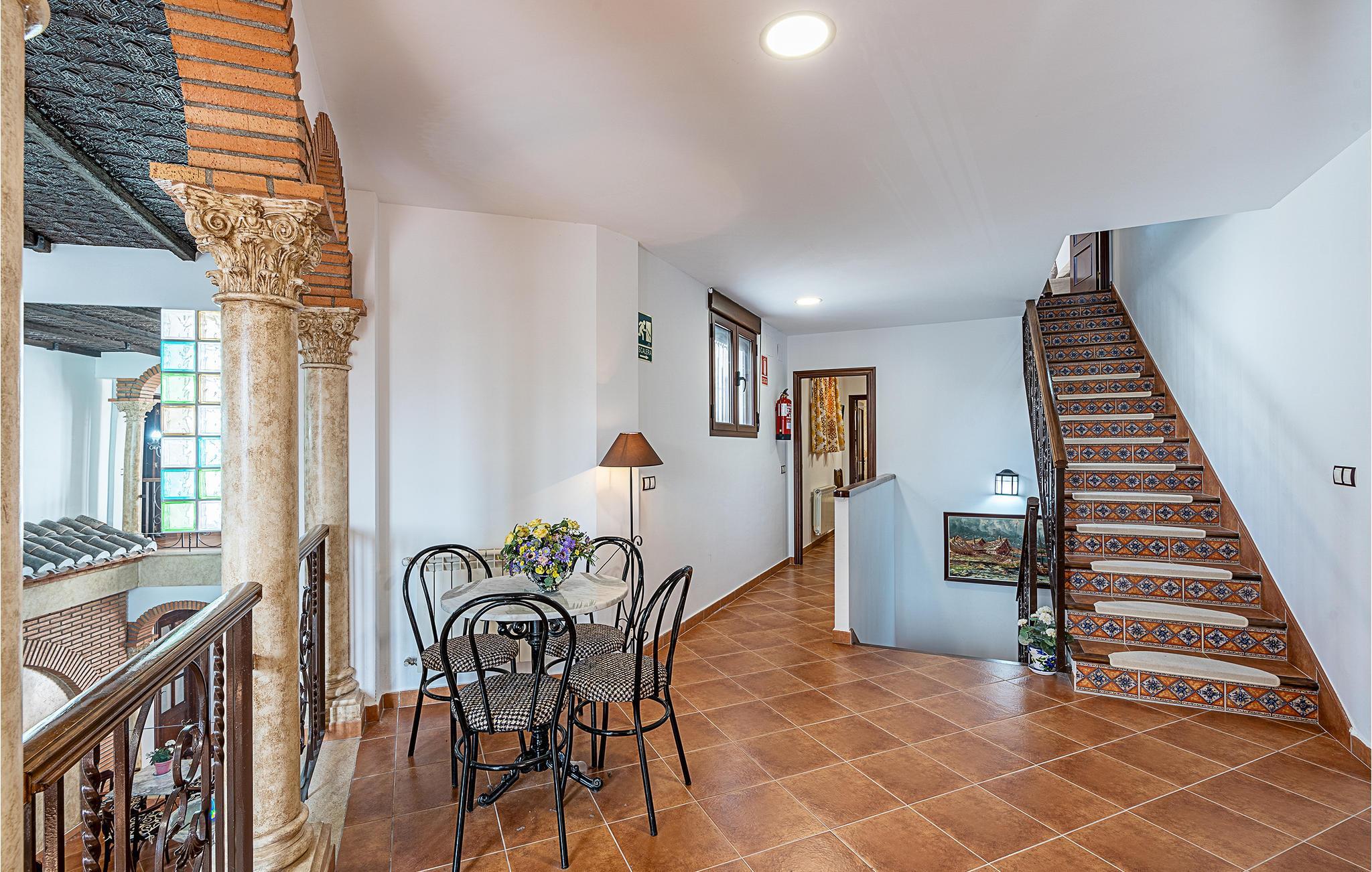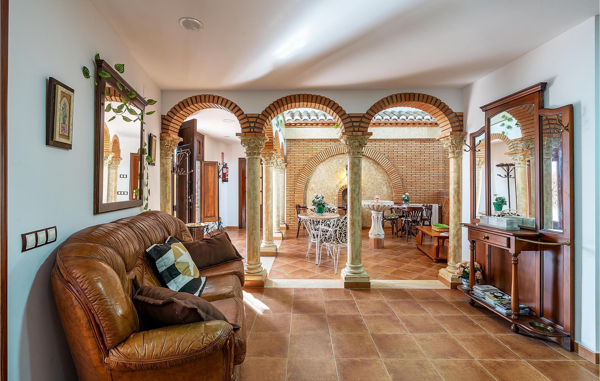 Diese Unterkunft wurde 1980 erbaut, dies kann man noch immer an den vohandenen Dekorationselementen erkennen, welche auch eine angenehme Atmosphäre erschaffen. Selbige bietet Ihnen fantastische Flure geziert von Rundbögen und Fliesenböden, 6 Schlafzimmern und 6 Badezimmern, sowie einige Sitzmöglichkeiten und gemütliche Sofagarnituren mit Fernseher und Tageslicht. Im Haus ist das Rauchen verboten, somit bleibt der natürliche Geruch des Gesteins erhalten und die antiquarischen Möbel bilden ein wunderbares Gesamtkonzept. Ebenso können Sie sich auf eine der Terrassen in der Sonne baden oder gemeinsame Mahlzeiten frisch vom gemauerten Grill genießen.
