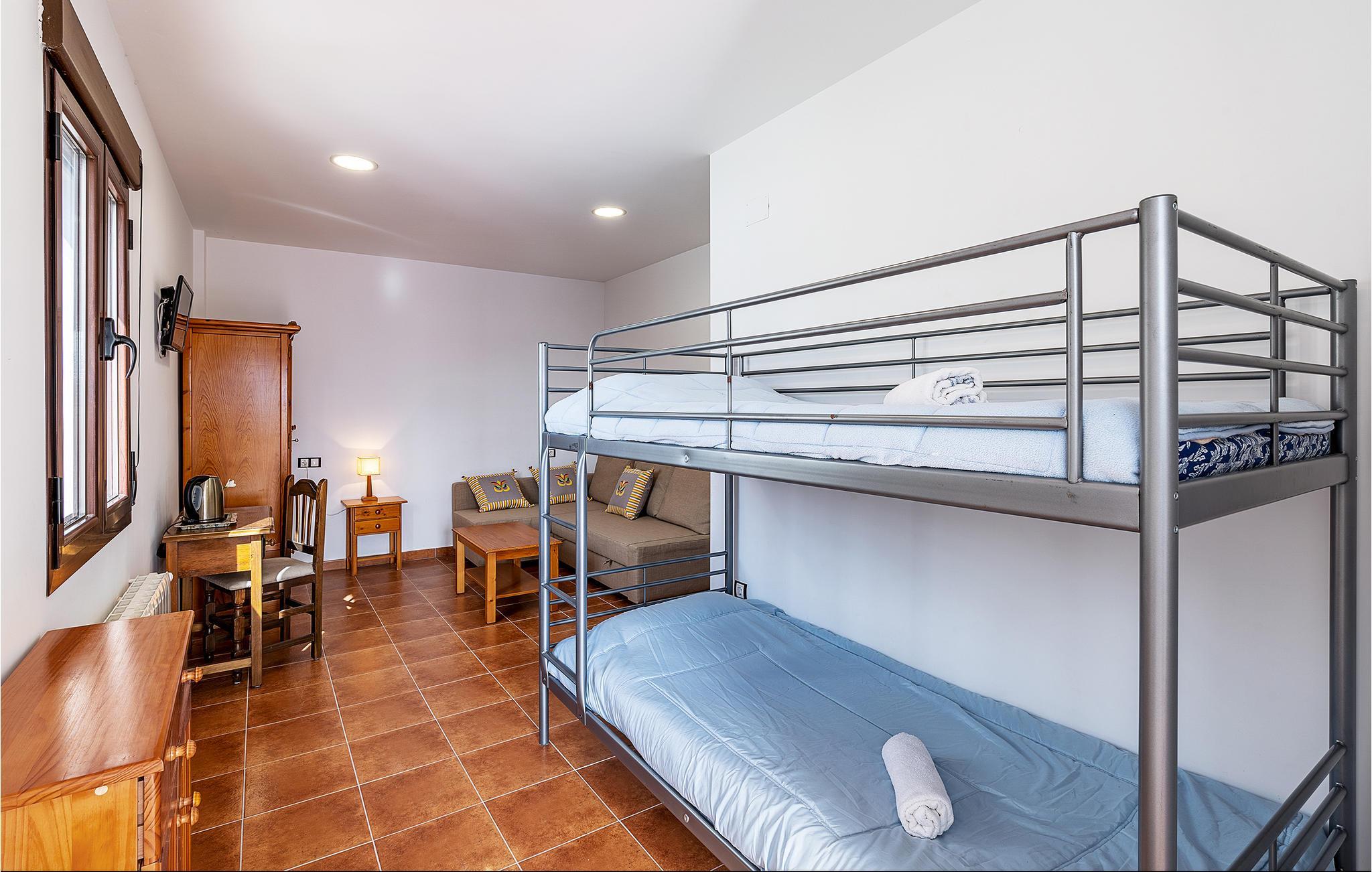 Schlafzimmer 15m2 (nr. 3) - 2 Schlafmöglichkeiten. (Einzelbett(en)). 1 Schlafmöglichkeit. (Etagenbett). 2 Schlafmöglichkeiten. (Schlafsofa,Matratze,Sonstiges).