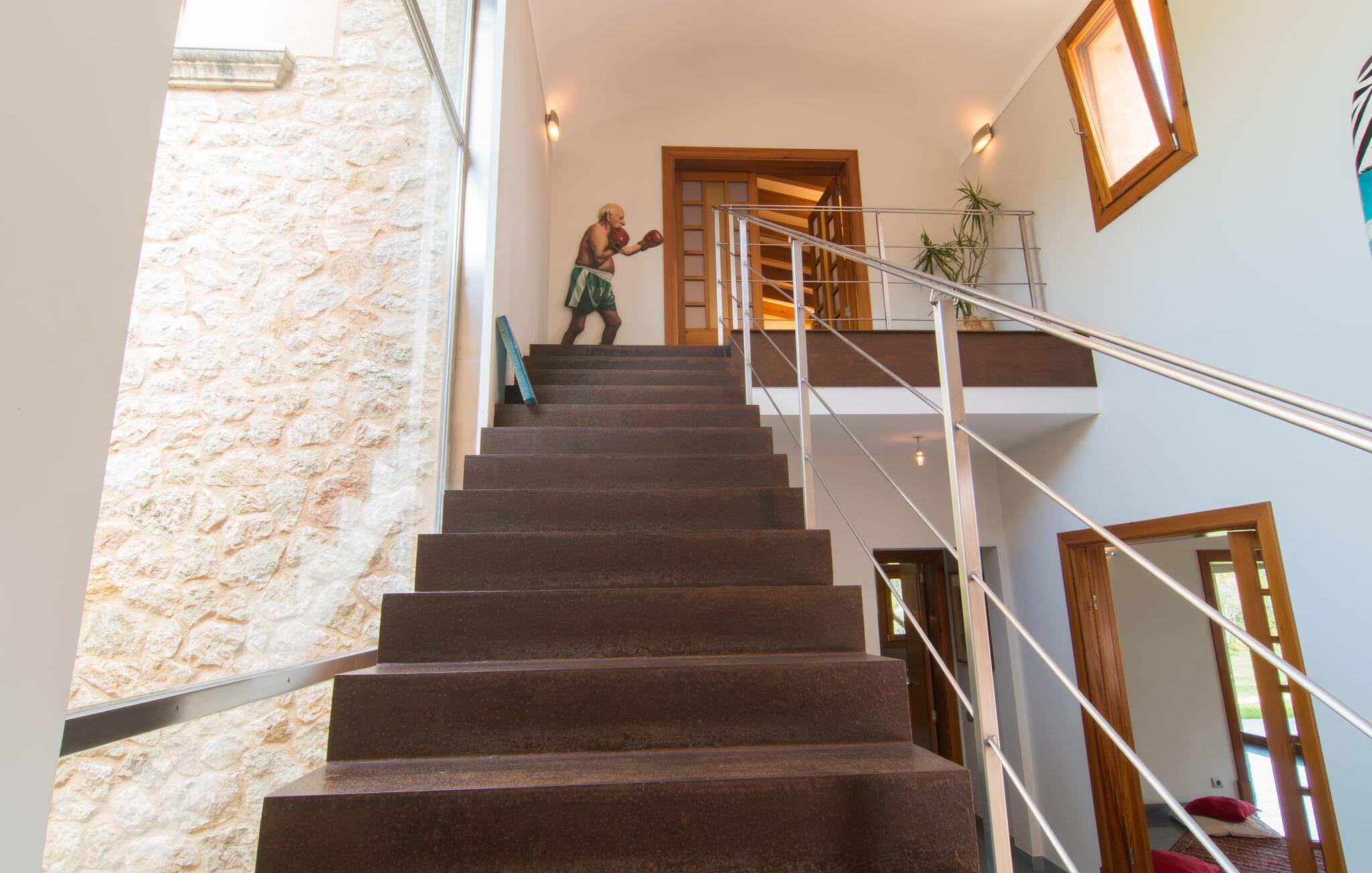 Apropos Spannung: Auch im Inneren der Villa gibt es einiges zu entdecken. Da hat jemand wirklich sein Gespür für Design und Flair bewiesen. Das gesamte Gebäude ist dank der riesigen Fensterfronten lichtdurchflutet und vom Wohnzimmer über den Essbereich bis zur Küche stilvoll eingerichtet. Eine dezente Farbpalette und schicke Designermöbel verleihen dem Interieur des Hauses einen ganz eigenen Charakter. Und die Ausstattung passt mehr als zum Design: eine hochwertige Küche, in der Träume wahr werden können, mit einer zentralen Insel und einer ganzen Reihe elektrischer Annehmlichkeiten; ein Wohnzimmer mit Flachbildfernseher und gemütlichem Kamin für ruhige Abende. Auch in den Schlafzimmern der Villa, die jeweils über ein stilvolles Bad en Suite verfügen, fehlt es in dieser Hinsicht nicht. Der Stil ist in jedem Raum spürbar. Darüber hinaus gibt es für Kunstliebhaber ein besonderes Highlight: Neben der Sammlung von Kunstwerken an vielen Wänden der Villa gibt es auch eine nette kleine Kunstecke mit einer exquisiten Auswahl an verschiedenen Gemälden und Stilen. Warum nicht vorher noch einen edlen Wein aus der riesigen Sammlung im selben Raum erwerben? Dann werden wissenschaftliche Diskussionen über Farben und Epochen umso freier geführt.