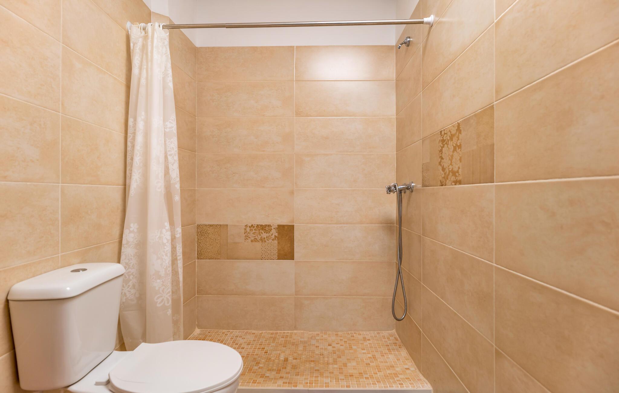 Badezimmer (nr. 1) - WC. Warmes und kaltes Wasser. Handdusche und Badewanne