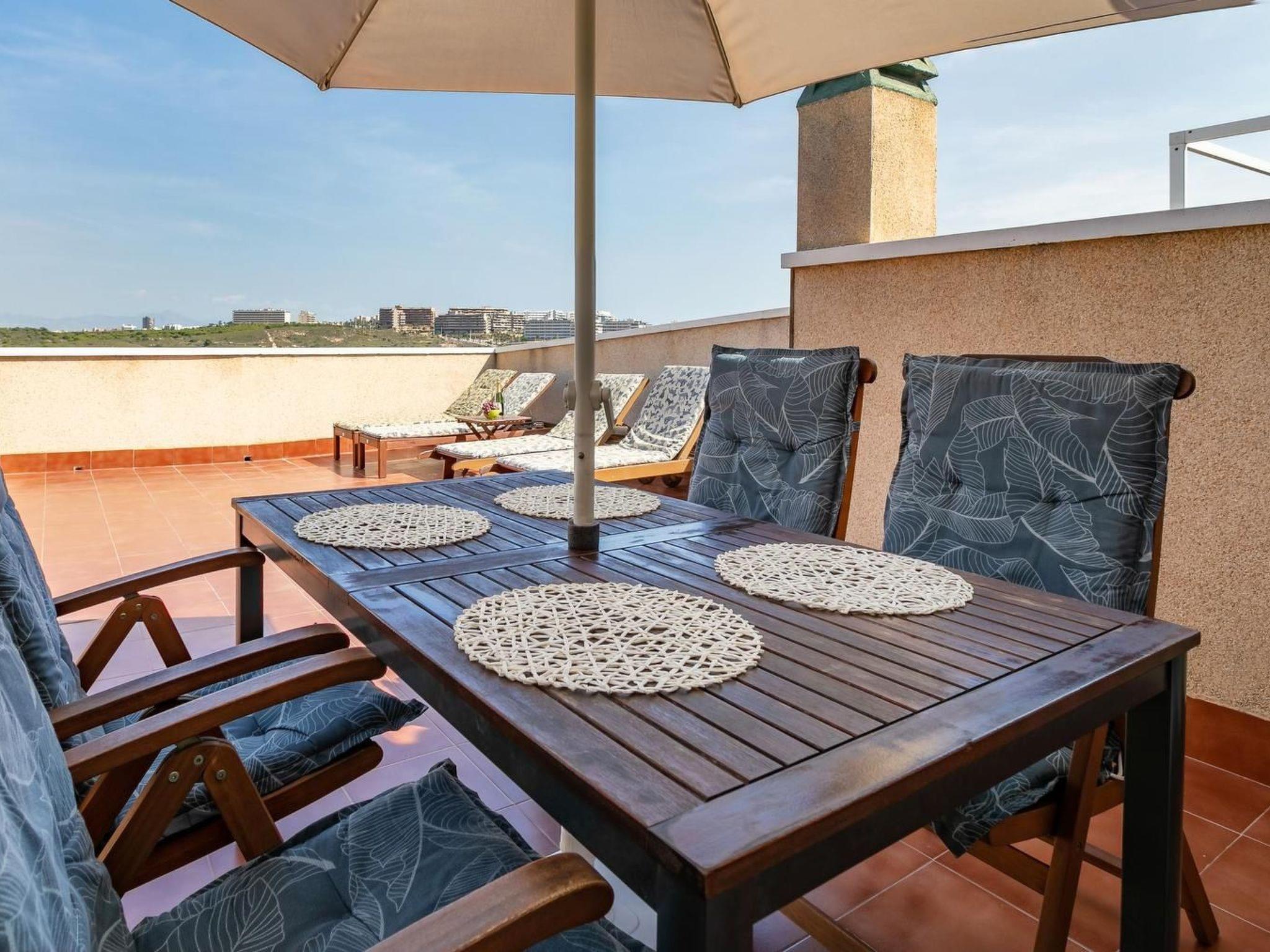 Beautiful flat close to the beach. Modern two-storey flat with 2 bedrooms, spacious terrace with sea views and garage. Located on the Costa Blanca, in the charming village of Santa Pola, 9 km from Alicante airport, on a gated estate with swimming pool, 800 metres from a beautiful sandy beach.