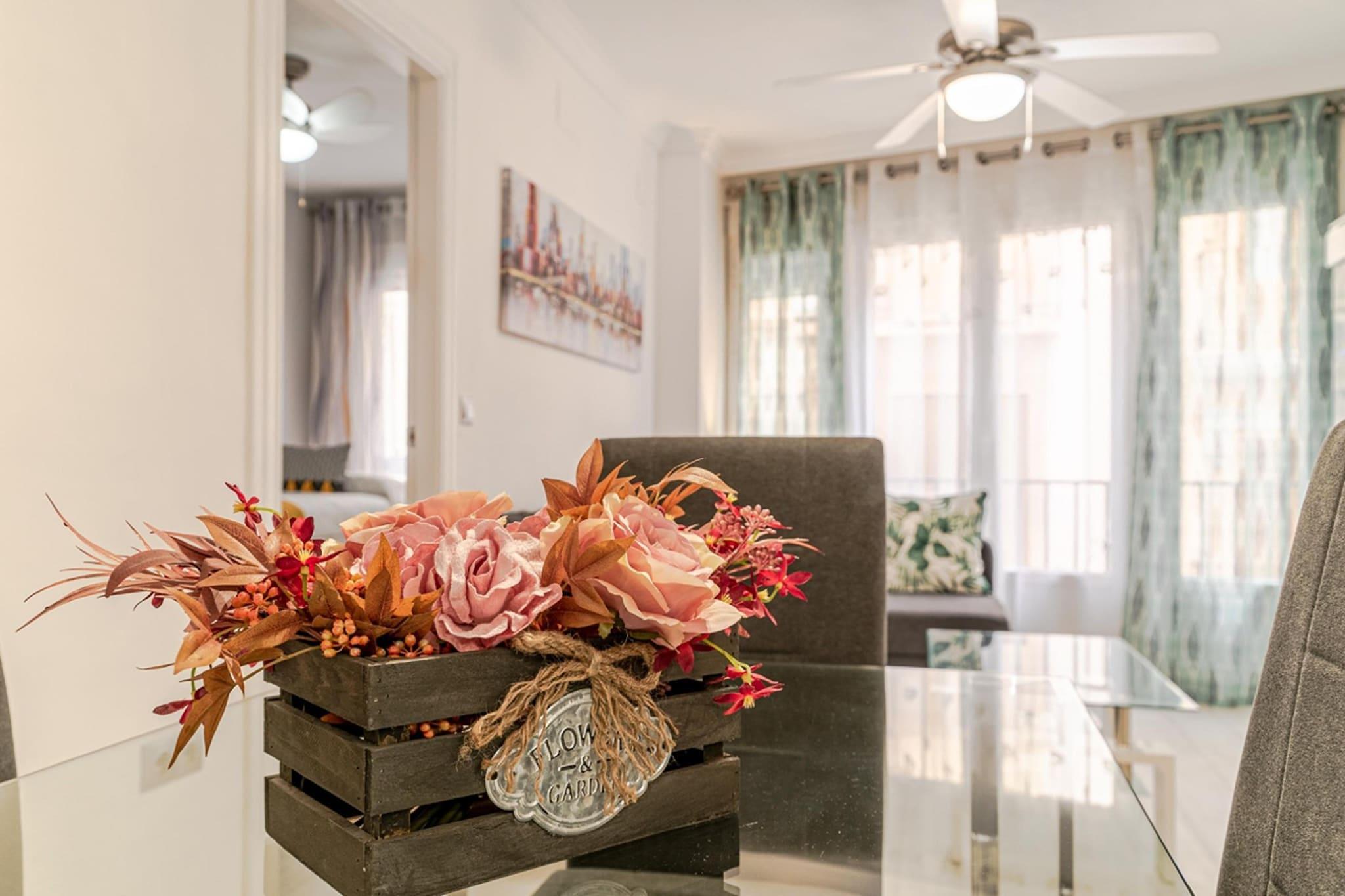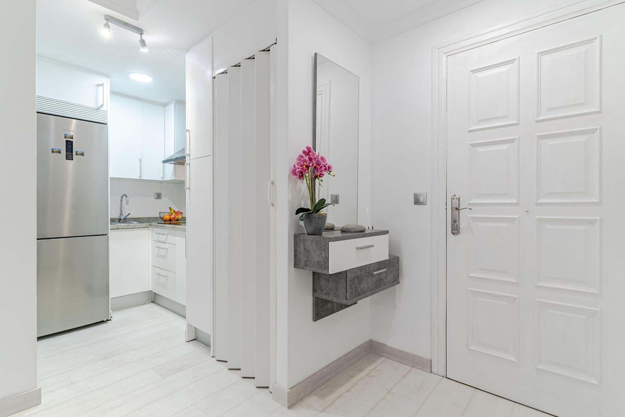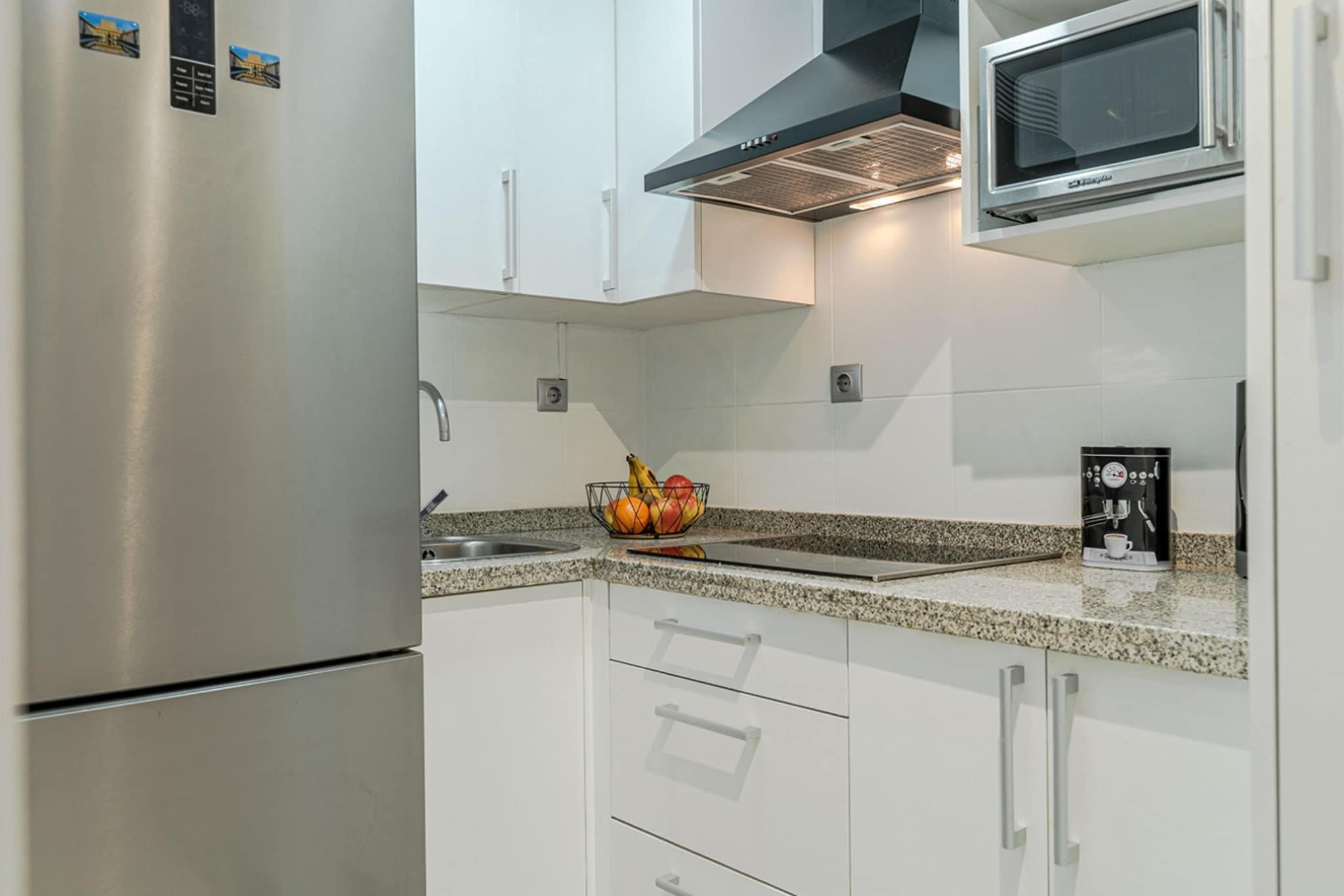 Welcome to your stylish urban oasis in the heart of Granada! Nestled between the bustling Calle Gran Vía de Colón and the vibrant Calle Elvira, this brand-new apartment offers the perfect blend of modern comfort and unbeatable location, inviting you to immerse yourself in the rich culture and history of this enchanting city. After a day of sightseeing, return to your urban retreat and unwind on the cozy sofa, or step out onto the balcony to soak in the vibrant atmosphere of the city below. Outside your doorstep, the vibrant streets of Granada beckon, inviting you to explore its myriad attractions and landmarks. From the majestic cathedral to the lively Plaza Nueva and Plaza Bib Rambla, the city's most iconic sights are just a short stroll away. Wander through the winding streets of the Albaicín district, soak in panoramic views from the Mirador de San Nicolás, and marvel at the breathtaking beauty of the Alhambra - all within easy reach from your centrally located apartment. Step inside and discover a sleek and contemporary living space, thoughtfully designed with modern decor and furnishings that create a welcoming ambiance. The open-plan layout seamlessly integrates the living room with the fully equipped kitchen, providing a perfect space for entertaining or relaxing after a day of exploration.