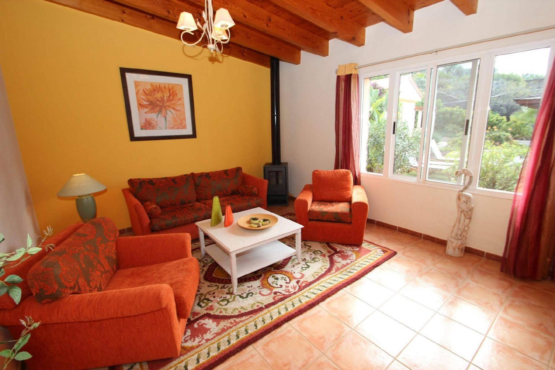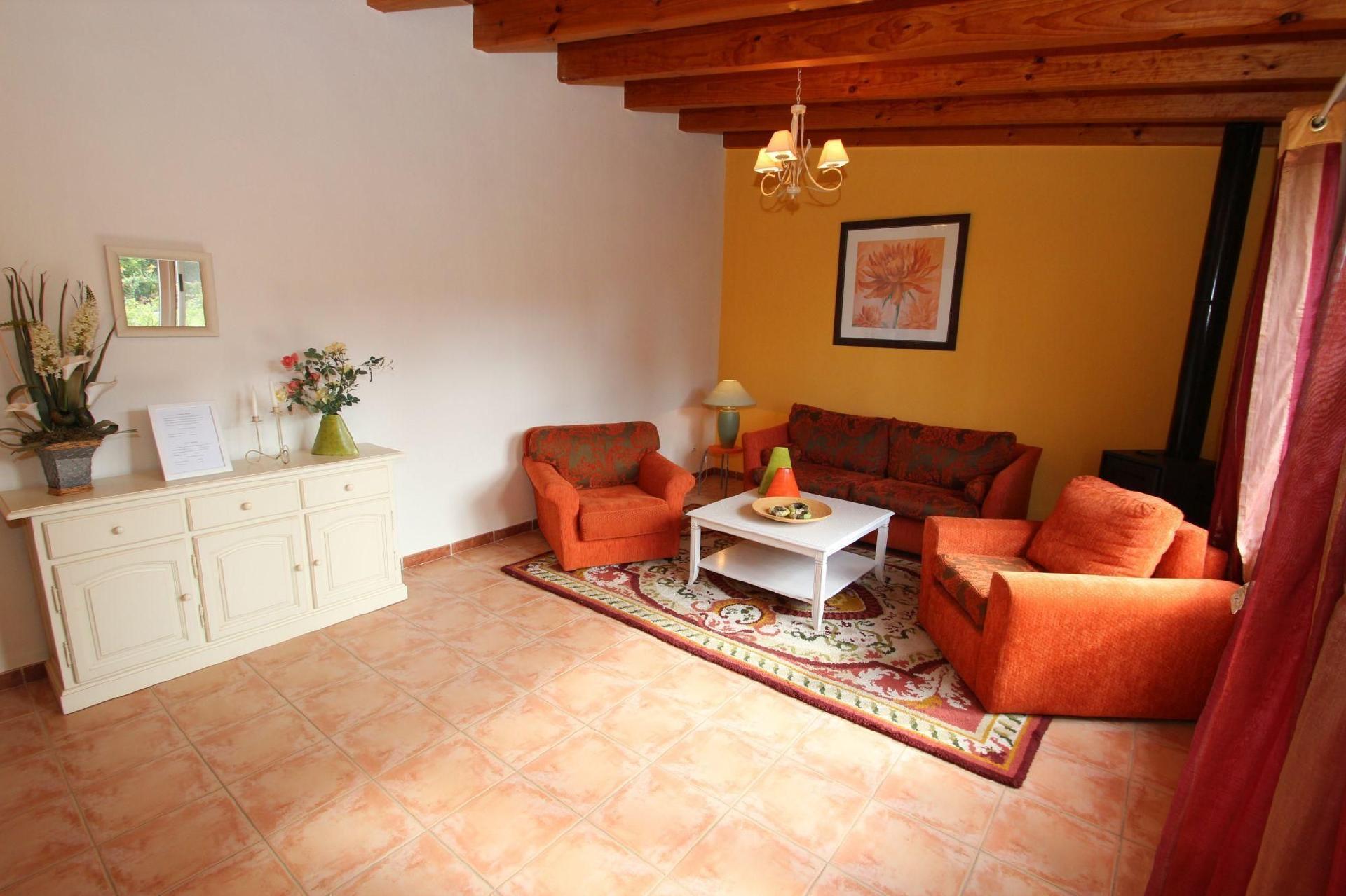 This 120 m² holiday home boasts a spacious living room with open plan kitchen and a dining table and two bedrooms each with an ensuite bathroom. The living room grants access to the veranda with comfortable seating accommodation. The tastefully furnished, cosy living room is furnished with a sectional and a fireplace. The large open plan kitchen is furnished with a dining table for six, a 4 burner gas stove, a refrigerator with a freezer, a dishwasher, a microwave/oven/grill, a toaster, a coffee maker, a kettle, a juicer, etc. The master bedroom and the second bedroom are furnished with double beds (2x 0.90 m x 2.00 m) and both have an ensuite bathroom with a shower, a bidet, a toilet, a washbasin, a mirror, a hairdryer, bathrobes and electric heating. The house has Wi-Fi, satellite television, radio and bedding and towels. In the garden in front of the house are a sun patio with sun loungers and a pavilion with a table and chairs, a sun terrace with sun loungers and an outdoor chess board which is communally used.