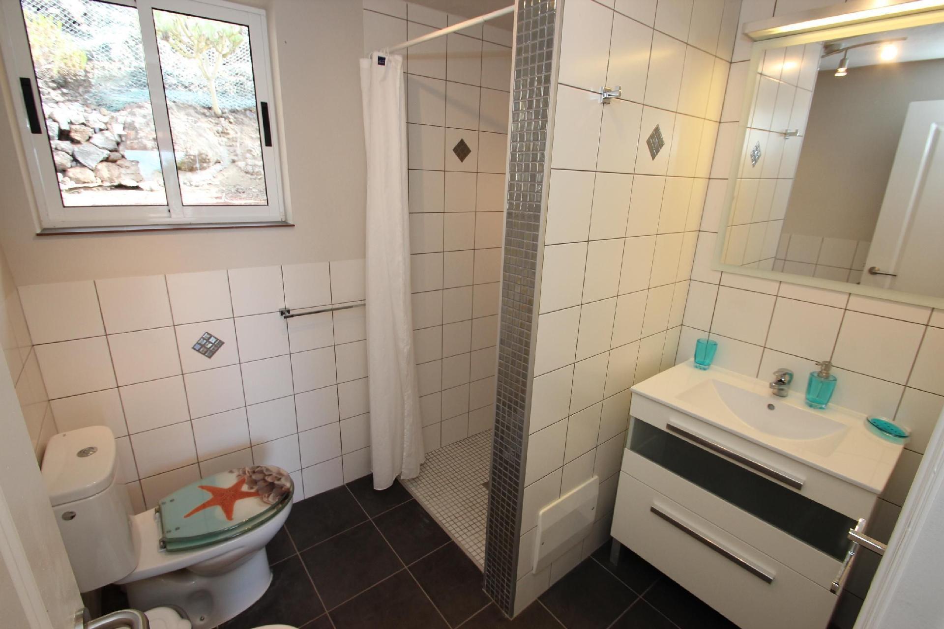 Inside, the "Kiko" house has a functional kitchenette that leaves nothing to be desired: A 4-ring ceramic hob, an oven with microwave function, a fridge and a sink complete the equipment. There is also a toaster, coffee machine, juicer and kettle - ideal for creating your own culinary delights. An adjoining dining table offers space for three people. The master bedroom with a double bed and en-suite bathroom and a second bedroom with a single bed and separate bathroom ensure privacy and comfort. Toiletries, towels, bathrobes and bed linen are also provided to make your stay as pleasant as possible.