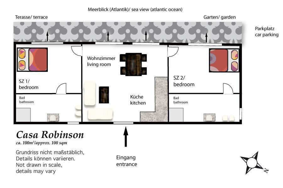The outdoor area of the accommodation is truly a jewel. A secluded terrace invites you to enjoy unforgettable sunsets, surrounded by a lovingly landscaped garden with Canarian plants, which extends over 1500 m². Here you can feel completely undisturbed and enjoy nature to the full.