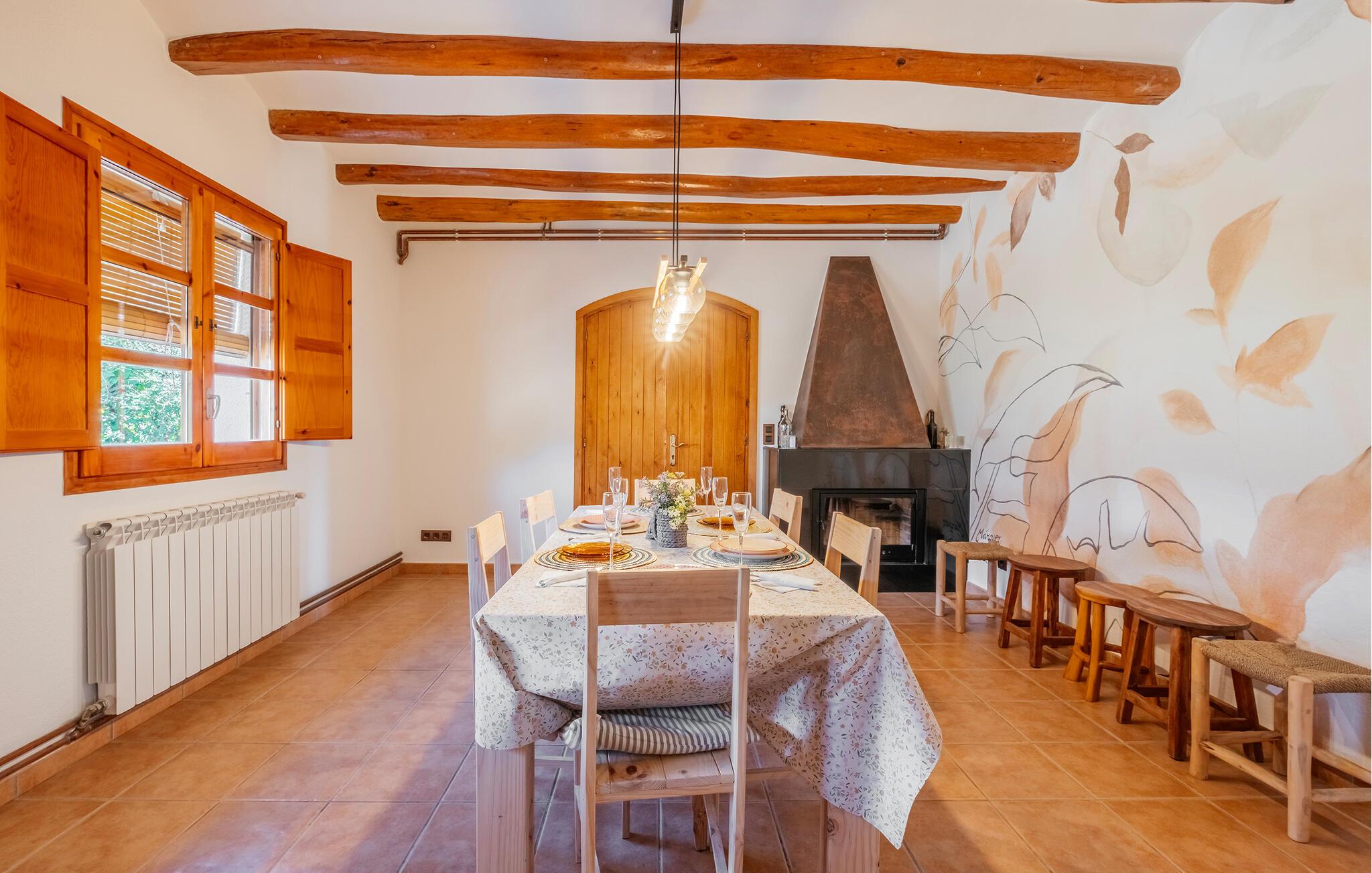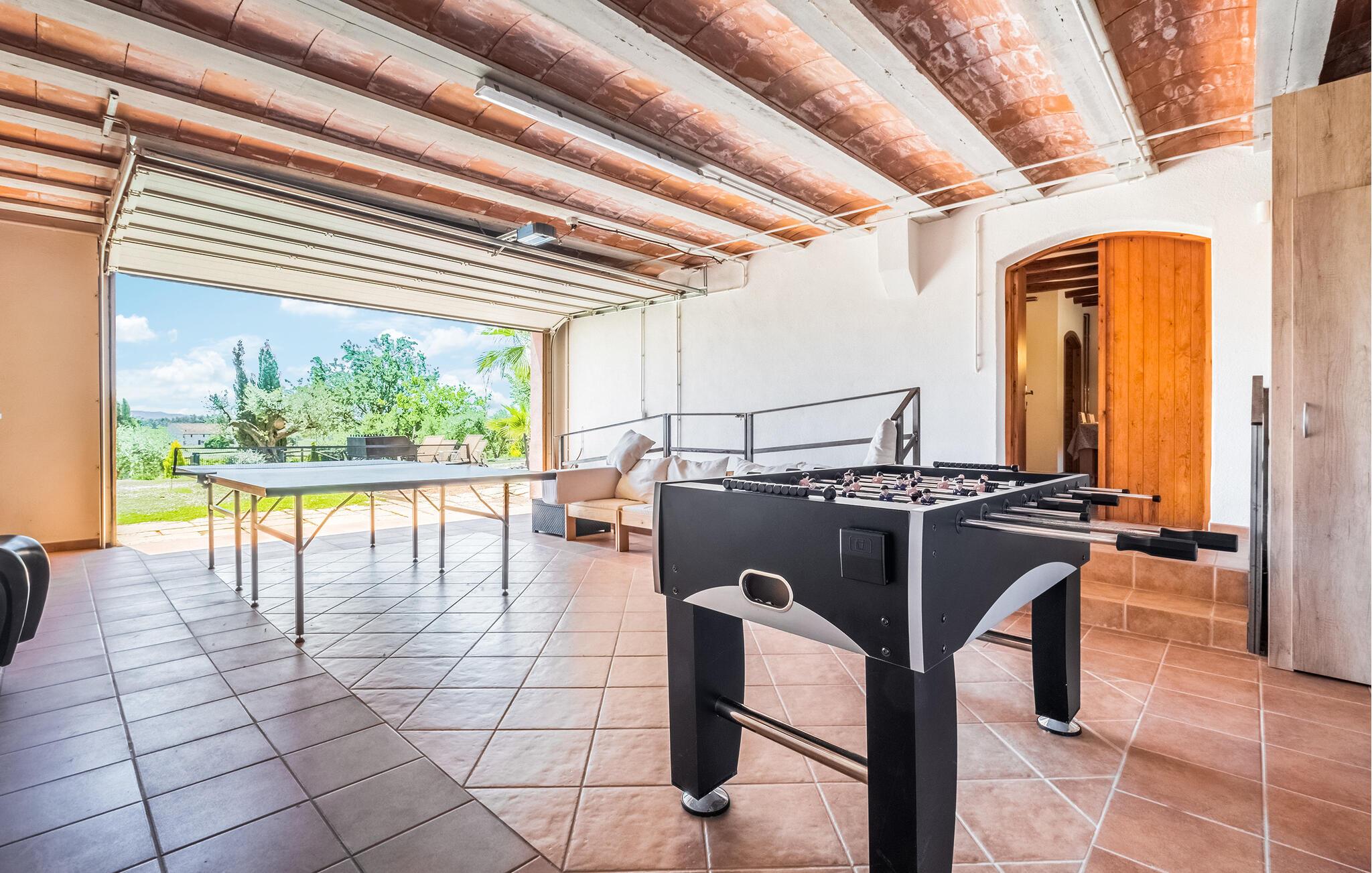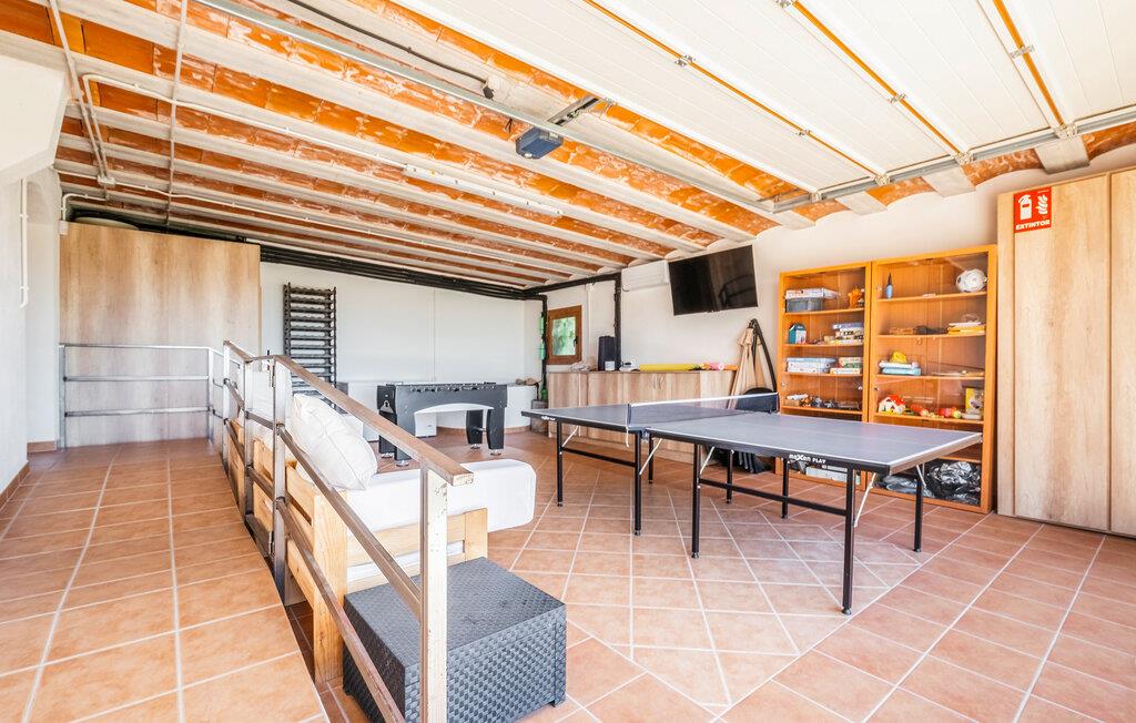 Genießen Sie einen Traumurlaub in Guardiola de Fontrubi, einem idyllischen Dorf nahe Barcelona. In Ihrem Ferienhaus können Sie den Tag entspannt am Pool beginnen oder sich beim Tischtennis und Tischfußball vergnügen. Diese geräumige Unterkunft bietet Platz für eine große Familie. Im Inneren des Hauses erwartet Sie ein gemütlicher Wohnbereich mit rustikalen Holzbalken an der Decke, der zum Verweilen einlädt. Machen Sie es sich auf den Sofas bequem und genießen Sie die gesellige Atmosphäre. Die großzügige Essküche bietet alles, was Sie für die Zubereitung leckerer Mahlzeiten benötigen.