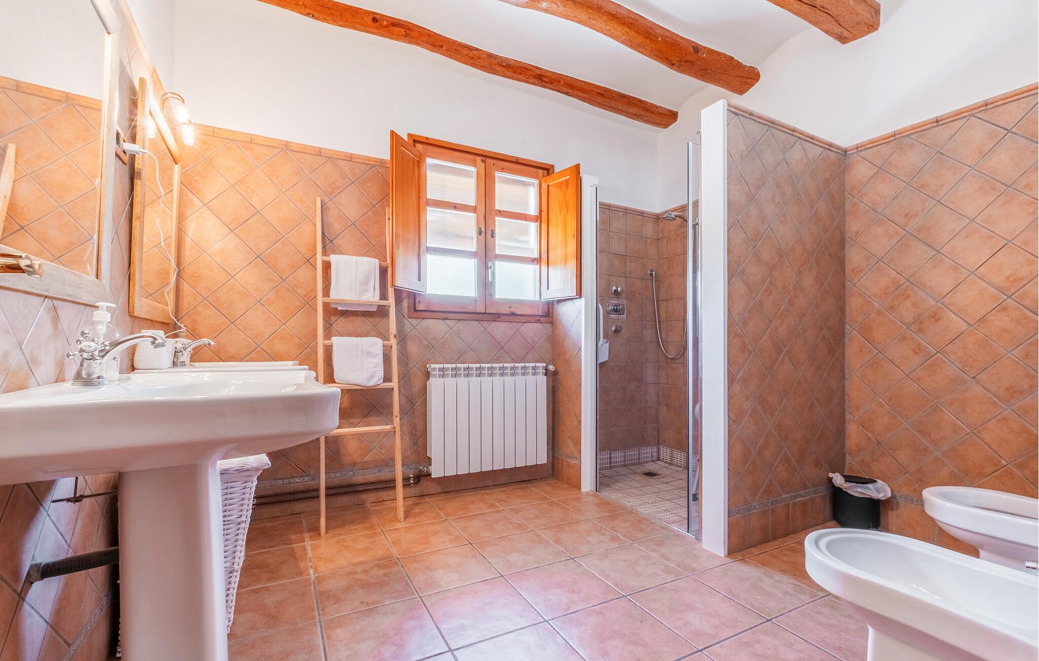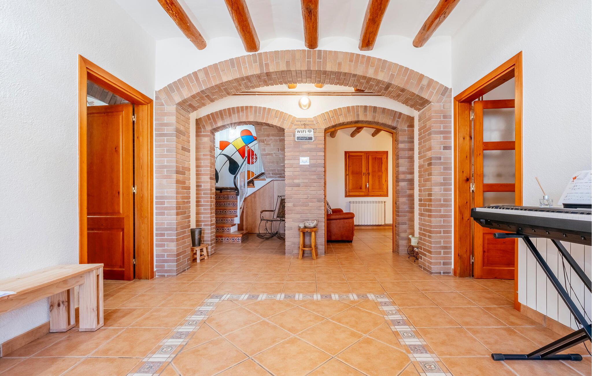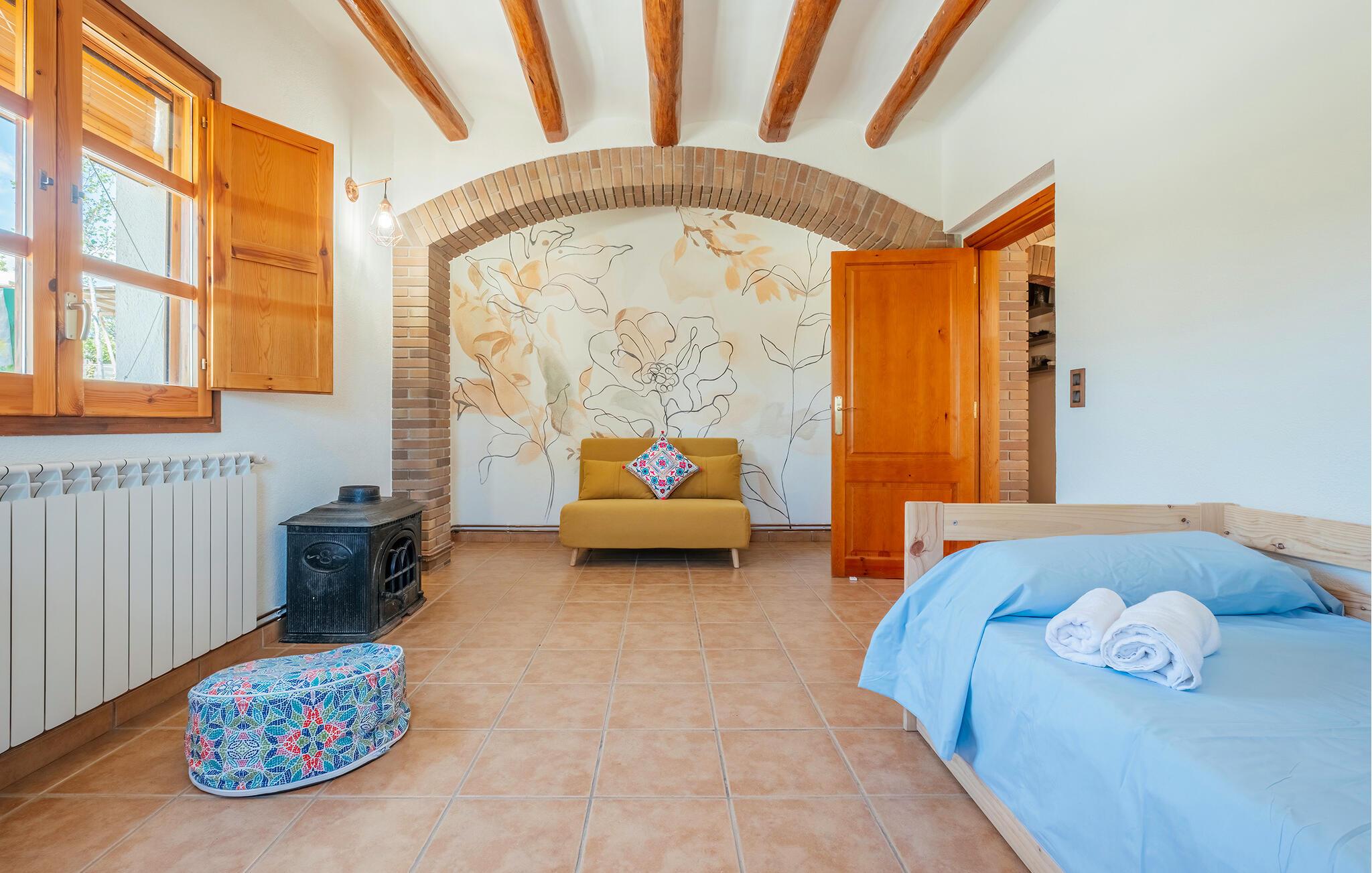 Genießen Sie einen Traumurlaub in Guardiola de Fontrubi, einem idyllischen Dorf nahe Barcelona. In Ihrem Ferienhaus können Sie den Tag entspannt am Pool beginnen oder sich beim Tischtennis und Tischfußball vergnügen. Diese geräumige Unterkunft bietet Platz für eine große Familie. Im Inneren des Hauses erwartet Sie ein gemütlicher Wohnbereich mit rustikalen Holzbalken an der Decke, der zum Verweilen einlädt. Machen Sie es sich auf den Sofas bequem und genießen Sie die gesellige Atmosphäre. Die großzügige Essküche bietet alles, was Sie für die Zubereitung leckerer Mahlzeiten benötigen.
