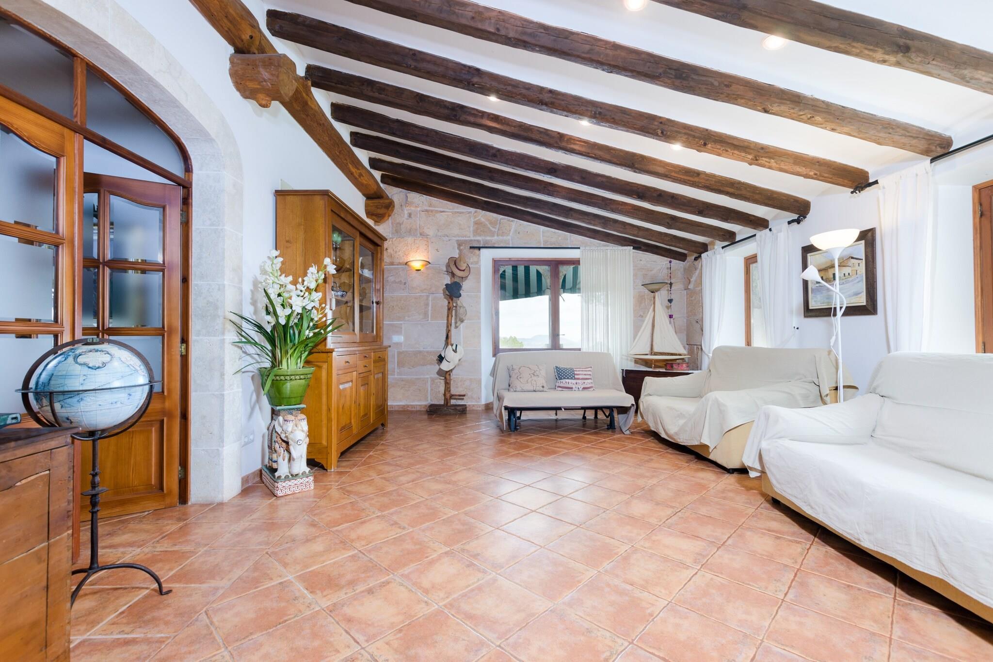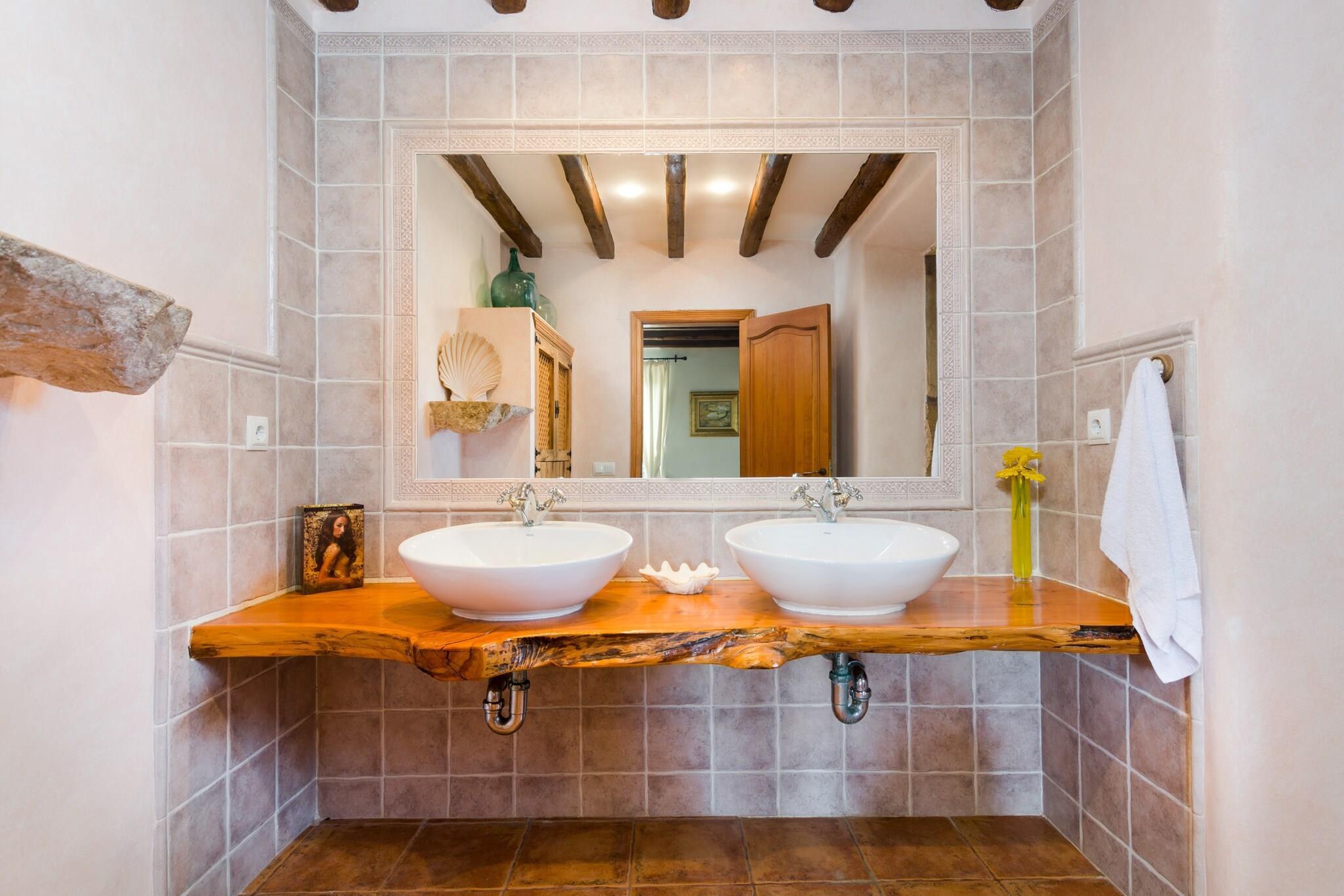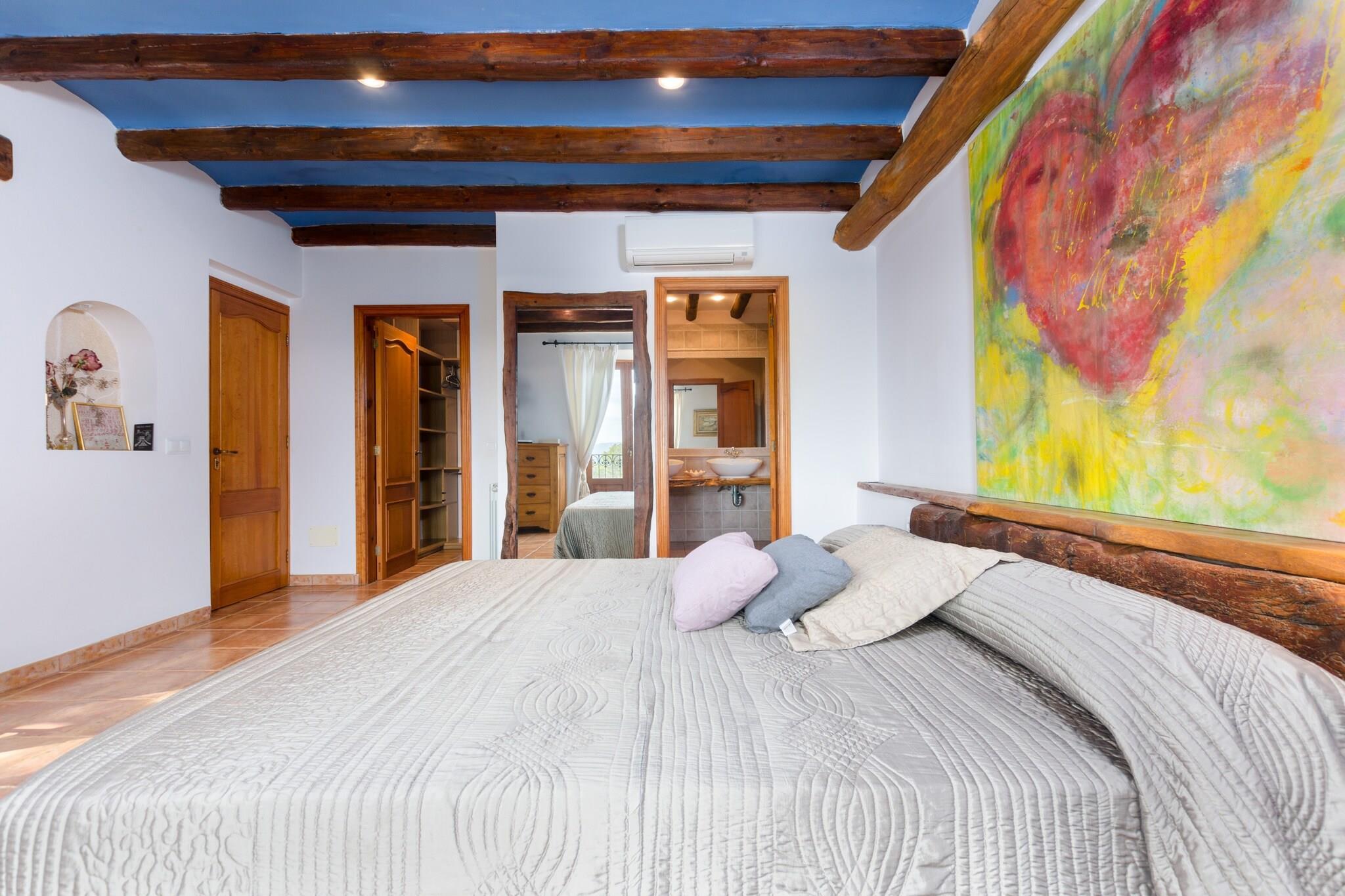 The exterior area of this house resembles paradise. It combines the rustic style with other paradisaical details that transform it into the perfect place to spend your deserved vacation. Feel privileged whilst swimming in the chlorine pool -of 8 x 4 metres and with a water depth from 0.7 to 1.8 metres-, and admiring the lovely views. Next, to the pool, you find the lawn area with two sun loungers to bask in the sun or enjoy a good reading whilst listening to nature. Then, beneath the porch, a barbecue will be the best meal either at noon or in the evening. The property is fenced and the privacy is total. When you enter, the majestic hall leads to the staircase to reach the rooms and spaces of the house. The first floor offers a spacious living-dining room, with satellite TV and DVD player where you can rest or enjoy your meals all together. You will cook your best recipes in the kitchen which is equipped with a gas cooktop, oven, a dining area where you also can have your meals and exit to the porch and pool area. This floor is completed with a toilet and a bedroom with an en-suite bathroom that has an independent shower and tub. Upstairs, on the second floor, you find another shower bathroom and two more bedrooms, one of them with a beautiful balcony boasting stunning views to the mountain range. There are 2 bedrooms with a double bed and 1 with 2 single beds, all with AC. A baby cot and high chair can be provided. There are several rooms with a TV-set although the only one with satellite channels is at the living. The laundry room is independent and it features a washing machine, iron and ironing board. The property is about 2 km from Inca, a small city perfect for those who want a central spot on the island in order to arrive to any point in a reasonable amount of time. The city offers all the needed services for an independent stay like supermarkets, bars, traditional restaurants, shops and more. In addition, there is a street market that takes place every Thursday. Here, you can buy artisan products as well as local fruits and vegetables so you cannot miss it. We also recommend you visit Palma or the Tramuntana mountain range. The nearest beach is Puerto de Alcudia, about 25 km away, boasting crystal-clear water and white fine sand. Consult the advertiser for possible charges. Pets are not allowed. The holding of events is forbidden. There is exterior parking for 2 cars. Distances Beach: 25.3 km - Puerto de Alcúdia Airport: 42.4 km - Son Sant Joan Golf course: 31 km - Golf Alcanada Town: 2 km - Inca Train station: 5 km - Inca Bus stop: 3.5 km - Inca Ferry: 30 km - Puerto de Alcúdia Hospital: 4 km - Hospital Comarcal d'Inca Tourist license: ETV/4113Single Rental Registry: ESFCTU00000701100005167400000000000000000000ETV/41137There's a mandatory tourist tax in Balearic Islands, called Ecotasa. All guests, except people under 16 years, have to pay this tax. The amount varies between 0.55EURO/night and guest during the low season and 2.2EURO/night and guest during the high season .The tax is reduced by half from the 9th day for your stay.