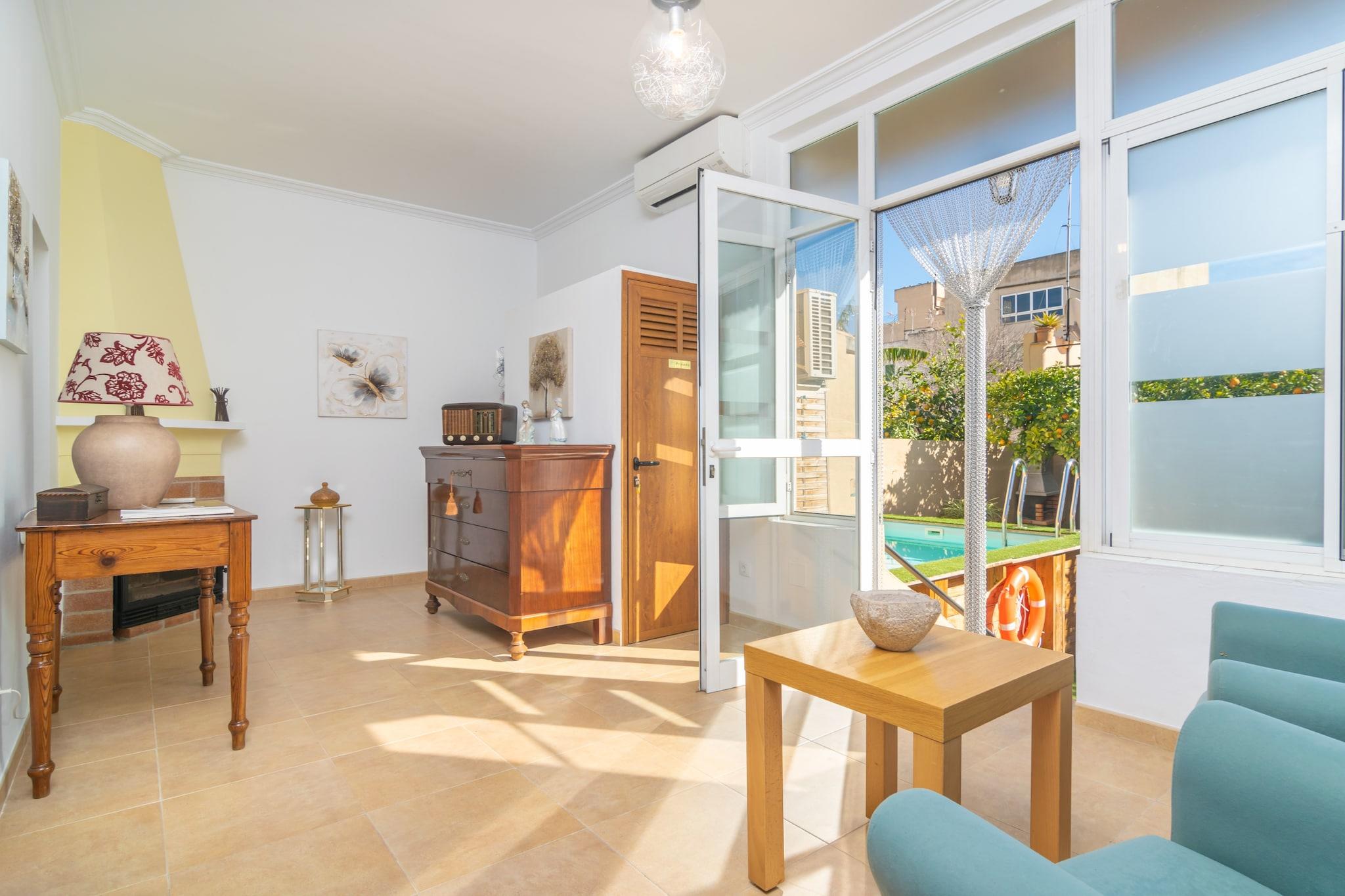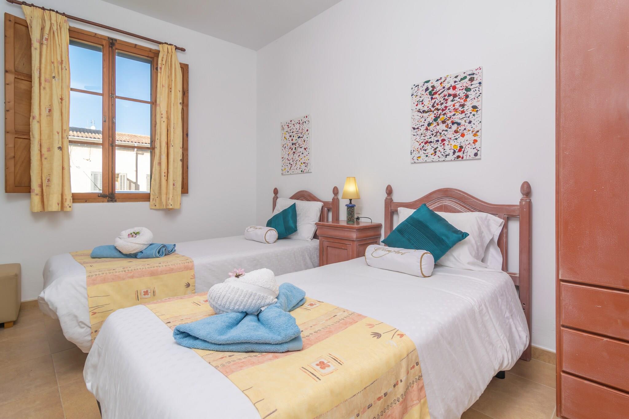 The charming patio of the house is a perfect oasis of peace to relax after an entertaining excursion around the island. You can cool off in the above ground pool chlorine pool that measures 3.5 x 2 meters and has a depth of 1.60 meters. Afterwards you can sunbathe on the sun loungers. At the end of the patio you will find the barbecue and the porch under which you can sit and enjoy your meals alfresco. A toilet completes the outdoor area.. The house is on one level with a simple and cozy style. Upon entering from the patio you find a luminous room where you can sit and enjoy a good book. It is has air conditioning and communicates with the living - dining room that has TV-sat. The separate kitchen offers a ceramic hob and its window overlooks the living room with access to the patio. Two beautiful bedrooms invite you to rest at night, one with a double bed an portable AC and the second with twin beds and a fan. There is also a bathroom with a shower. A cot, a high chair, washing machine, iron and ironing board complete the equipment. Inca is the perfect starting point to get to know the island. Our guests will have all the necessary services a few meters away on foot, such as supermarkets, bars, restaurants and all kinds of shops. The closest beach is 25.7 km away in Puerto de Alcúdia. Other places that we recommend are the monastery of Lluc, the Tramuntana mountain range, ses Fonts Ufanes in Campanet or the Puig de Santa Magdalena in Inca. The fireplace is decorative. Consult the advertiser for possible charges. Pets are not allowed. The holding of events is forbidden. Distances Beach: 25.7 km - Port d'Alcúdia Airport: 35.8 km - Palma de Mallorca Golf course: 21.7 km - Pollença Golf Club Town: 0.450 km - Inca Train station: 0.650 km - Inca Bus stop: 0.076 km - Inca Ferry: 28 km - Port d'Alcúdia Hospital: 1 km - Inca Tourist license: ETV/10466Single Rental Registry: ESFCTU0000070110003305640000000000000000000ETV/104663There's a mandatory tourist tax in Balearic Islands, called Ecotasa. All guests, except people under 16 years, have to pay this tax. The amount varies between 0.55EURO/night and guest during the low season and 2.2EURO/night and guest during the high season .The tax is reduced by half from the 9th day for your stay. Homerti - Central de Reservas CR/33