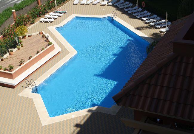 The accommodation is equipped with the following items: lift, garden, garden furniture, fenced garden, 12 m² terrace, iron, internet (Wi-Fi), hair dryer, balcony, air conditioning (hot/cold), air conditioning throughout the house, communal swimming pool, open-air parking in the same building, 1 TV.
