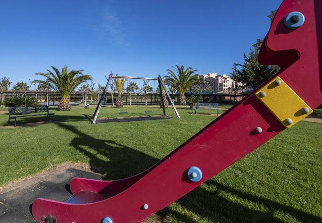 The accommodation is equipped with the following items: lift, garden, garden furniture, fenced garden, terrace, iron, internet (Wi-Fi), hair dryer, childrens area, tennis court, paddle tennis court, air conditioning (hot/cold), air conditioning throughout the house, communal+children's swimming pool, covered parking in the same building, 1 TV.