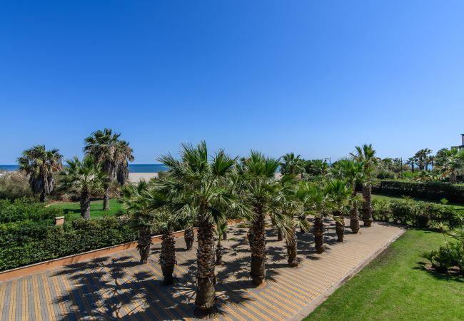 The accommodation is equipped with the following items: lift, garden, fenced garden, 14 m² terrace, iron, internet (Wi-Fi), hair dryer, childrens area, paddle tennis court, air conditioning (hot/cold), air conditioning in some bedrooms, communal+children's swimming pool, covered parking in the same building, 2 fans, 1 TV.